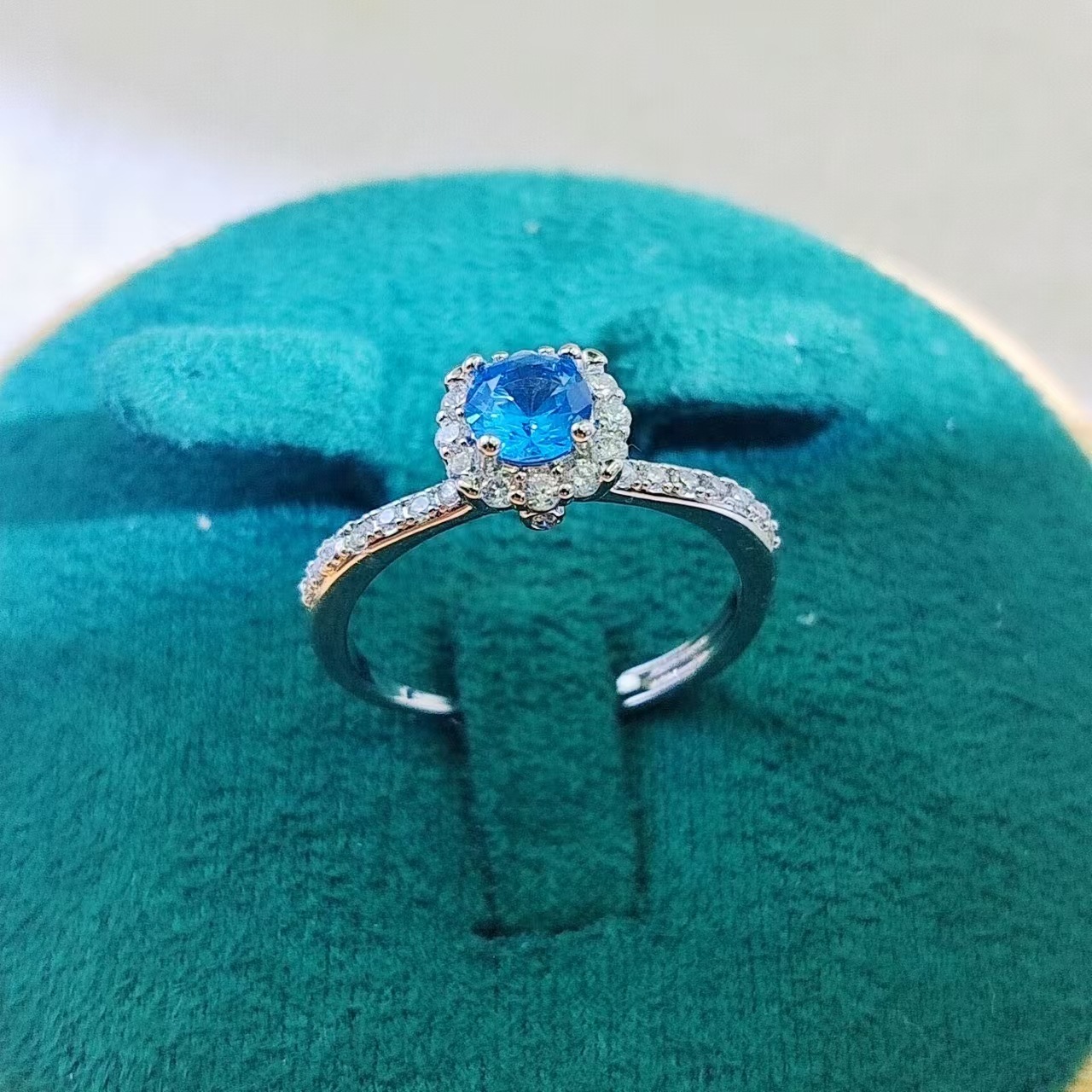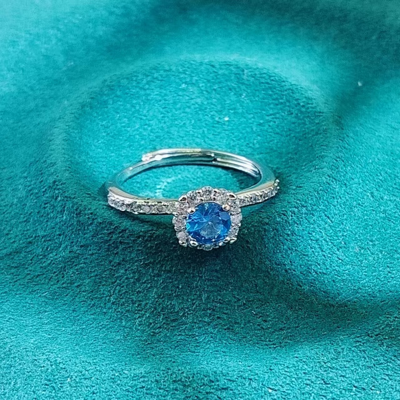 Picture: Blue pointed crystal red lying jade princess square bag fashionable open ring