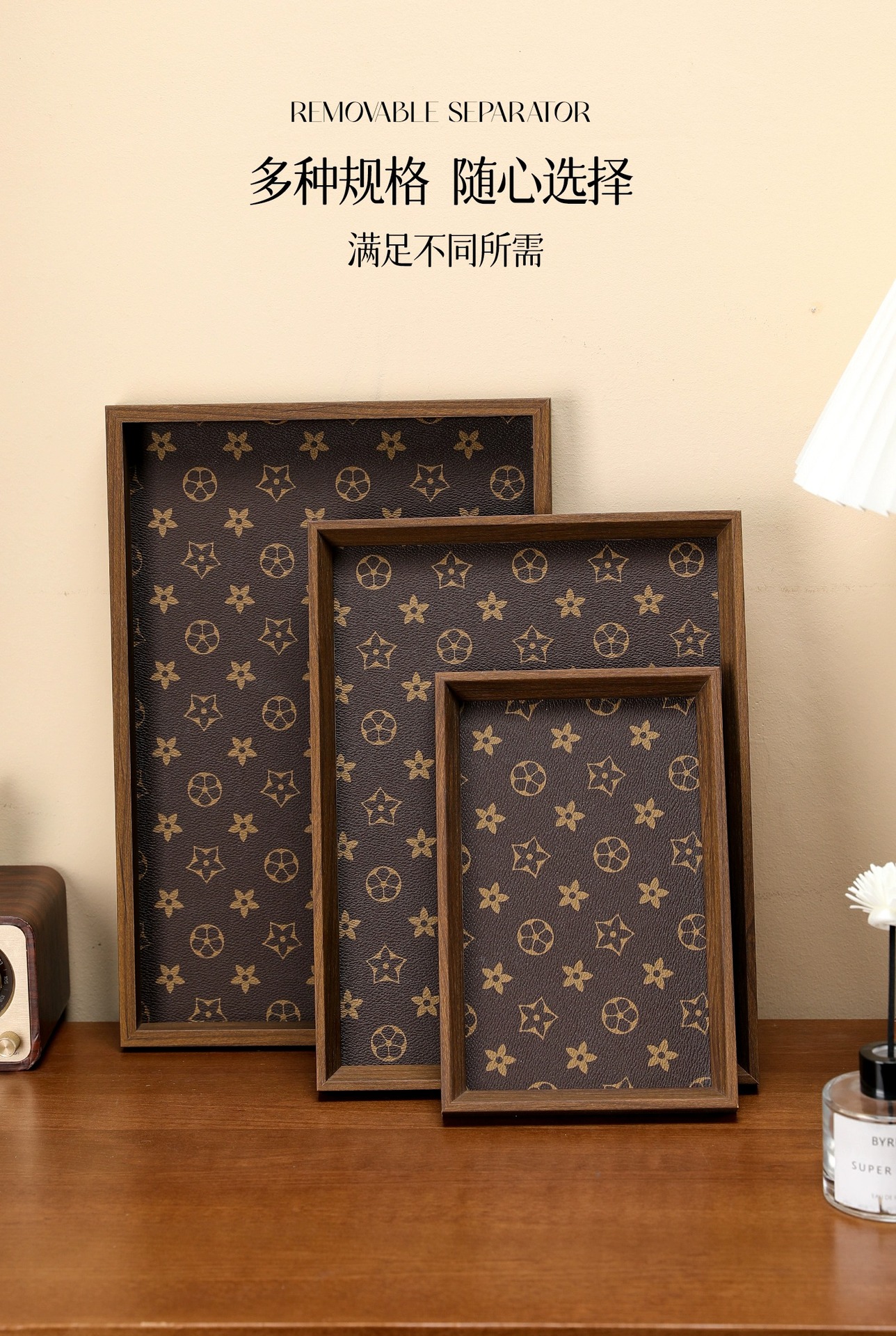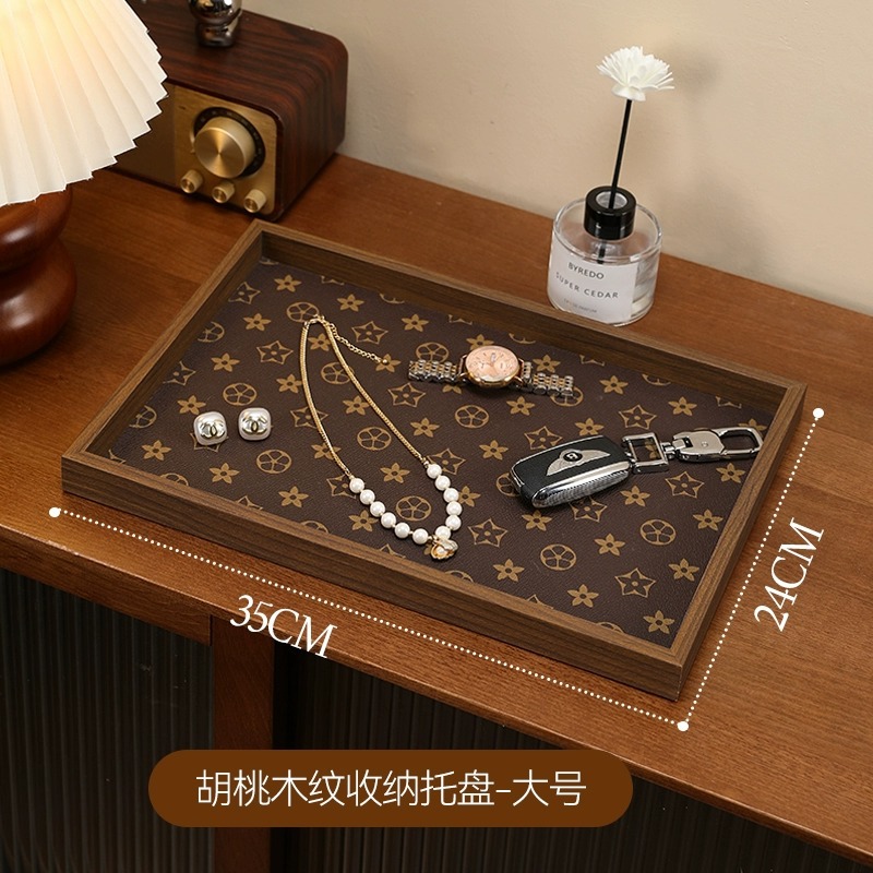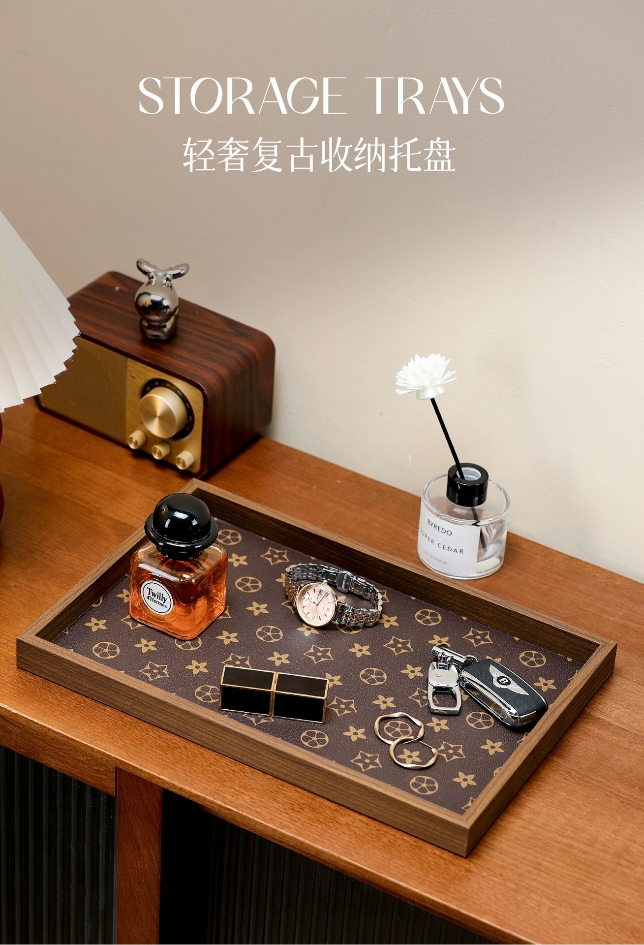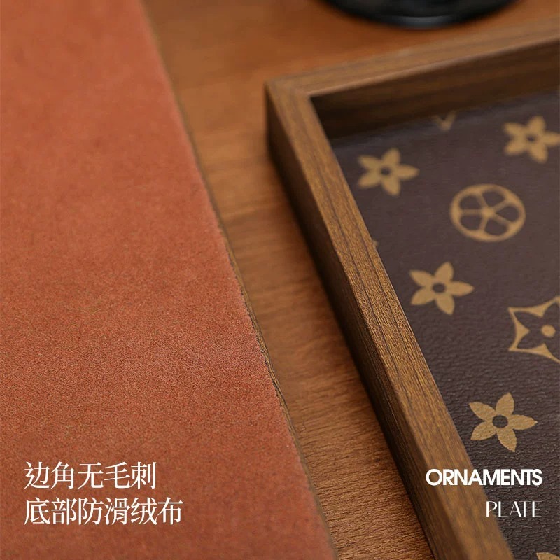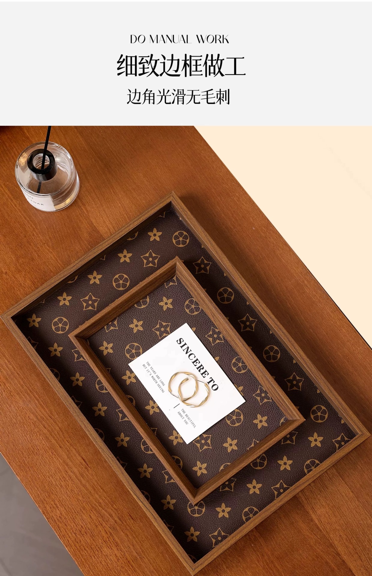Tray Key Storage Entrance Ornaments Desktop Jewelry Vintage Light Luxury Leather Wooden Tea Tray Home Play Bracelet
