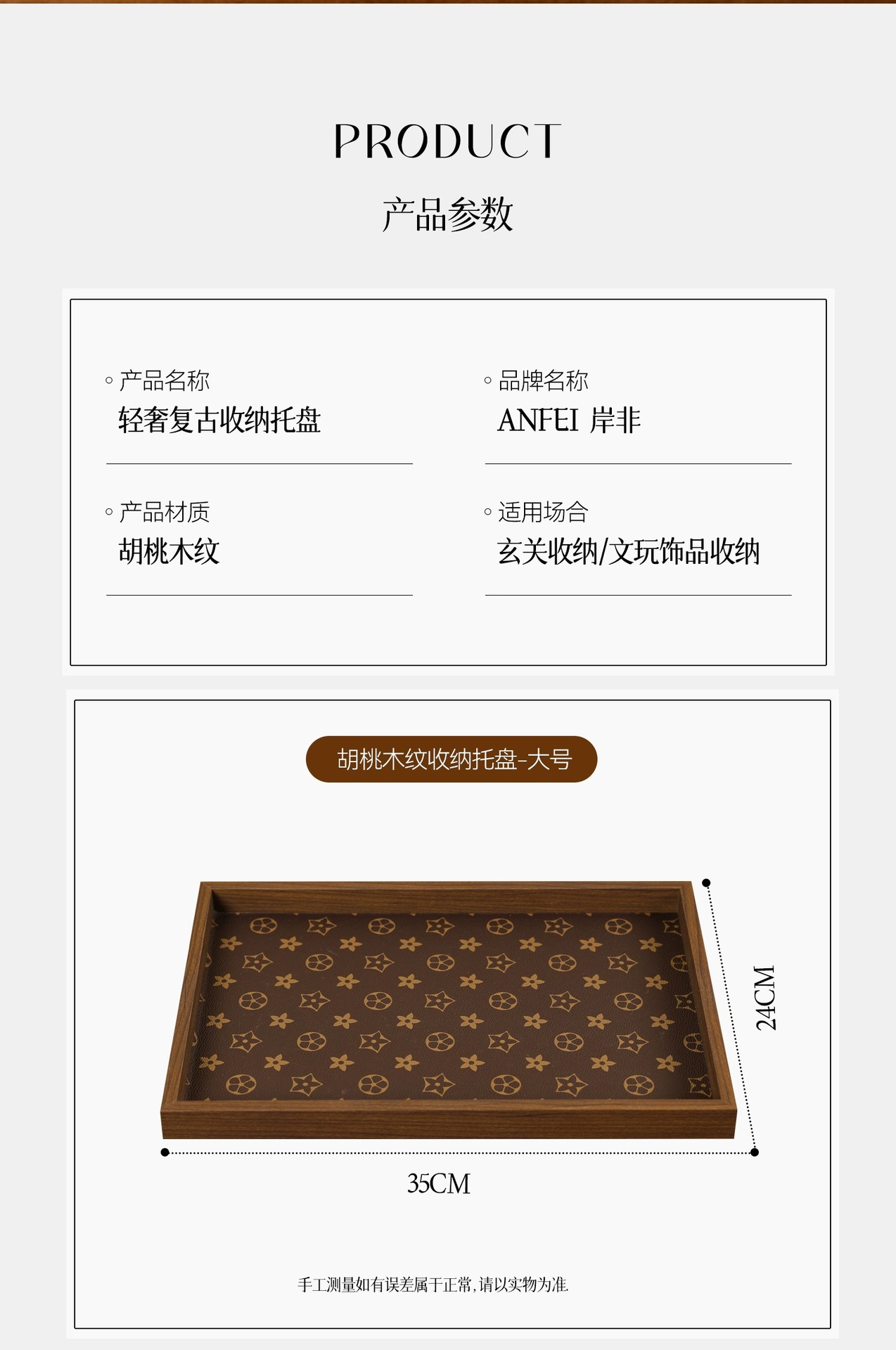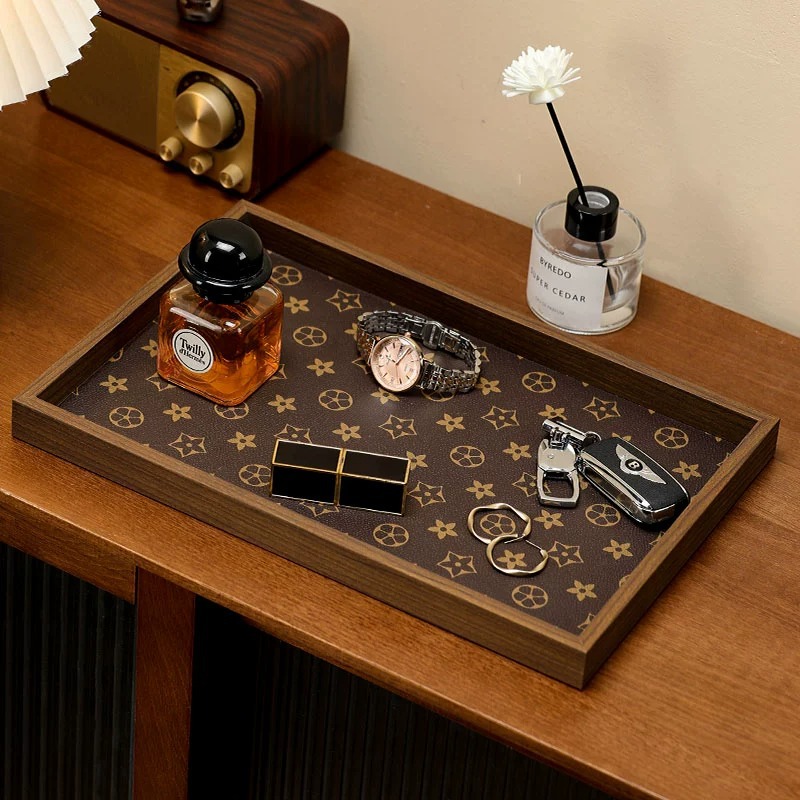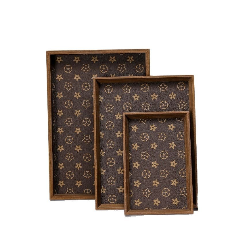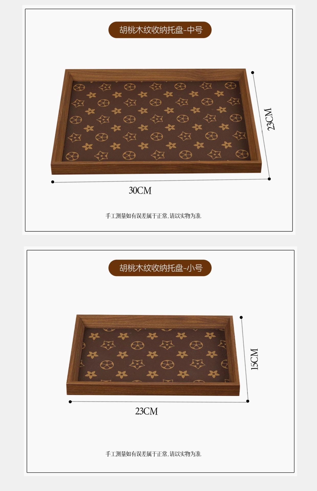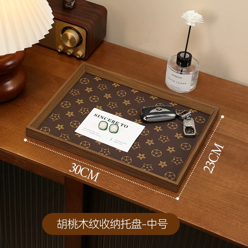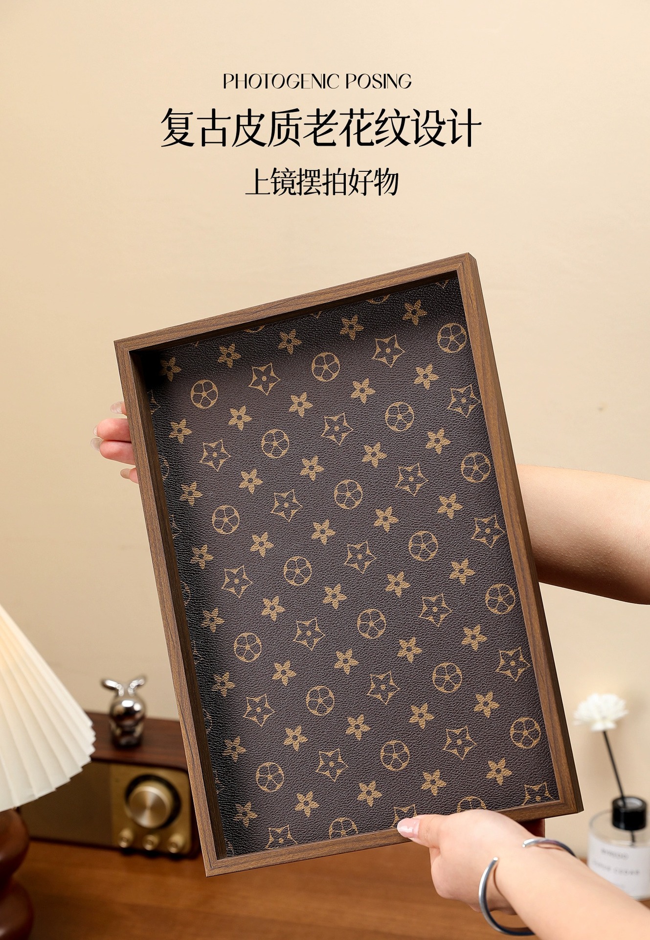 Tray Key Storage Entrance Ornaments Desktop Jewelry Vintage Light Luxury Leather Wooden Tea Tray Home Play Bracelet