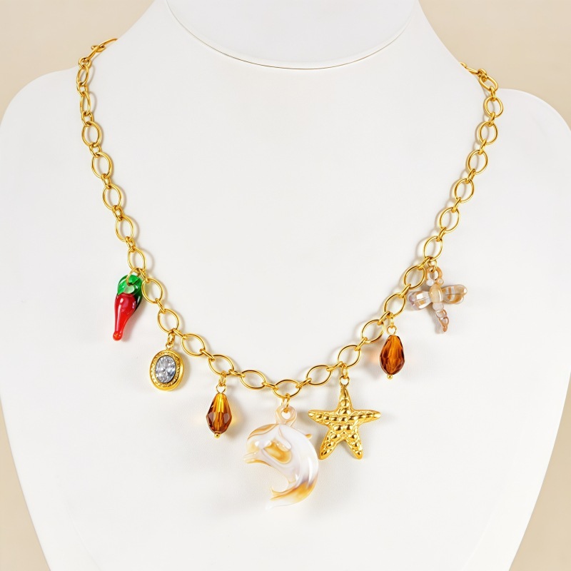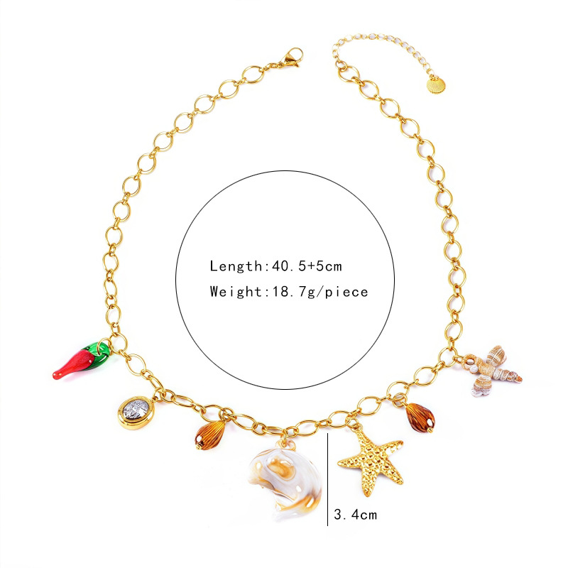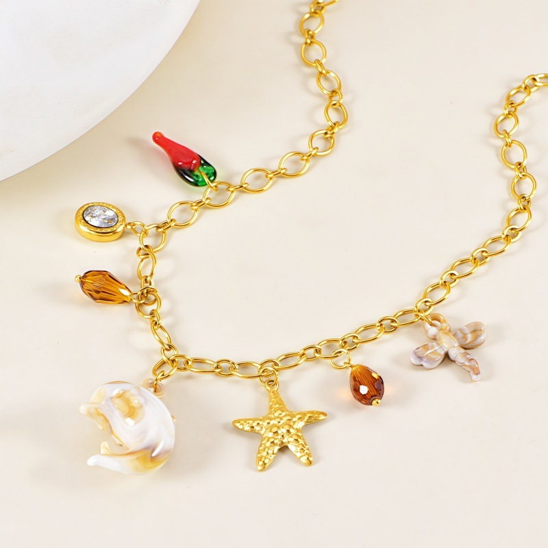 Cross-border Hot Sale Series Ocean Style Cute Dolphin Sweatshirt Chain Starfish Drop Diamond Stainless Steel Color Resistant Clavicle Necklace
