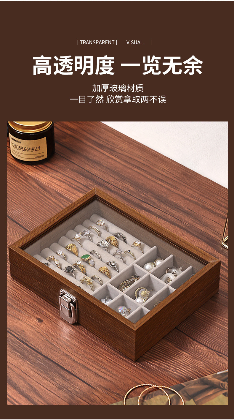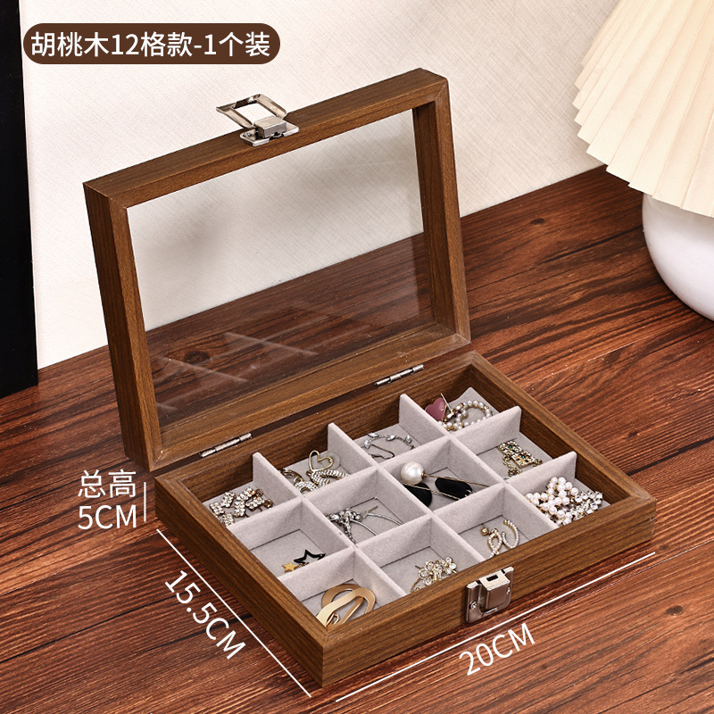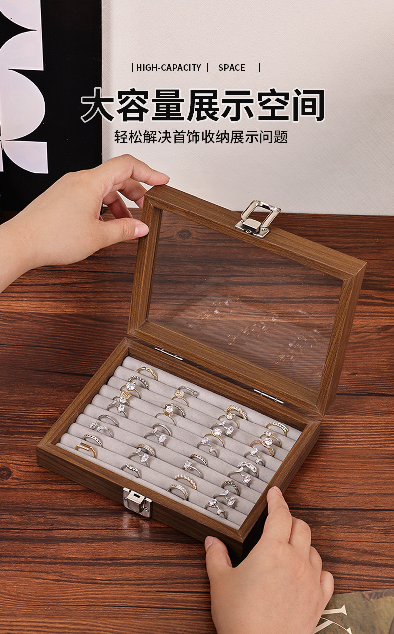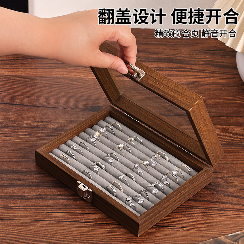 Black Walnut Wood Grain Dustproof Jewelry Box Bracelet Ring Earrings Earrings Display Plate Jewelry Jewelry Storage Box