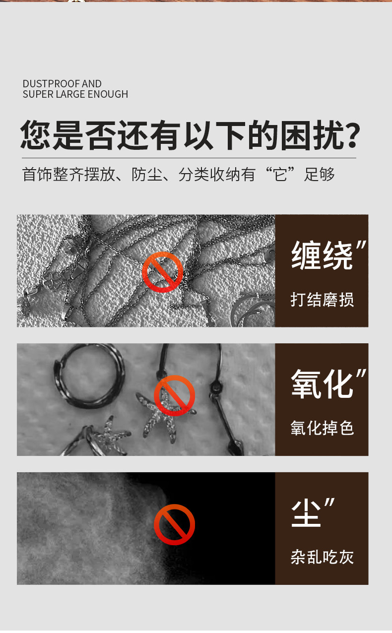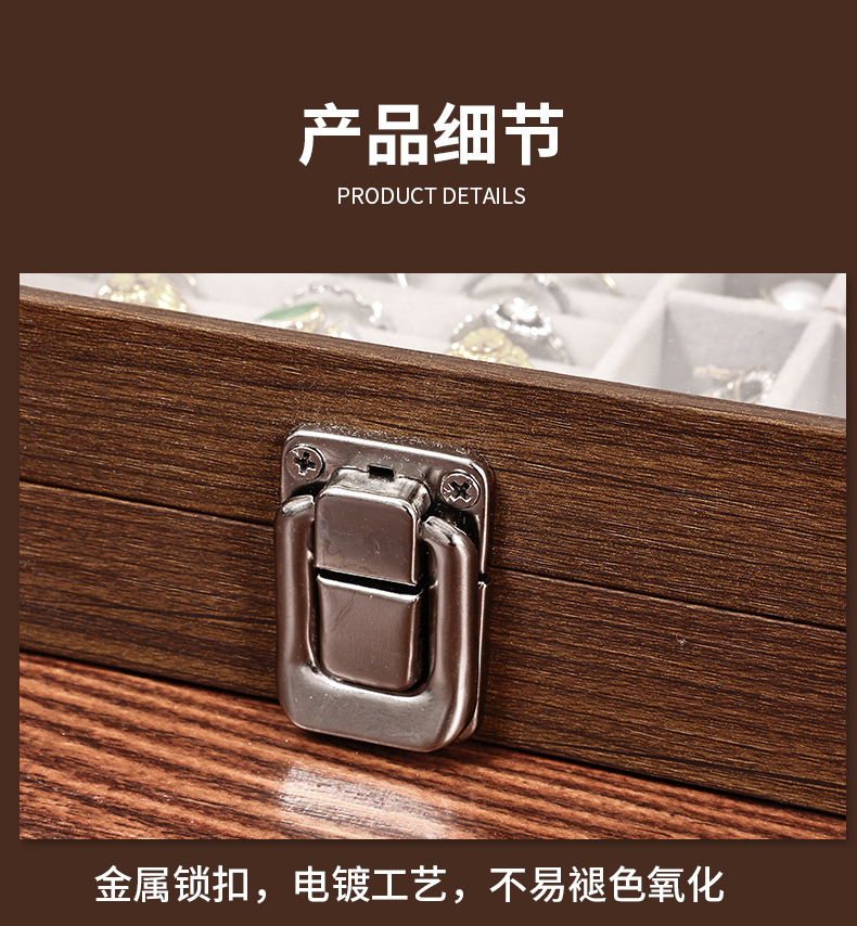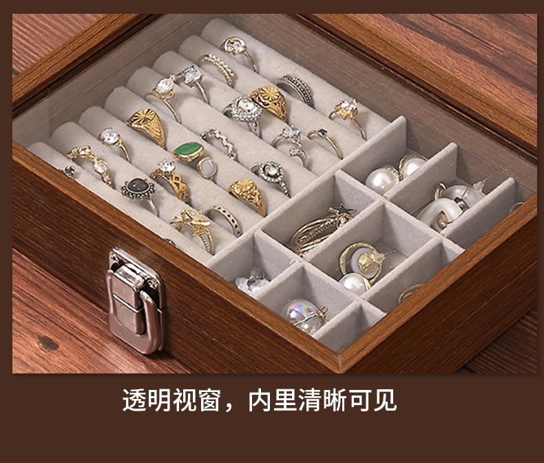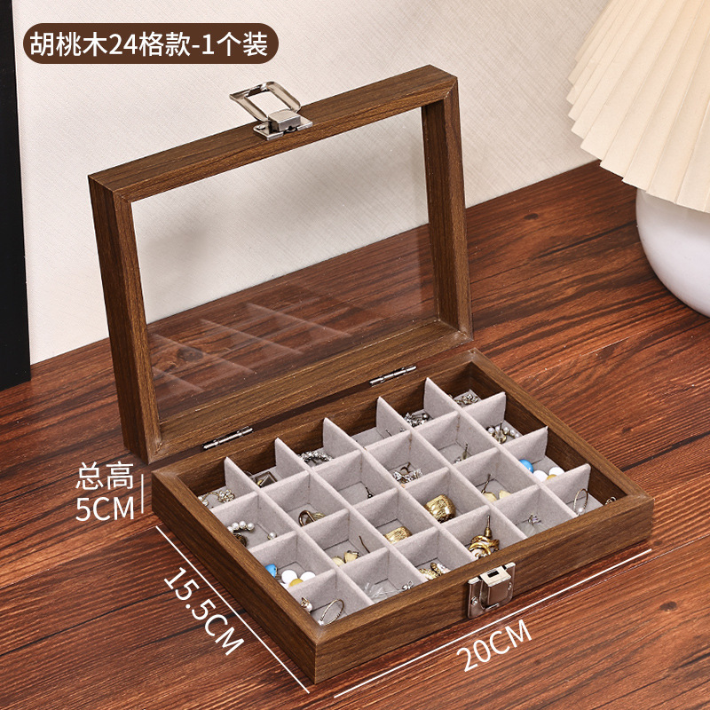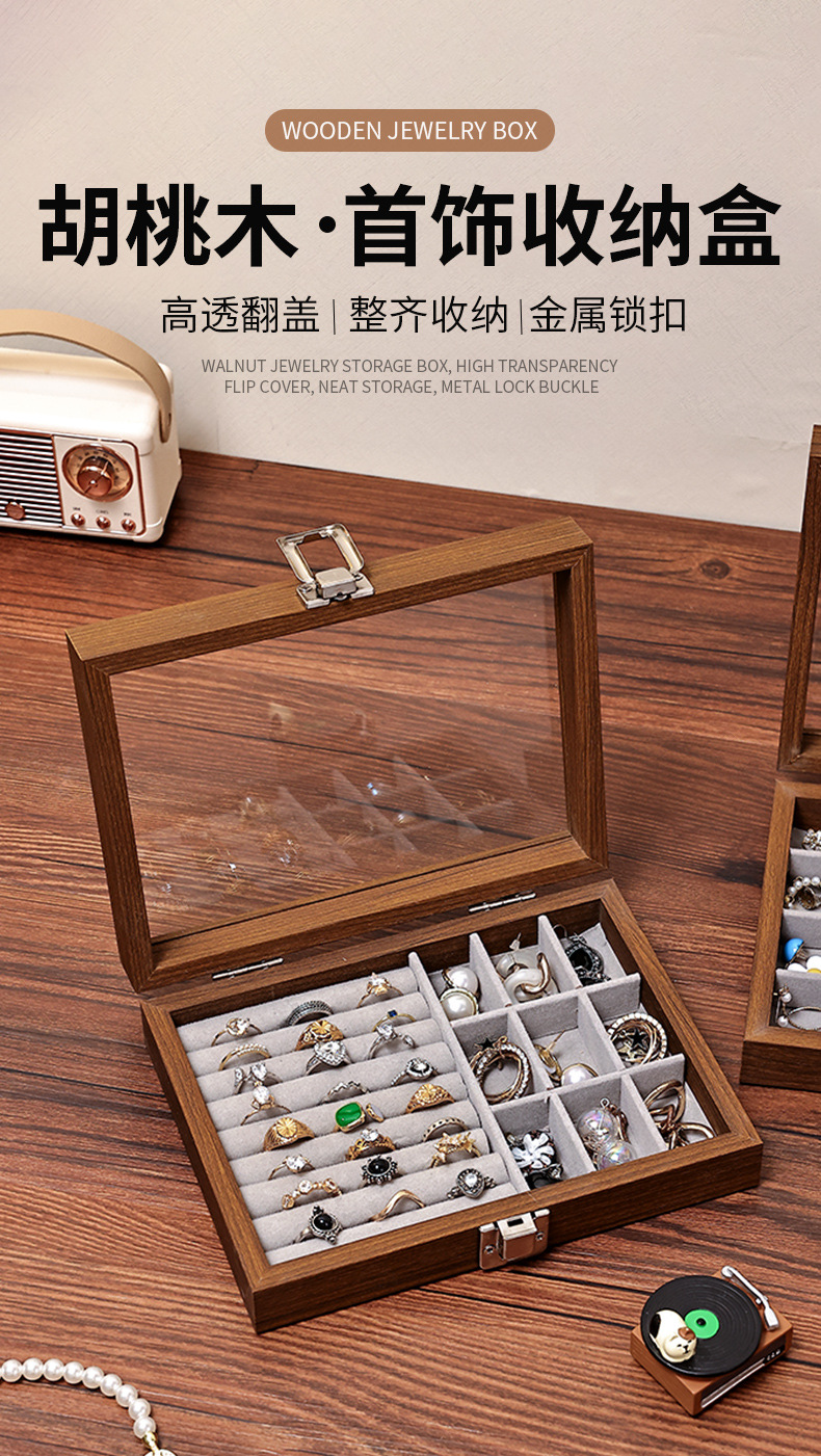 Black Walnut Wood Grain Dustproof Jewelry Box Bracelet Ring Earrings Earrings Display Plate Jewelry Jewelry Storage Box