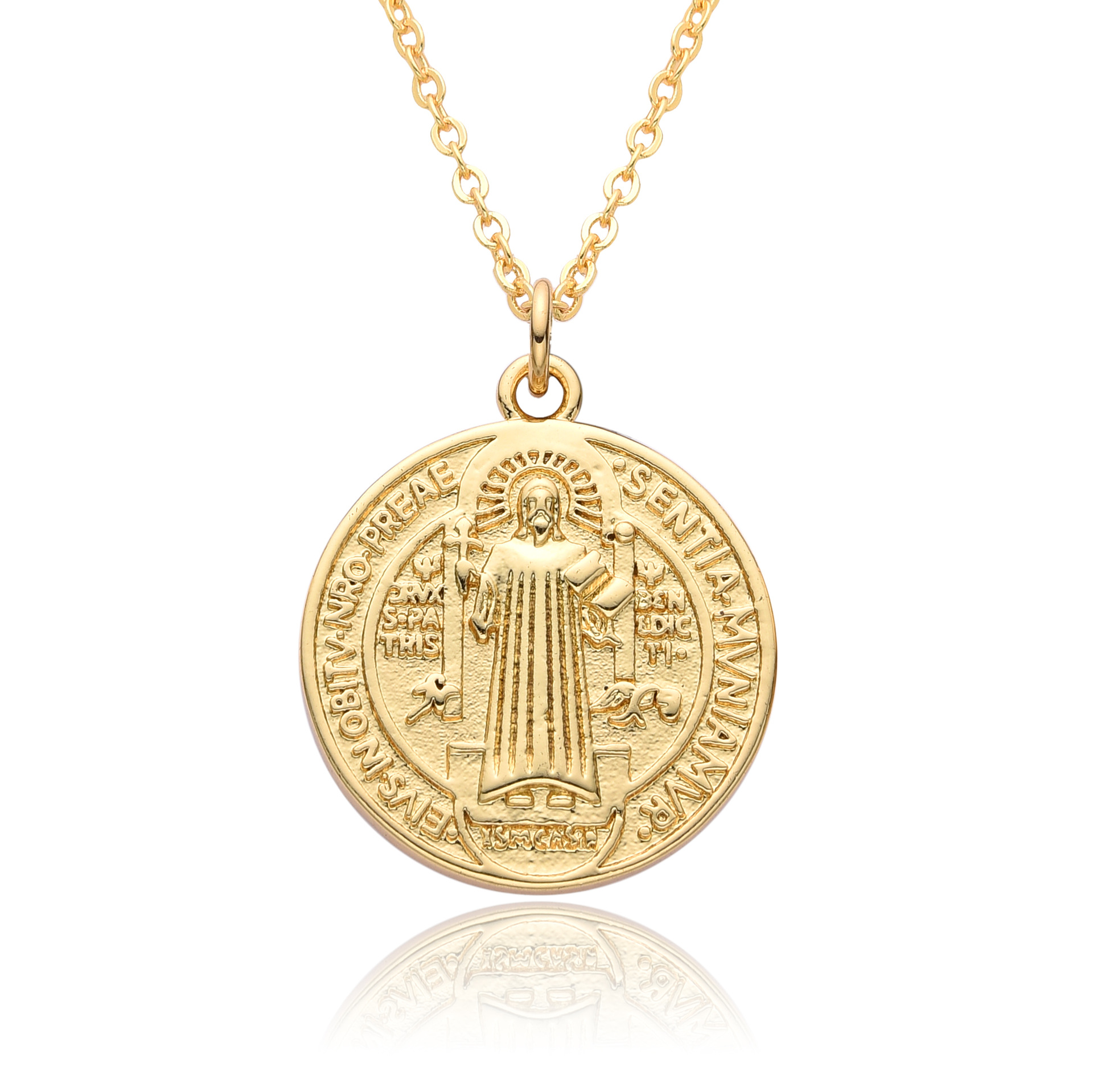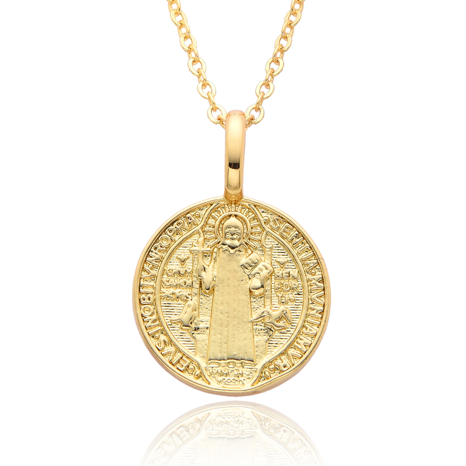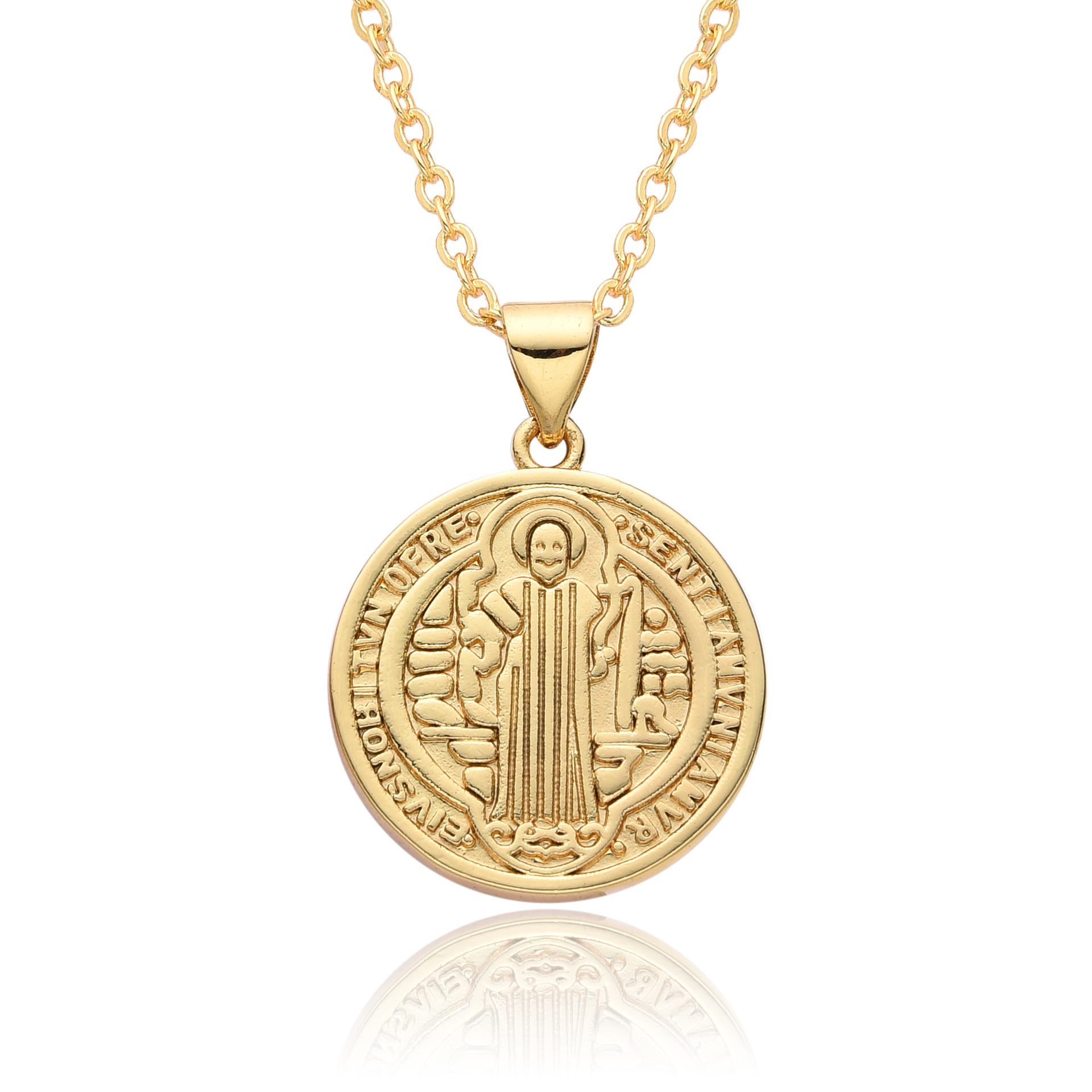 European and American Cross-Border Religious Personalized Statue Clavicle Chain Zircon Environmentally Friendly Copper Material Pendant Necklace Copper Plated 18K Real Gold