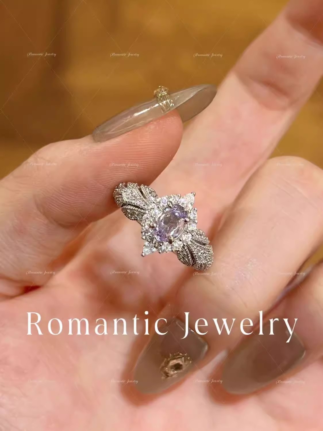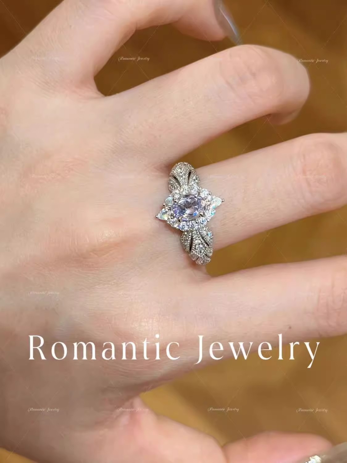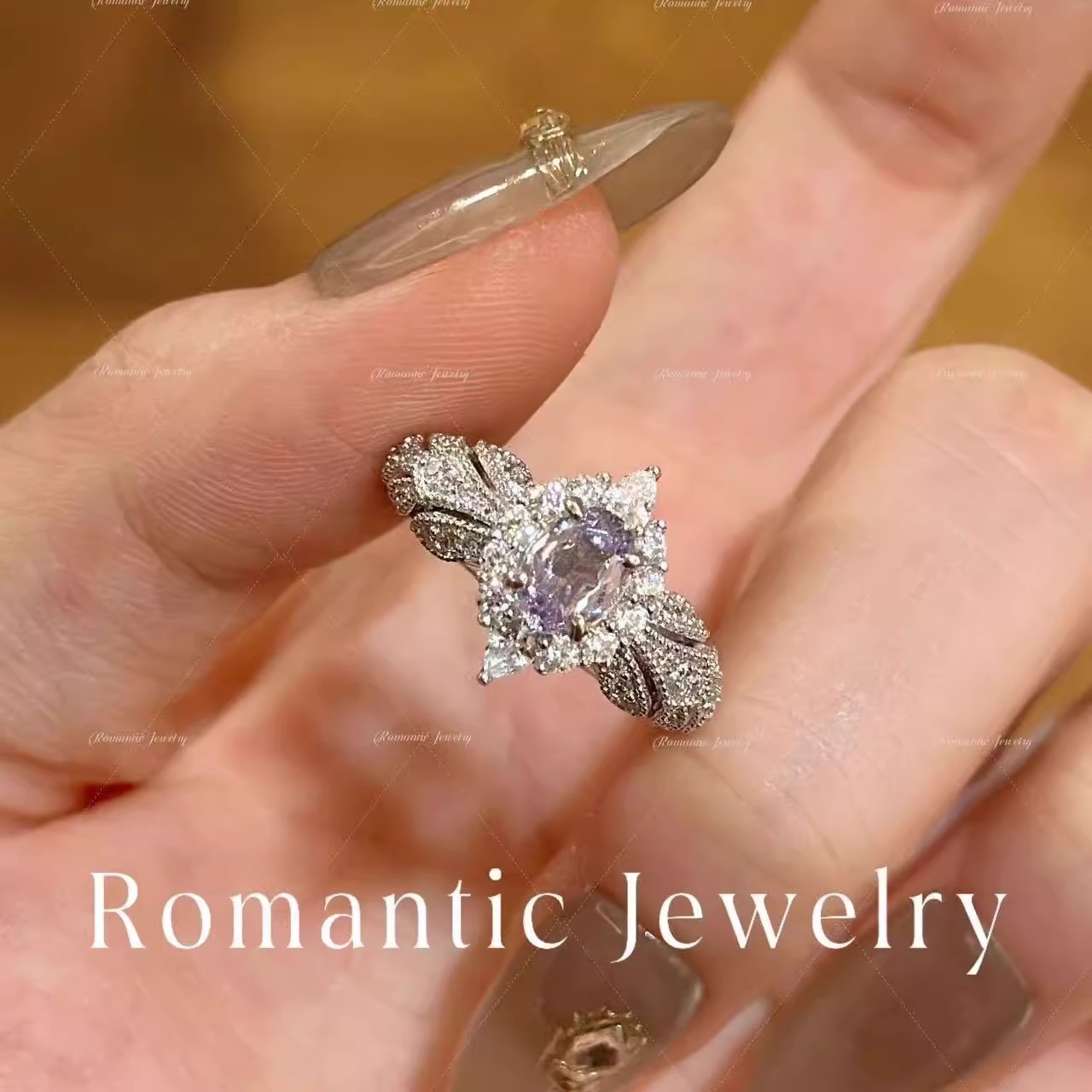 Provence ~ Super Flash Lilac Zircon Light Luxury High Feeling Temperament Ring Open Ring Ring
