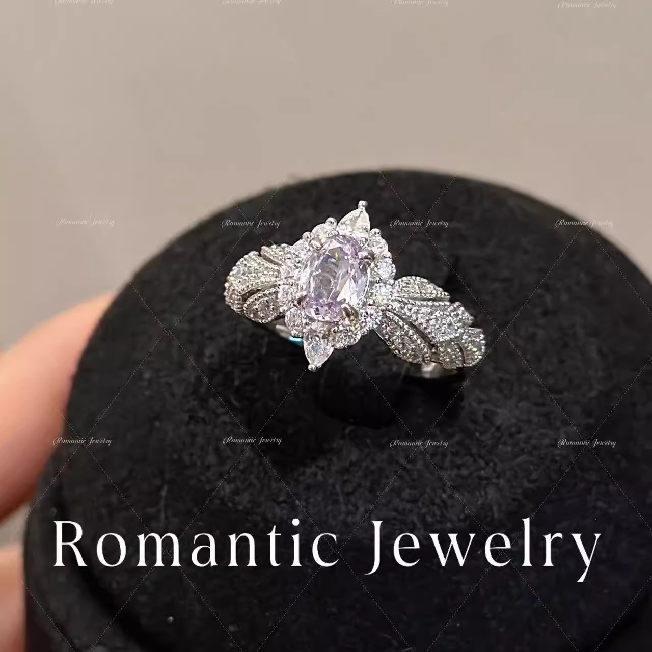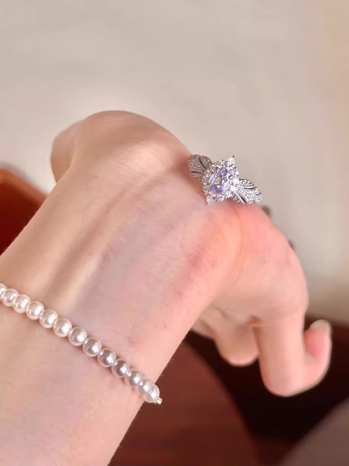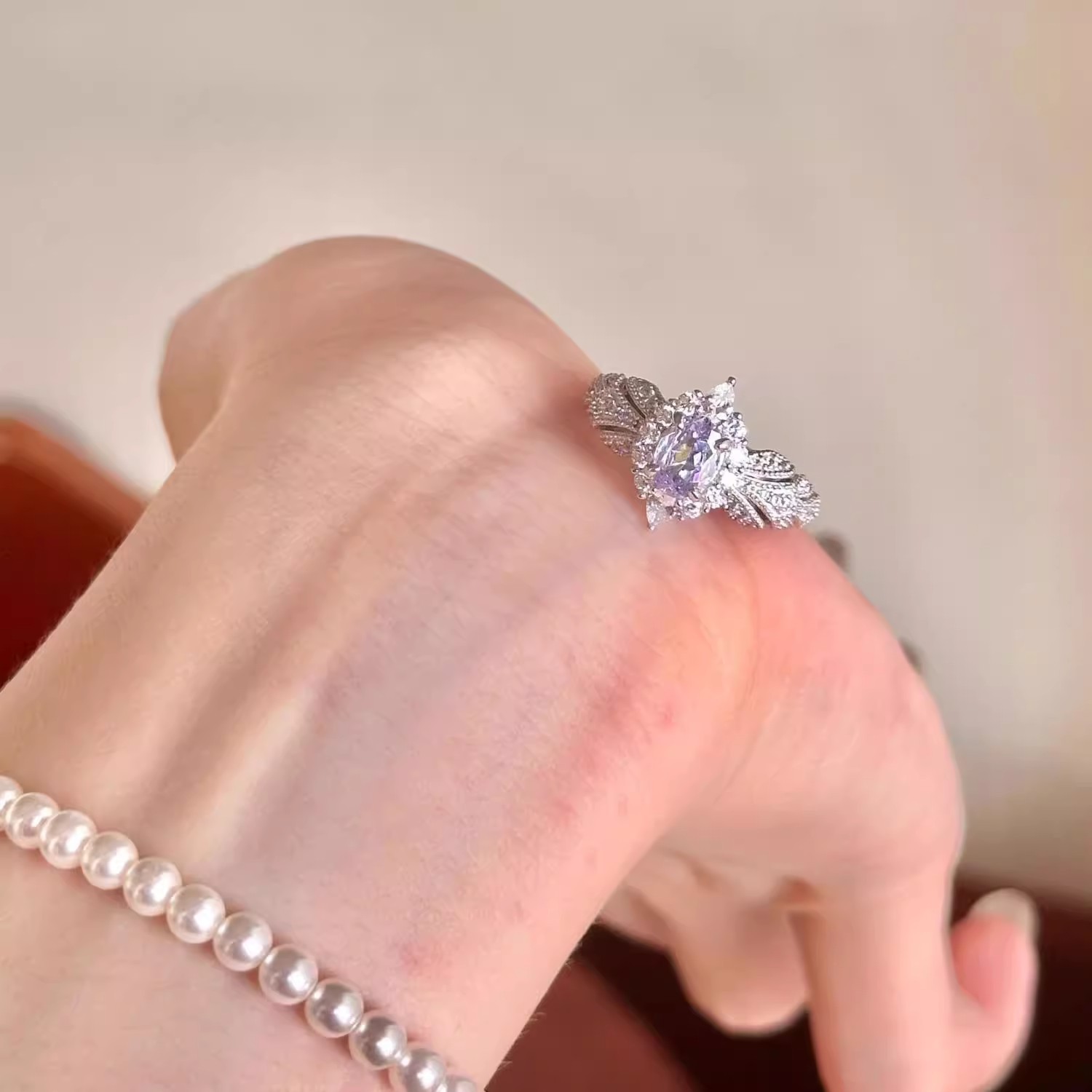 Provence ~ Super Flash Lilac Zircon Light Luxury High Feeling Temperament Ring Open Ring Ring