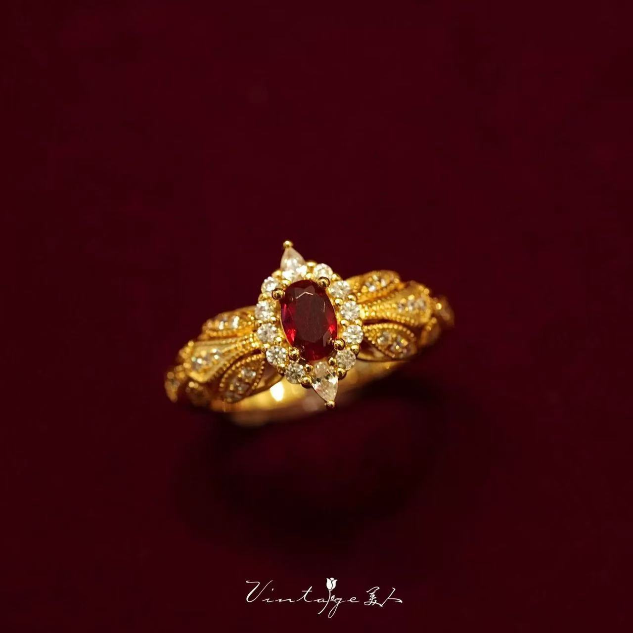 Color: Yellow gold, red zirconium ring