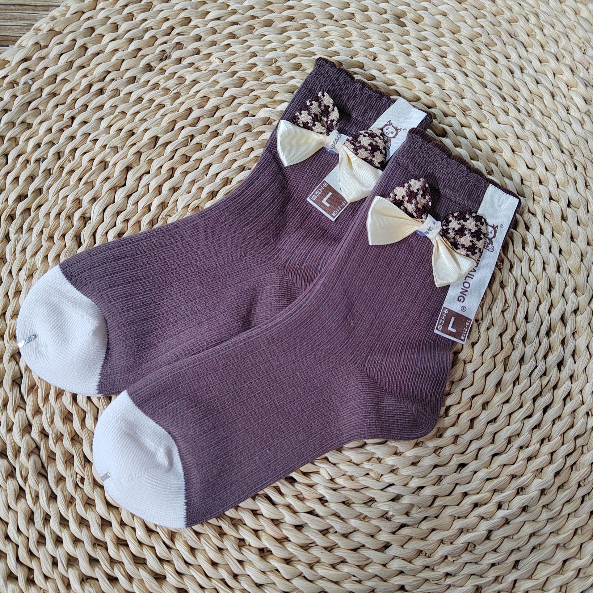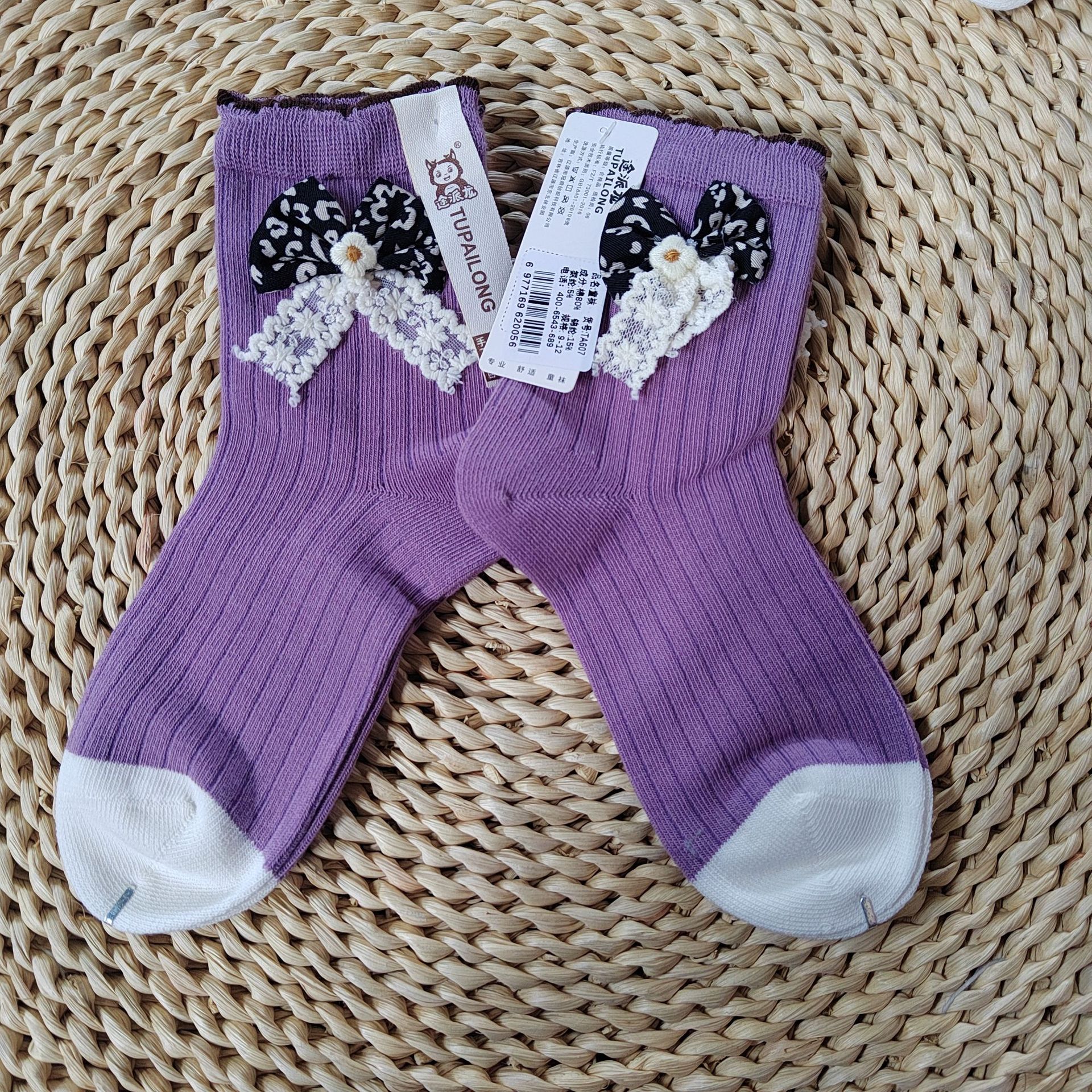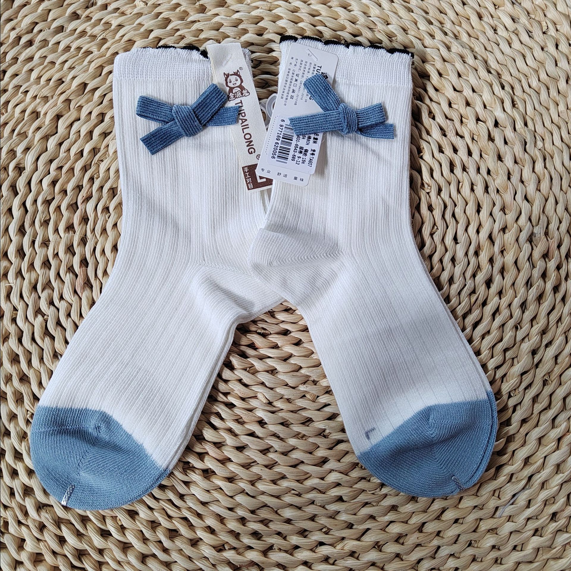 Clearance Socks: Tupa Long Girls' Mid-High Tube Autumn and Winter Cotton Socks with Seamless Toe and Bowknot