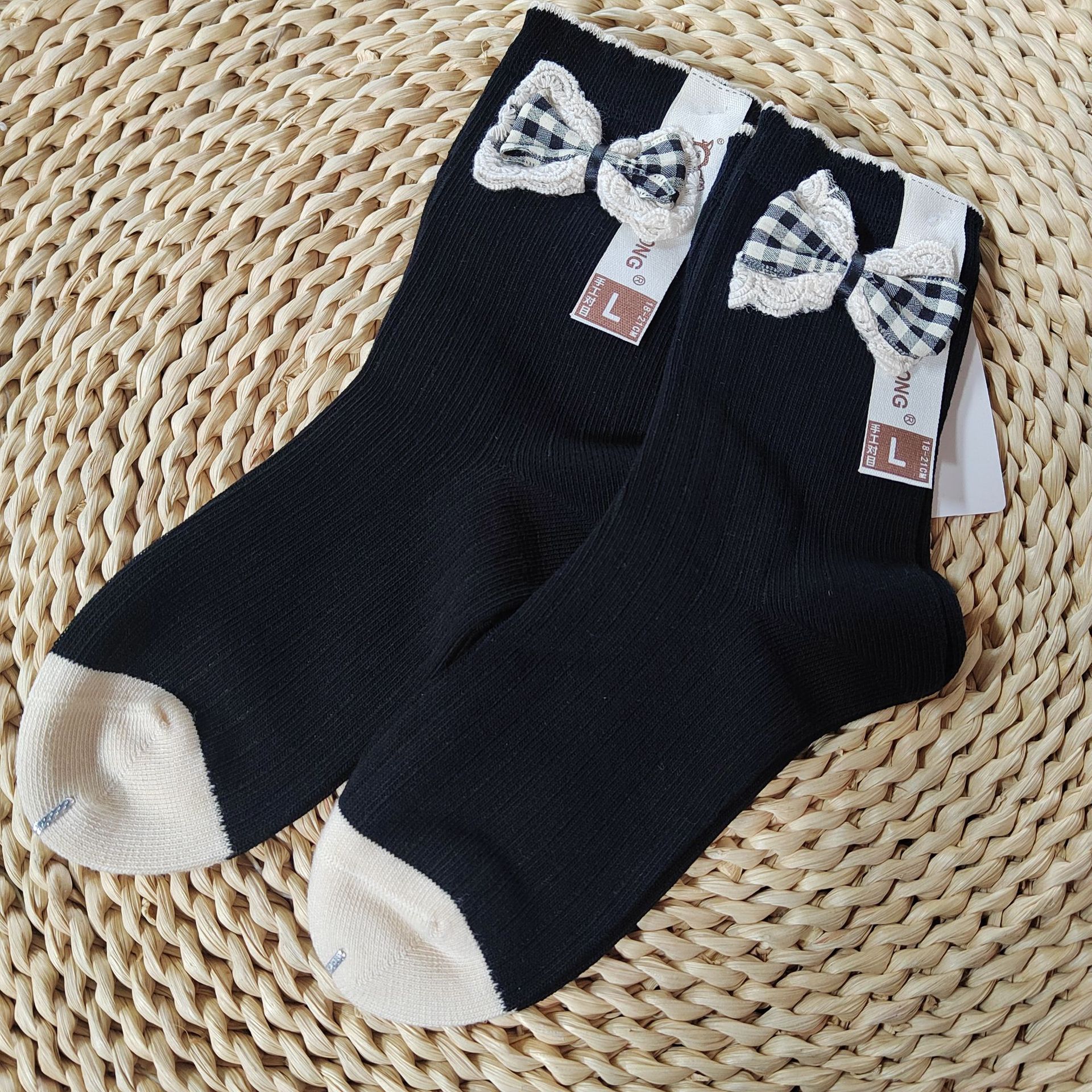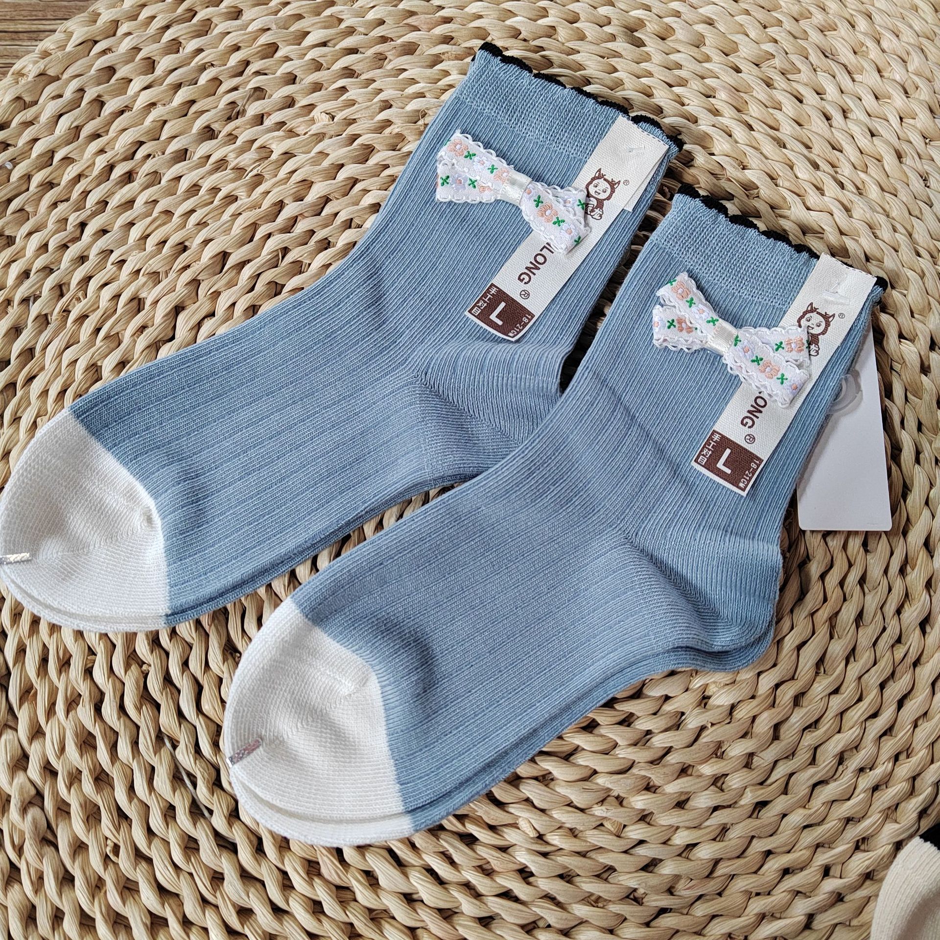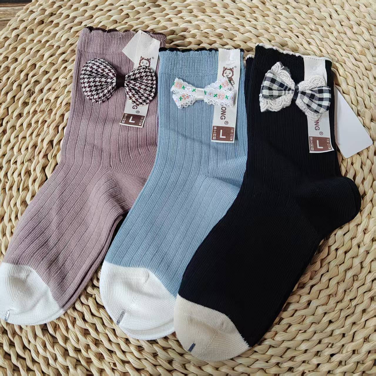 Clearance Socks: Tupa Long Girls' Mid-High Tube Autumn and Winter Cotton Socks with Seamless Toe and Bowknot