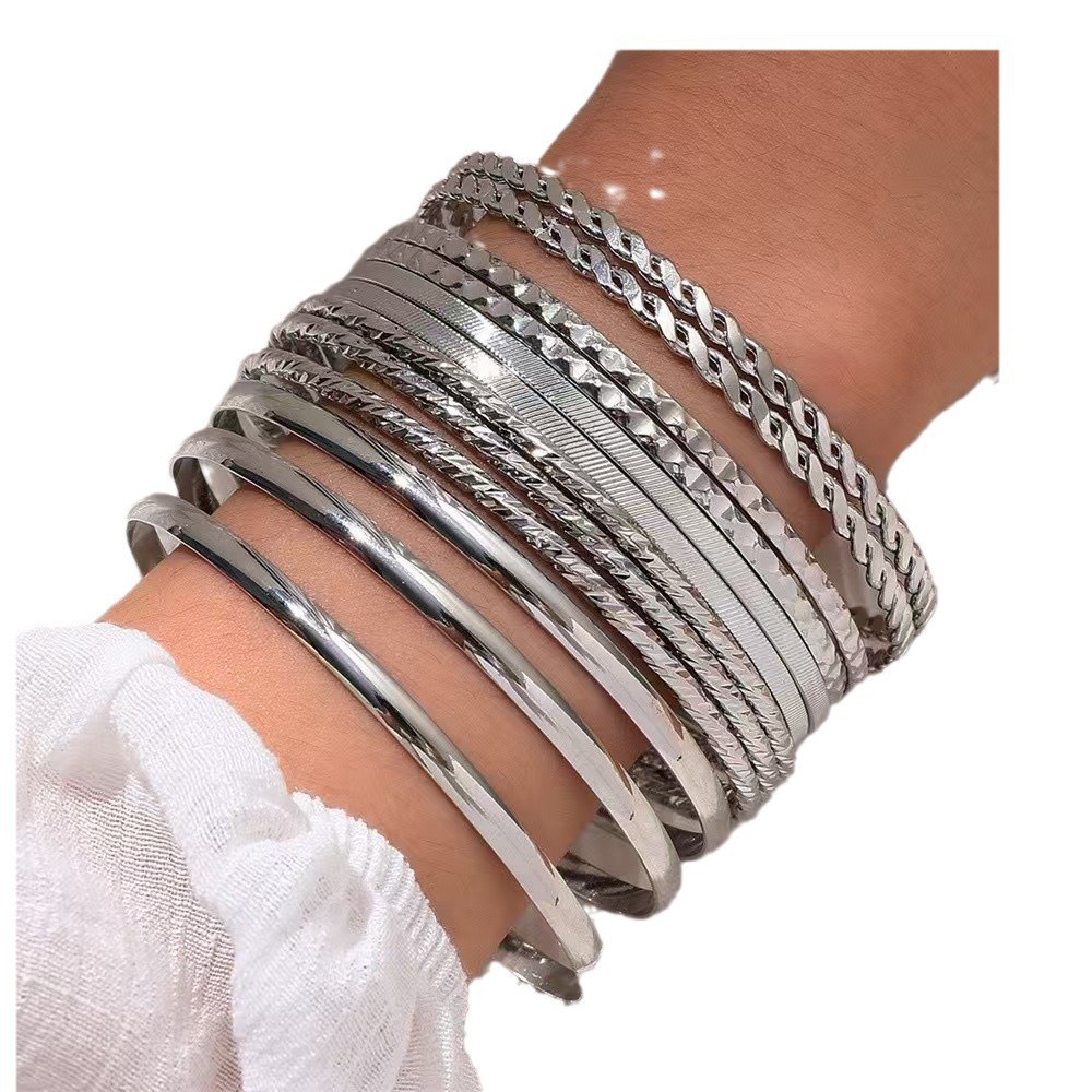 Cross-border New Bohemian Style Multi-layer Bracelet Women's Gold Plated Exaggerated Metal Mix-up Wear Hollow-out Bracelet