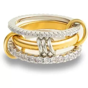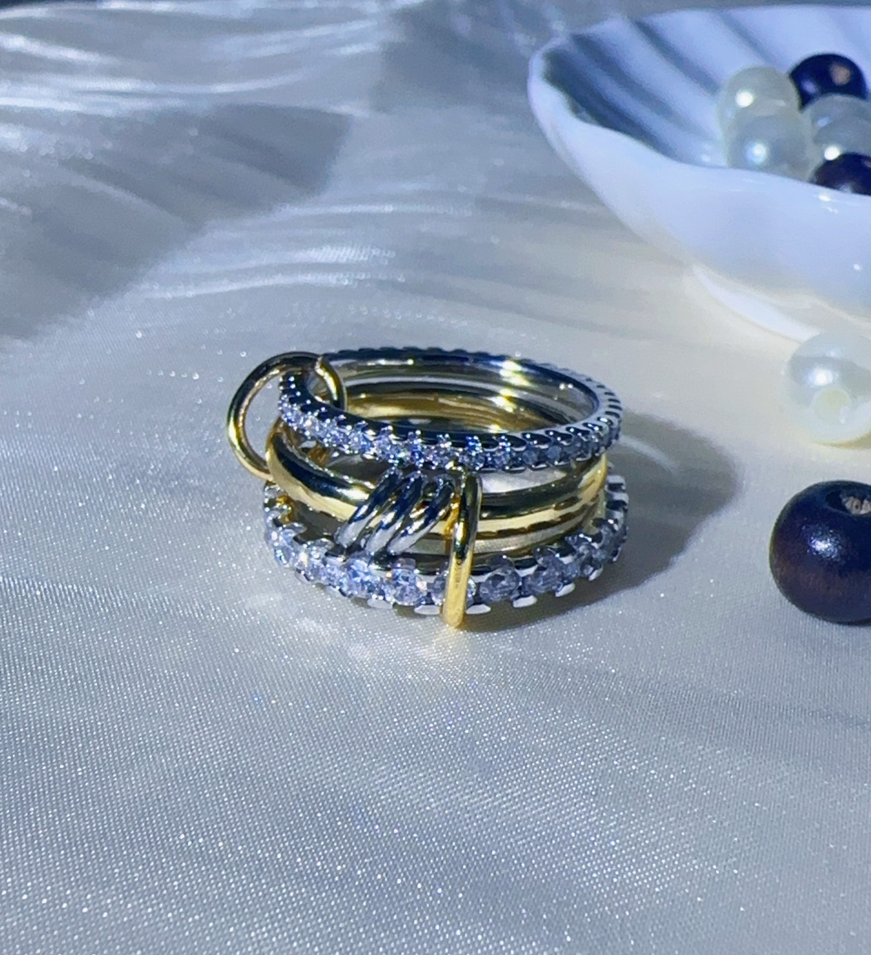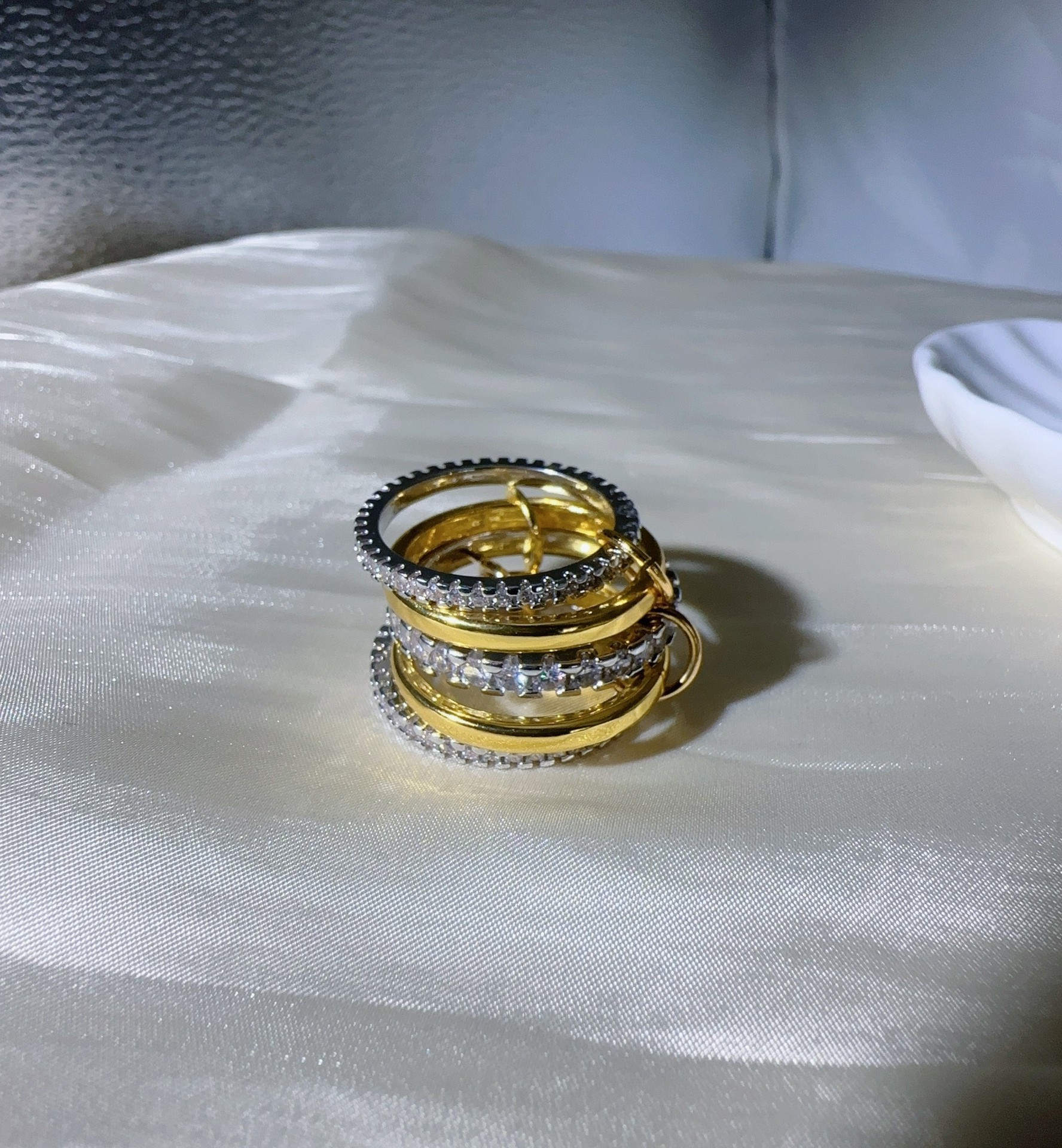 Amazon New Stacked Cubic Zirconia Ring 18k Gold Titanium Steel Thick High Gloss Gold and Silver Double Ring
