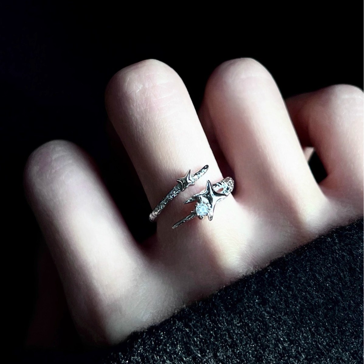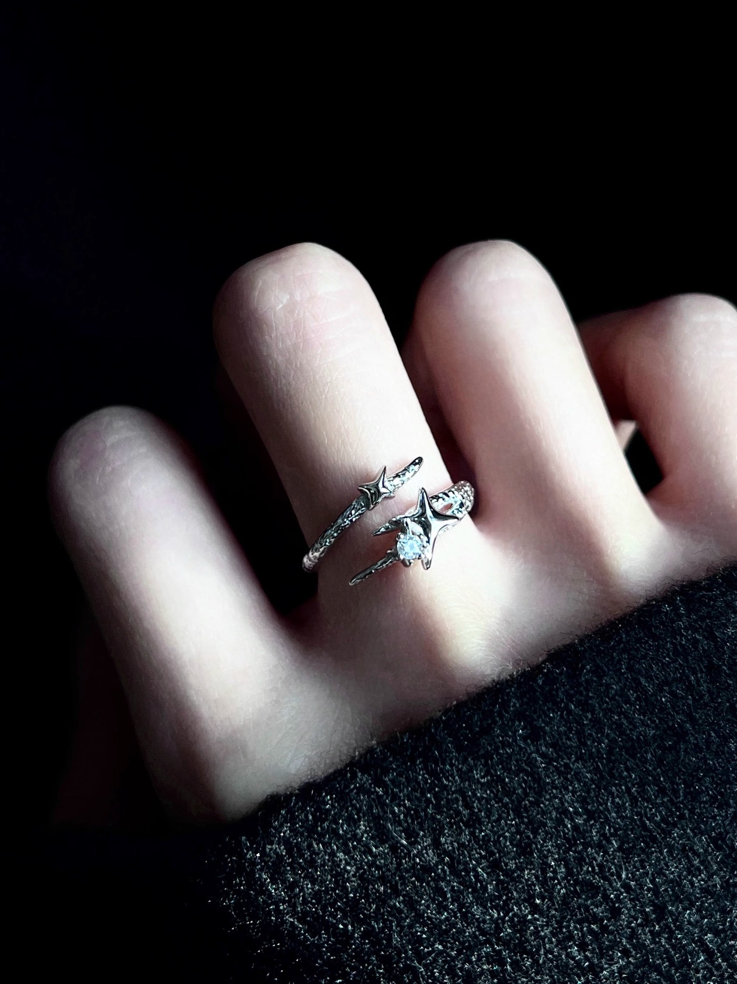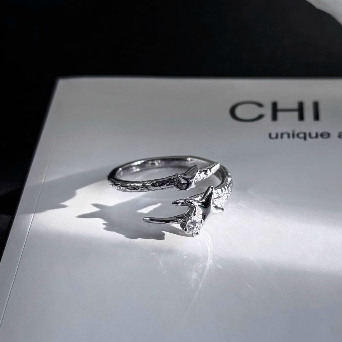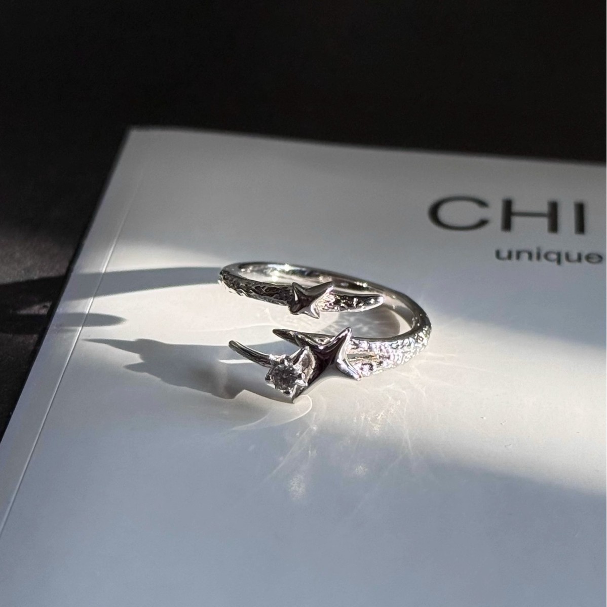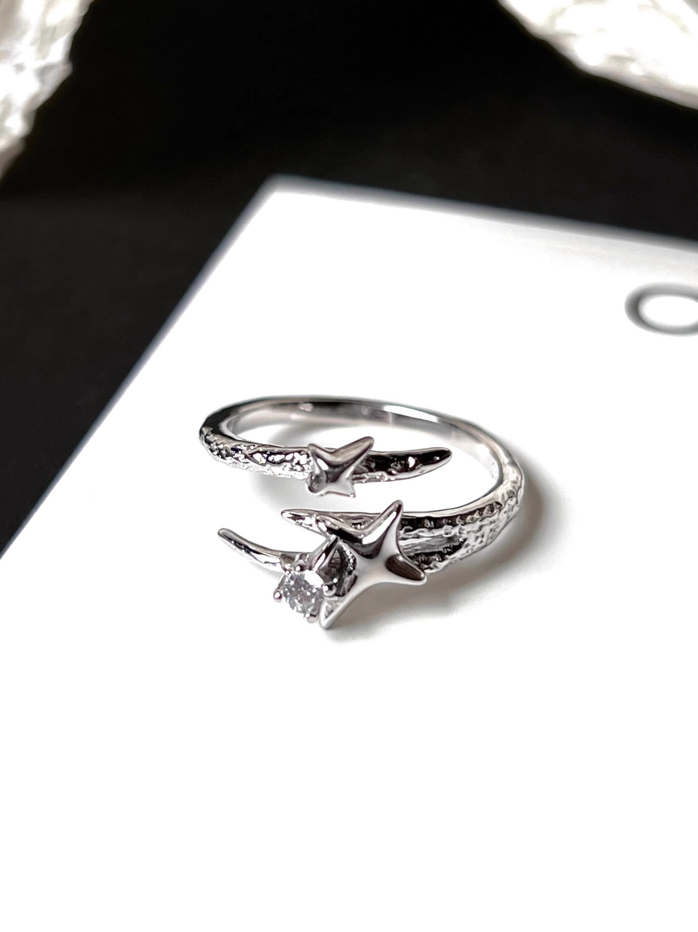 Korean Style Minimalist Textured Star Zircon Open Ring Niche Design High-End Fashion Light Luxury Ring for Women