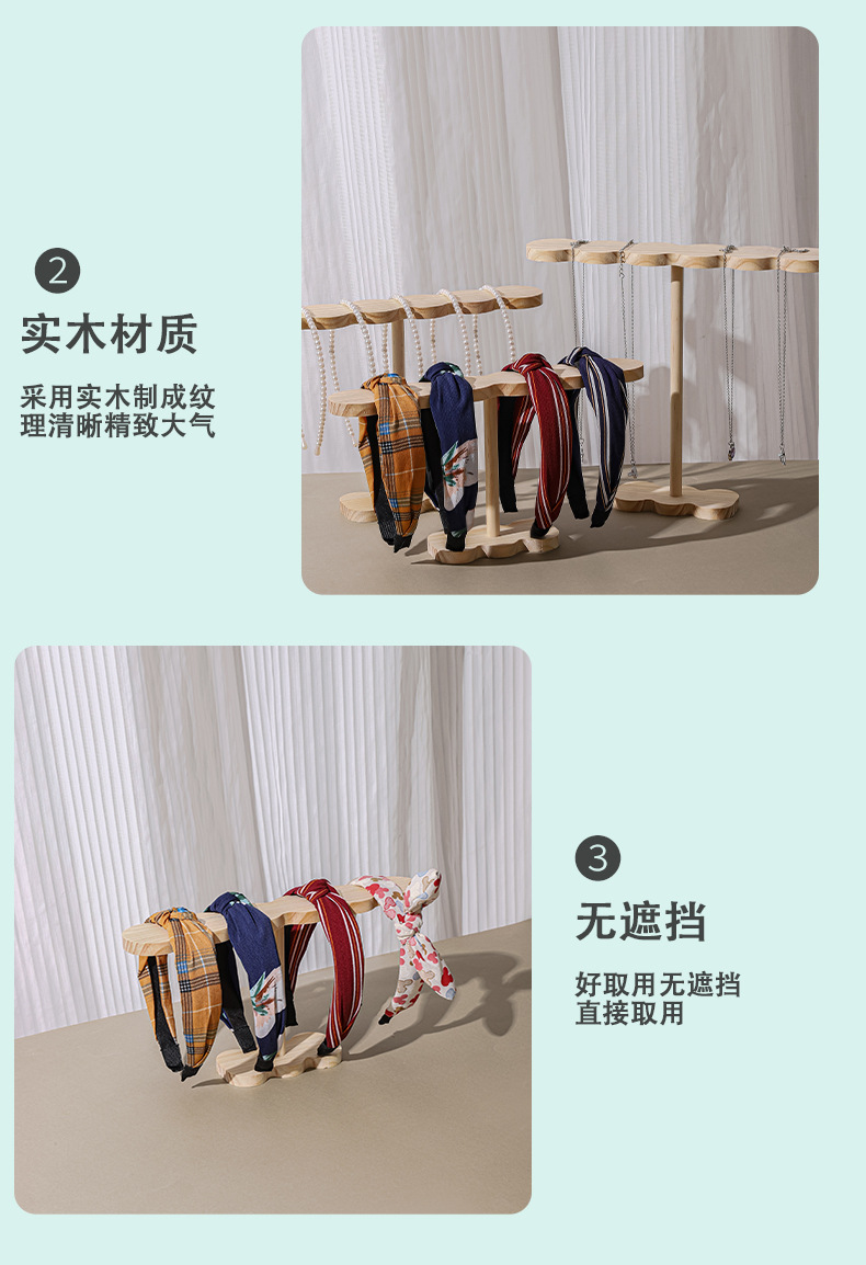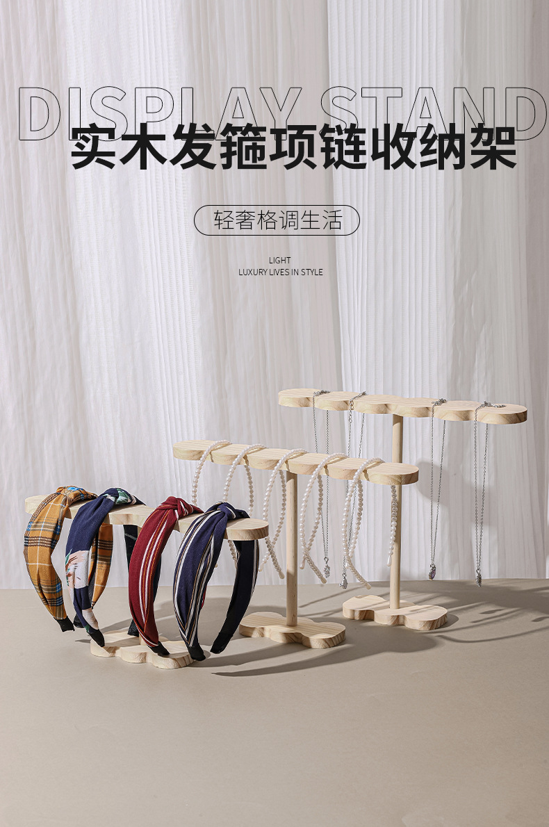 Cross-border Hot Selling Stall Solid Wood Hair Band Display Rack Hair Ring Necklace Bracelet Storage Rack Hair Accessories Display Shelf