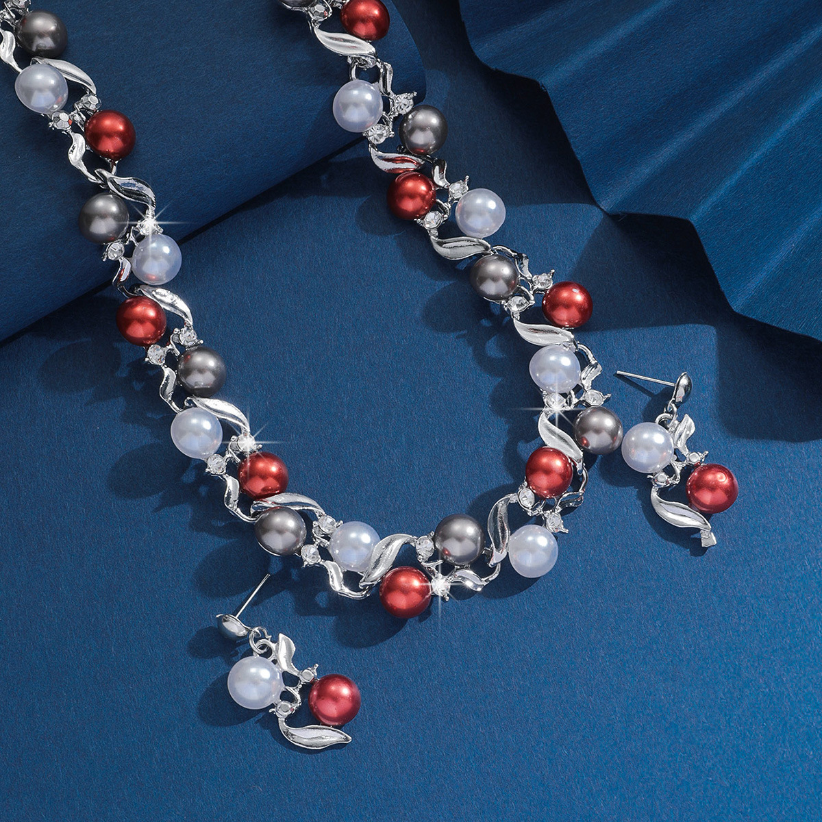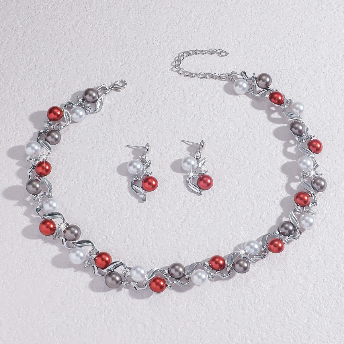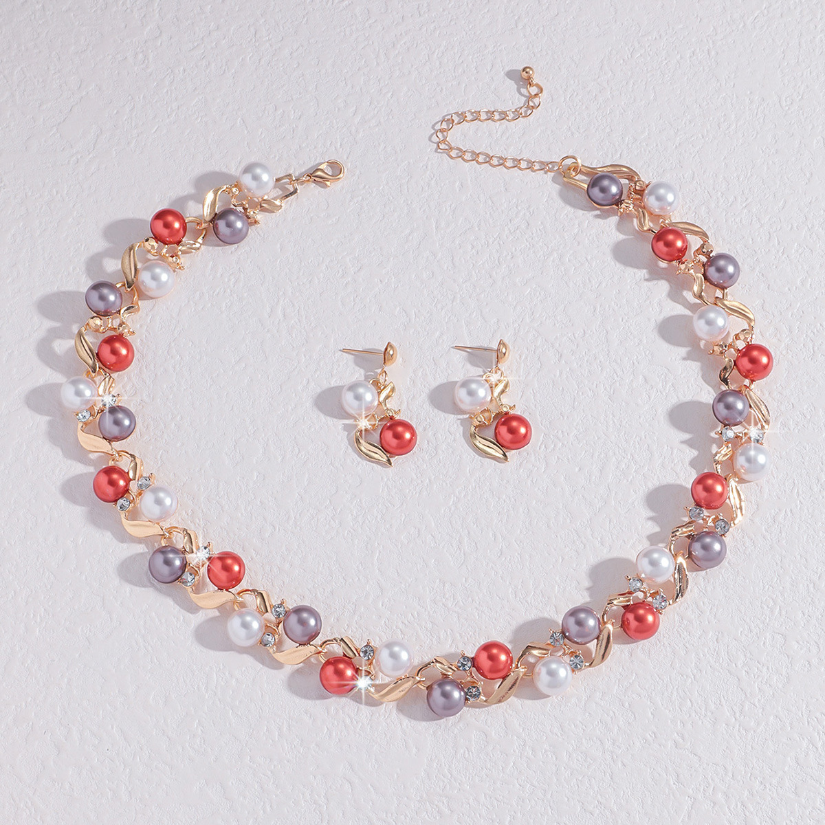 European and American Hot Pearl Necklace Earrings Bracelet Two-piece Set Fashion All-match Collarbone Pearl Jewelry Women's Set Wholesale