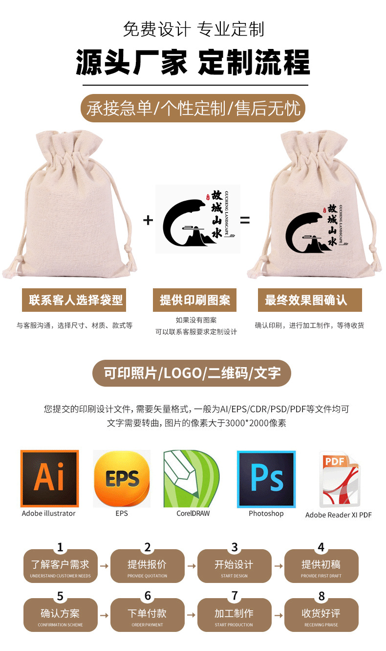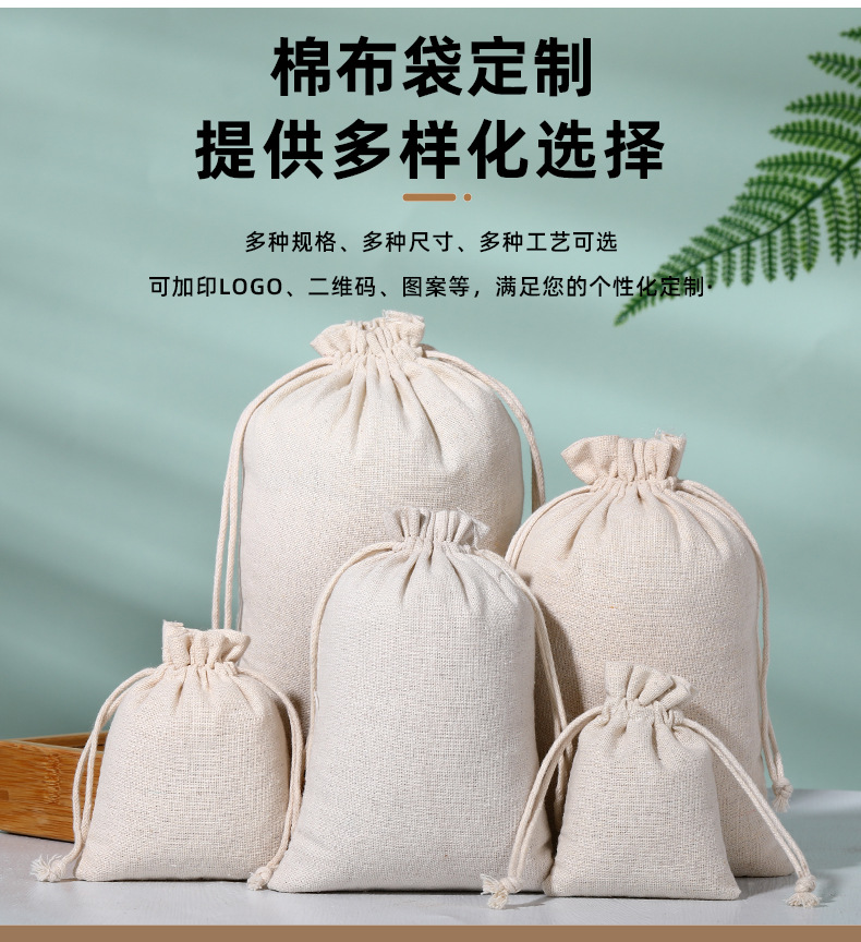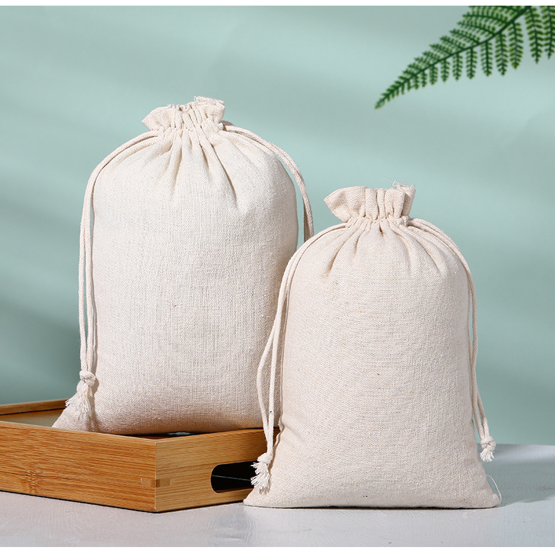 Pure cotton linen bag drawstring storage small bag rice grain packaging bag cotton bag custom