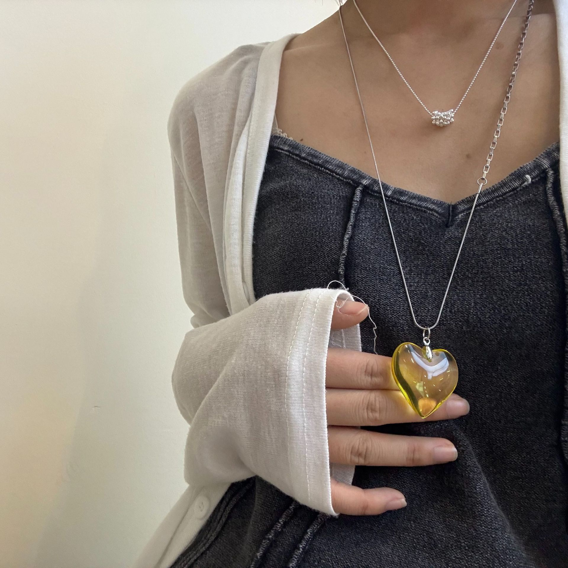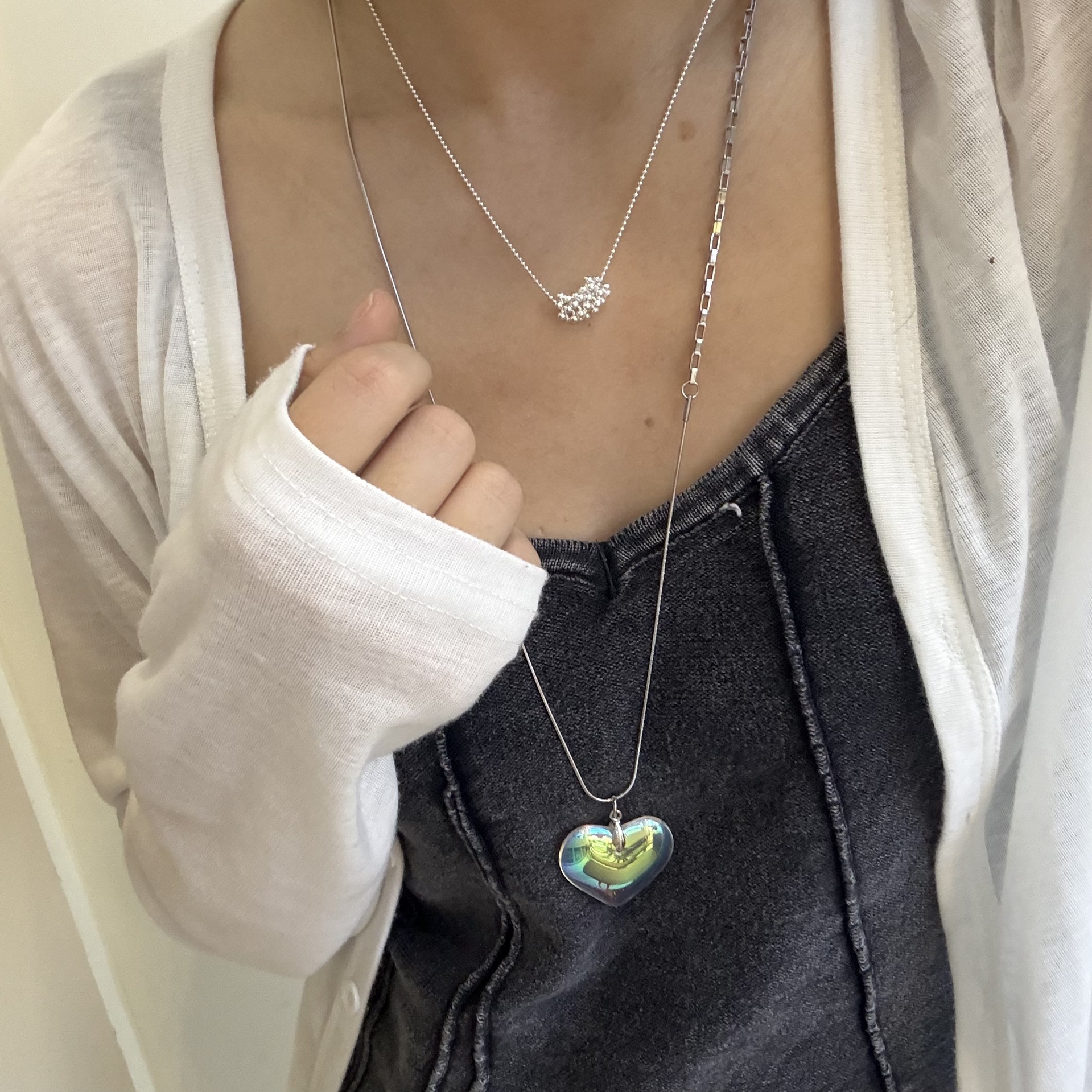 Color: Double chain + resin white heart
