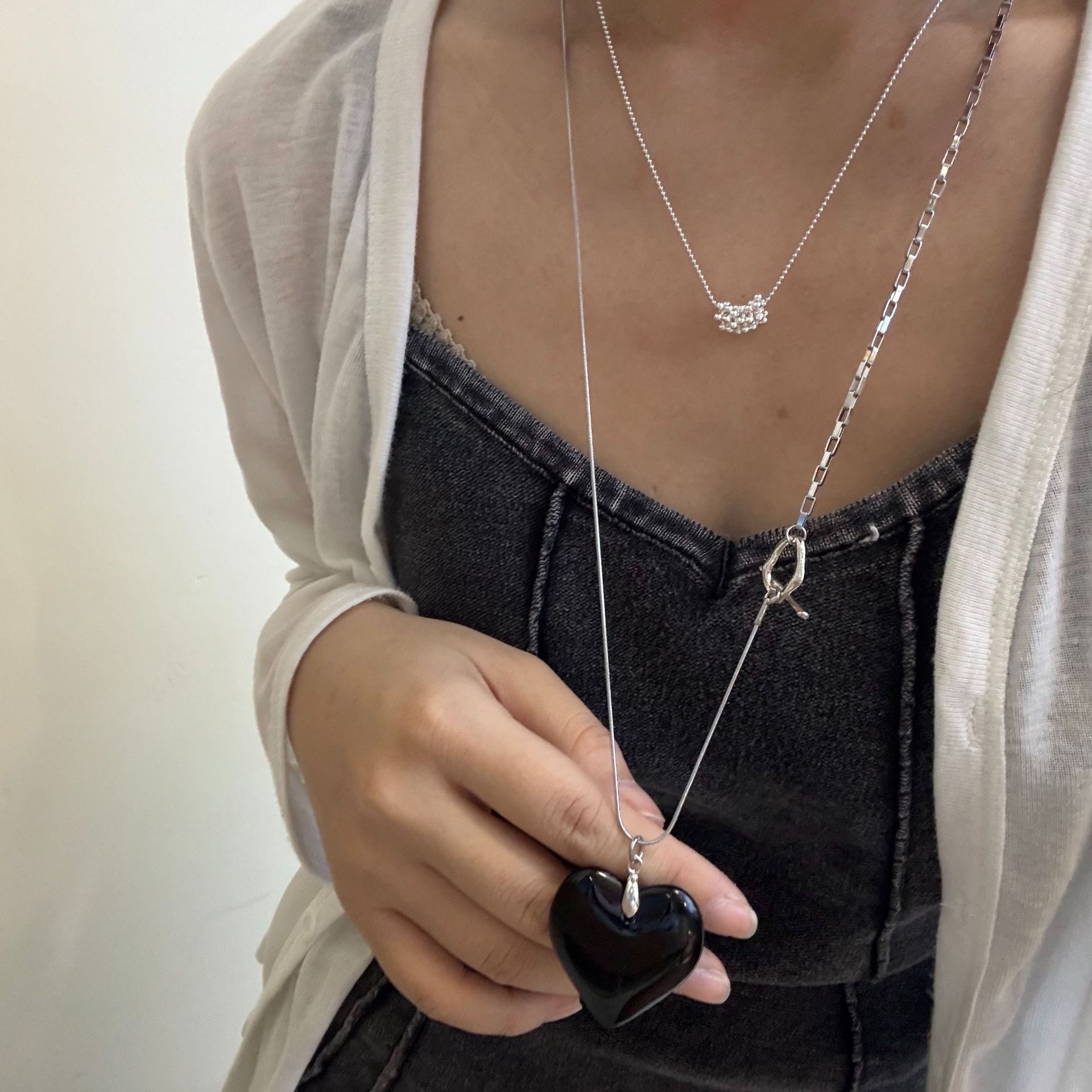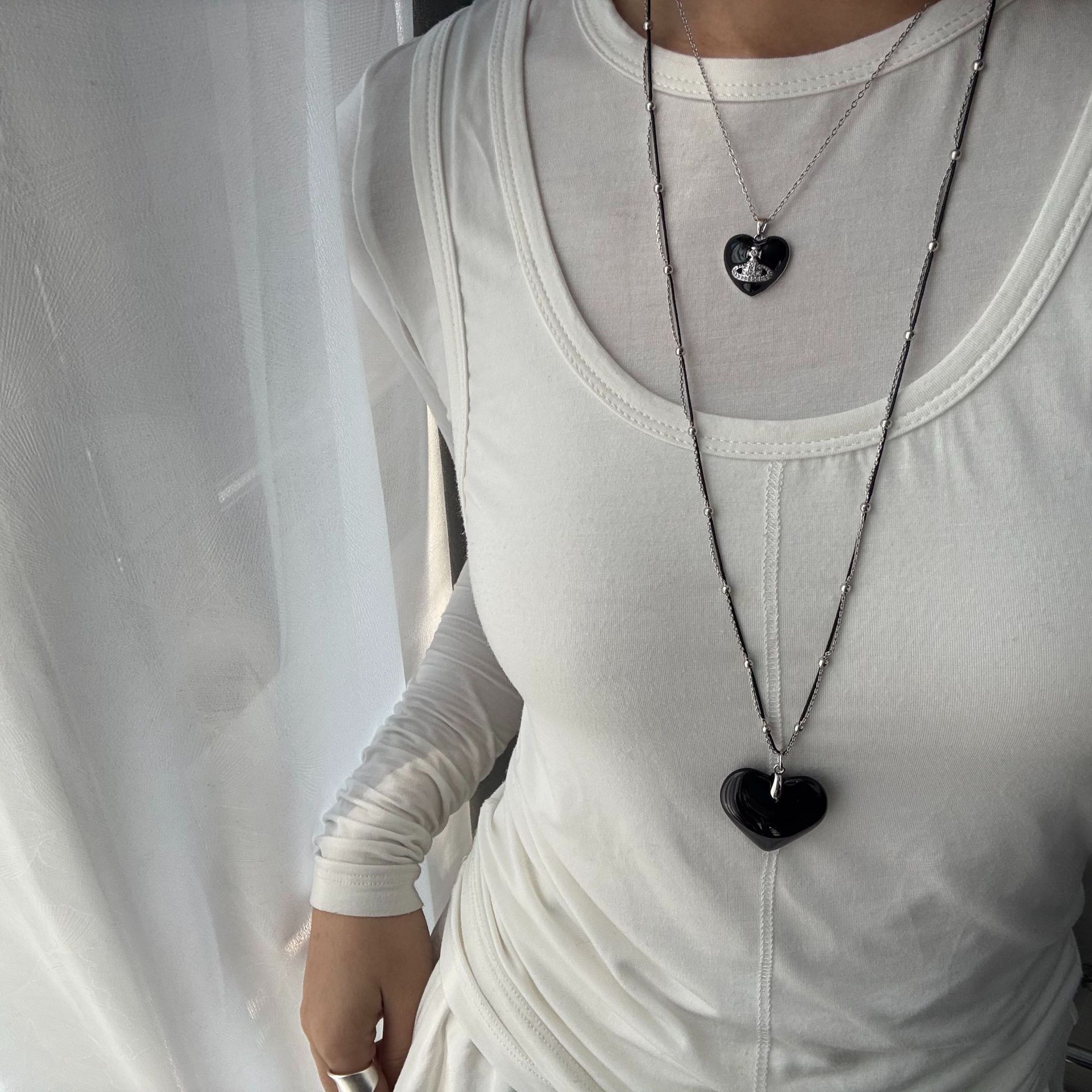 Color: Double chain + resin black heart