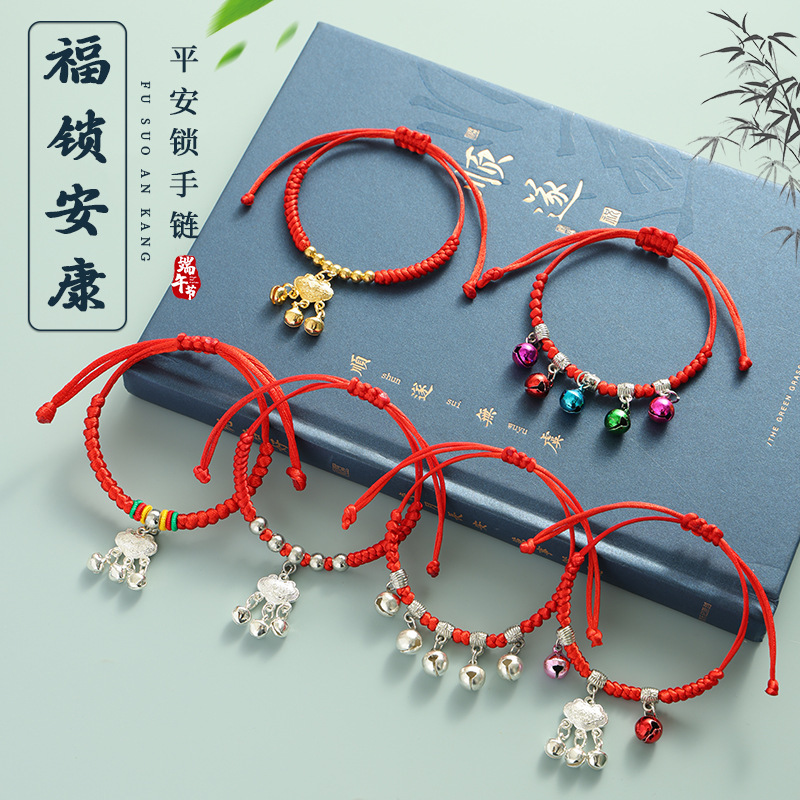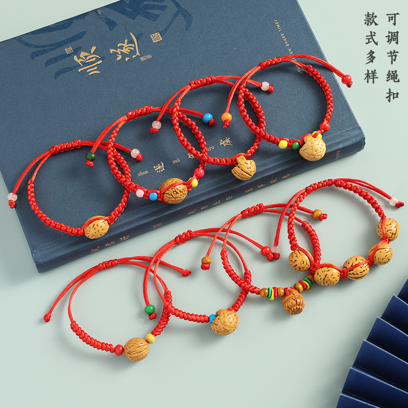 Boutique natural peach pit bracelet baby baby handmade diamond knot woven peach blue red rope children's mother and baby shop hand rope
