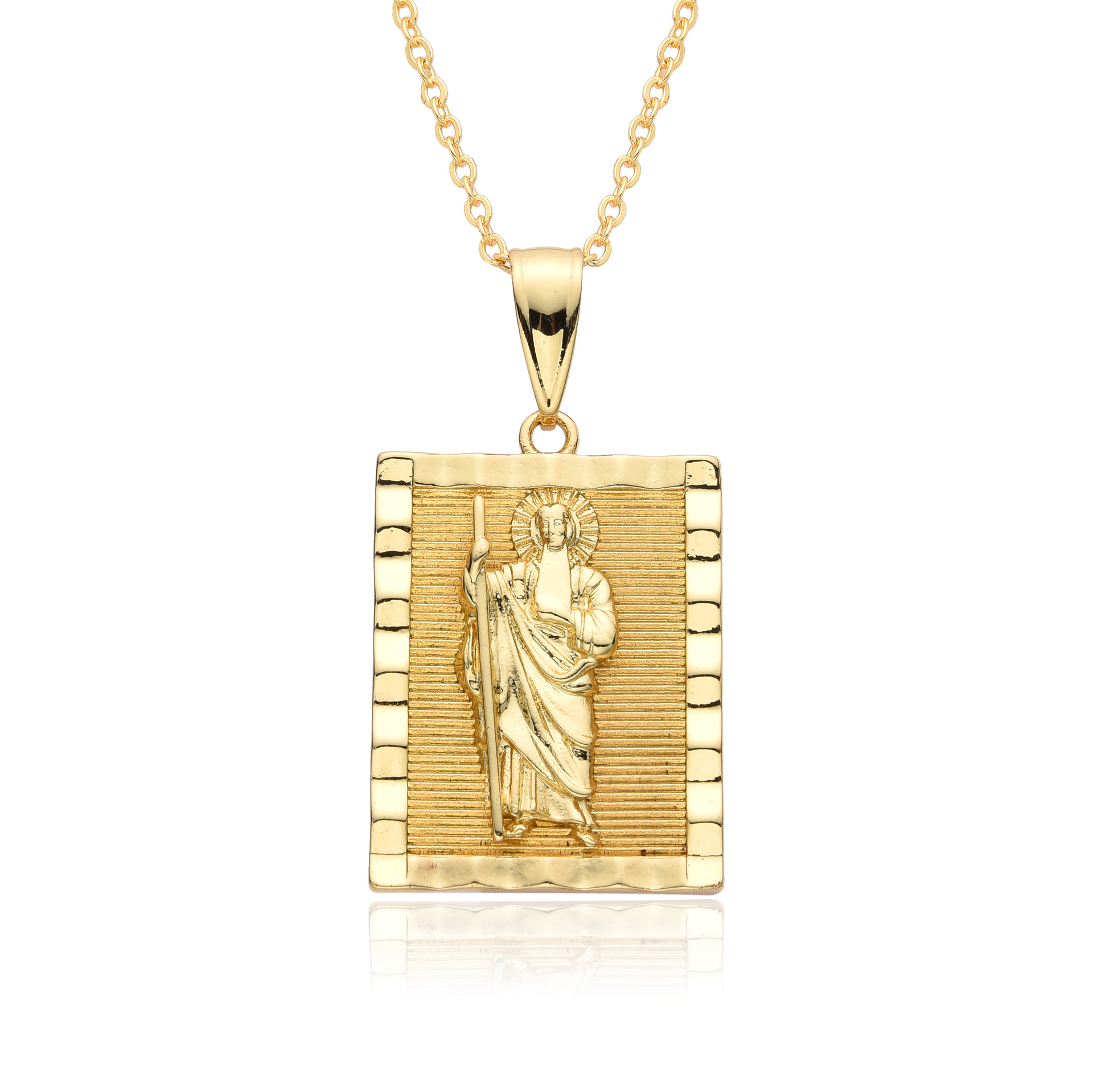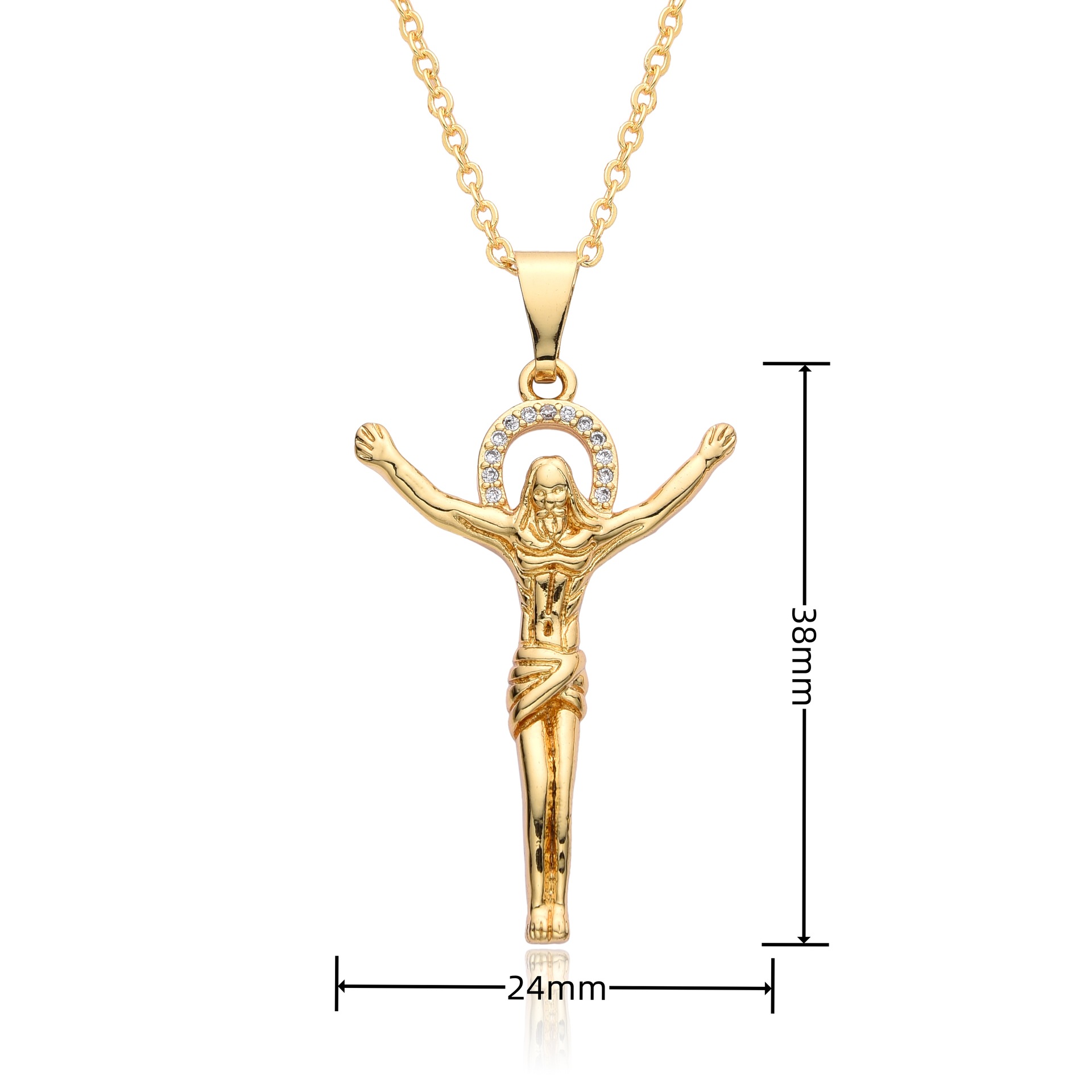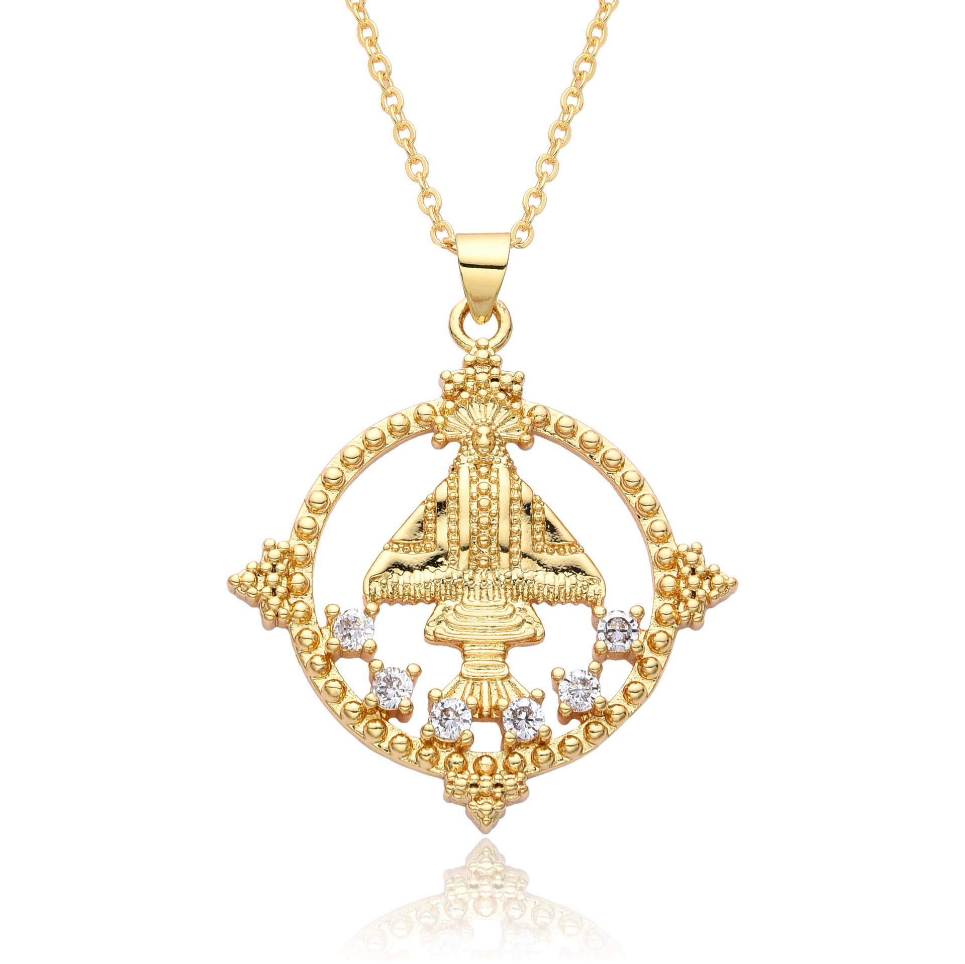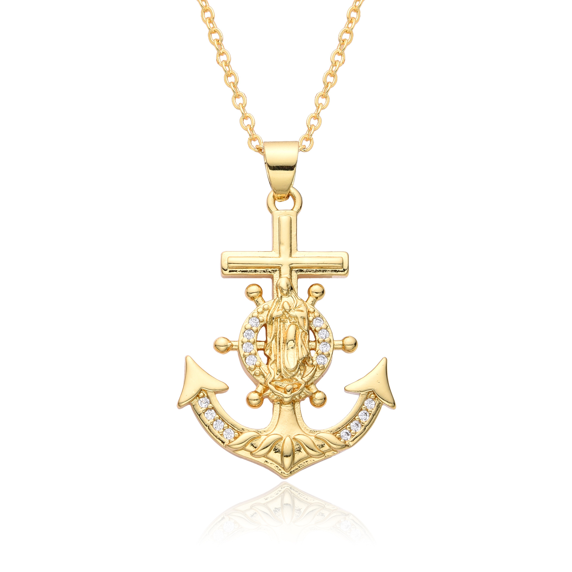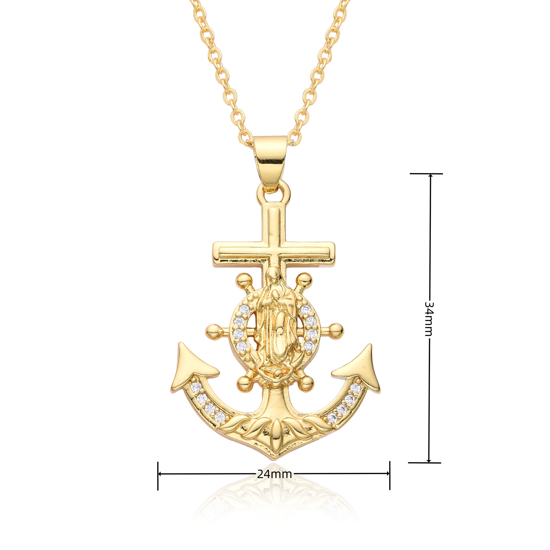 European and American Cross-Border Religious Personalized Statue Clavicle Chain Zircon Environmentally Friendly Copper Material Pendant Necklace Copper Plated 18Kc495