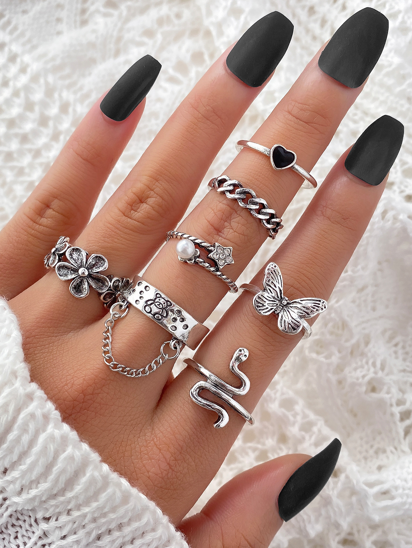 Cross-border New Arrival Diablo Ins Style Premium Ring Men's Retro Punk Bat Skull Snake Ring Accessories suit