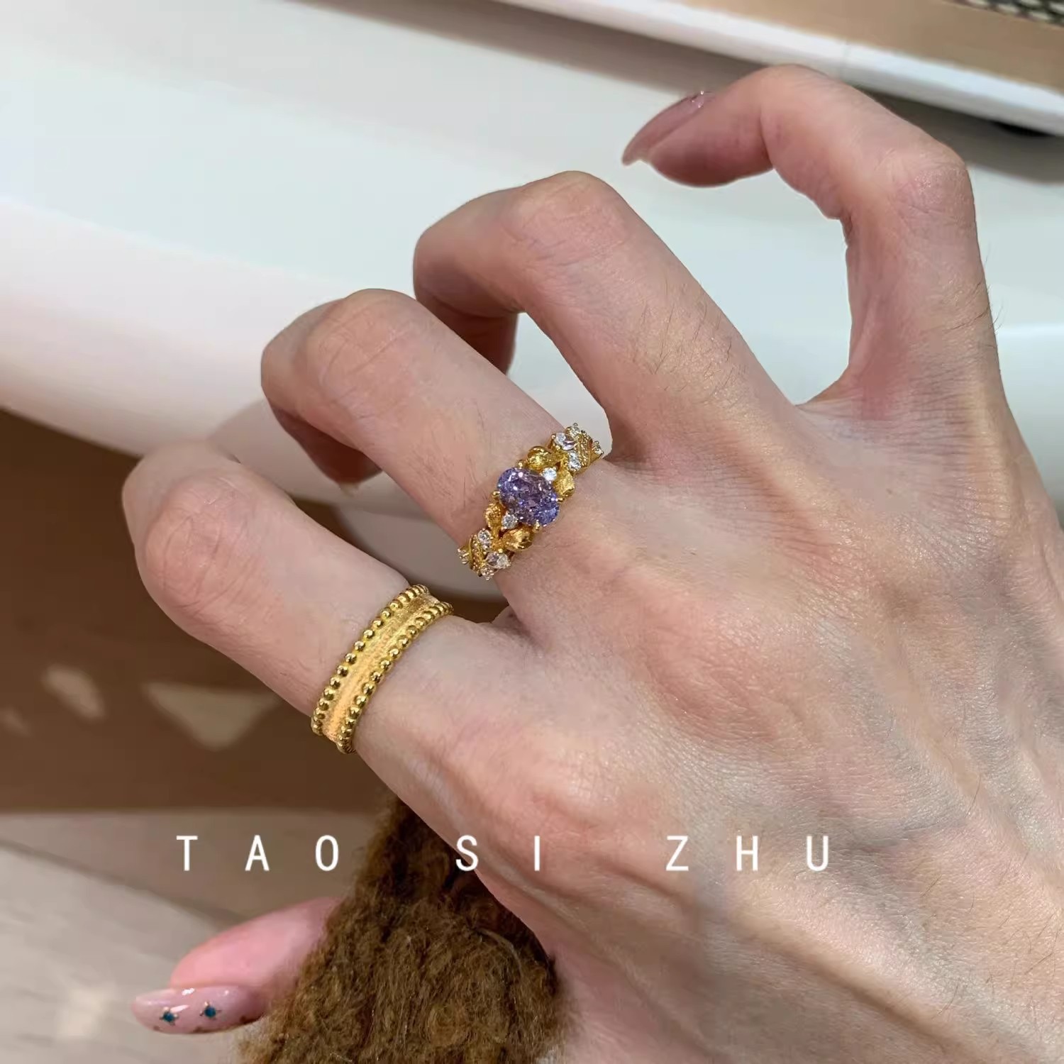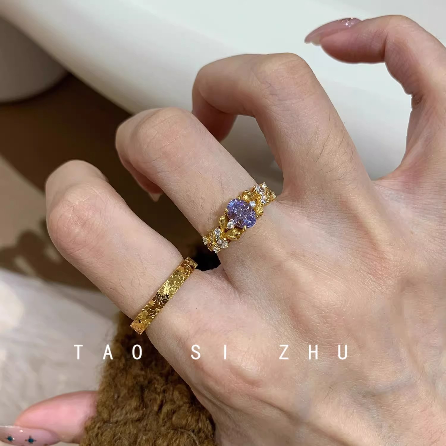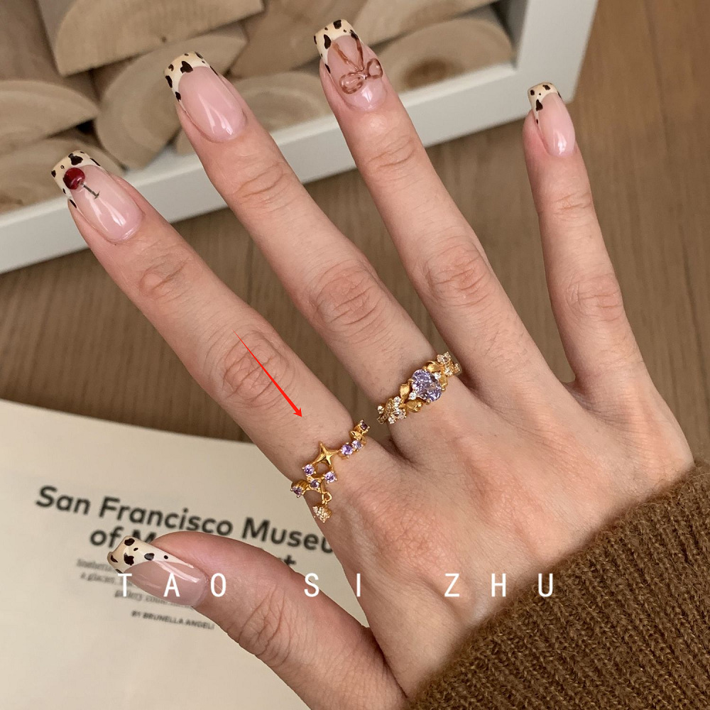 Color: Yellow gold, purple zirconium starry ring