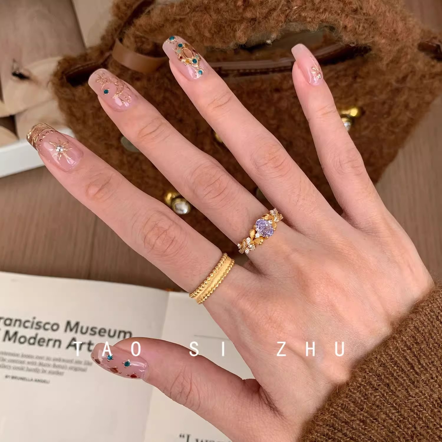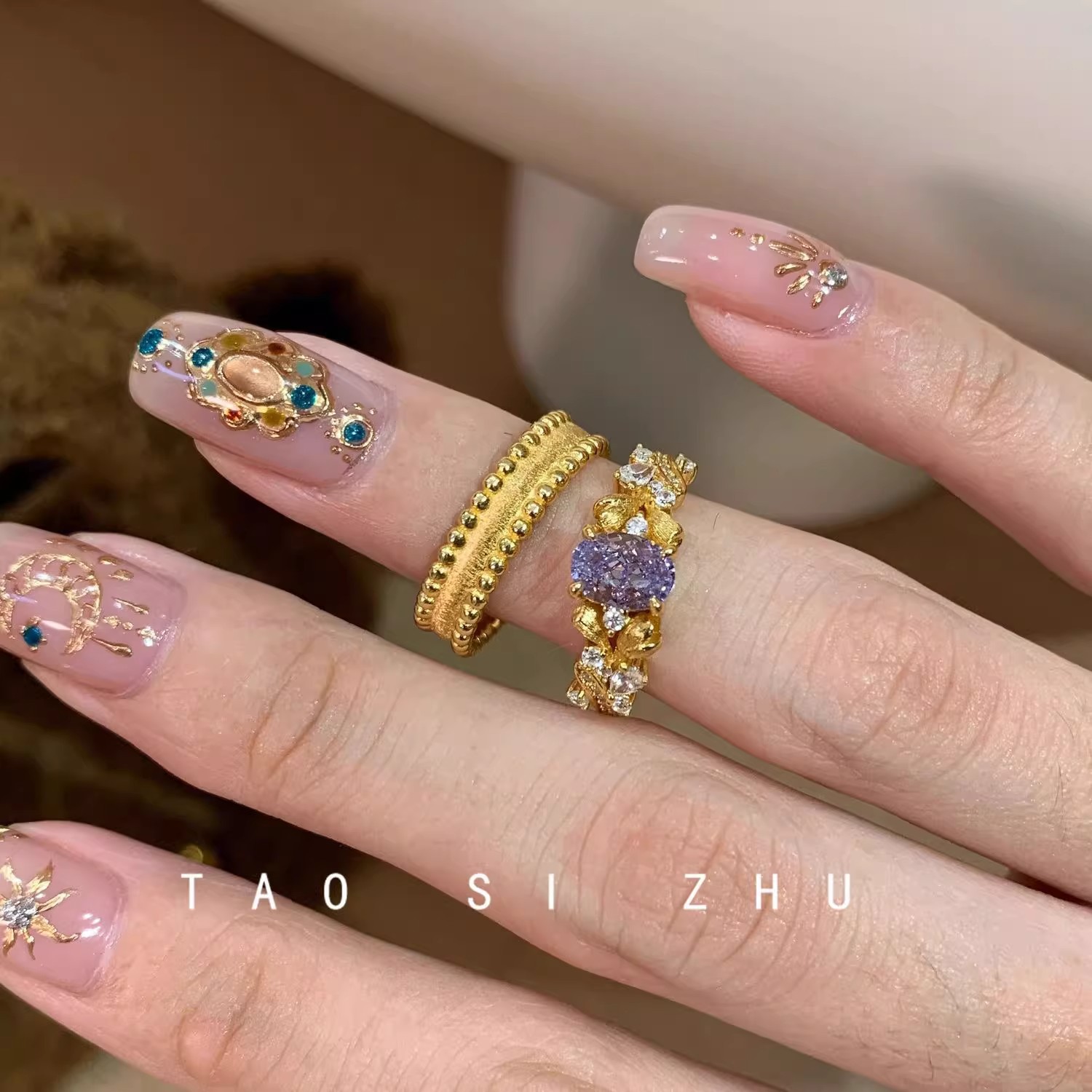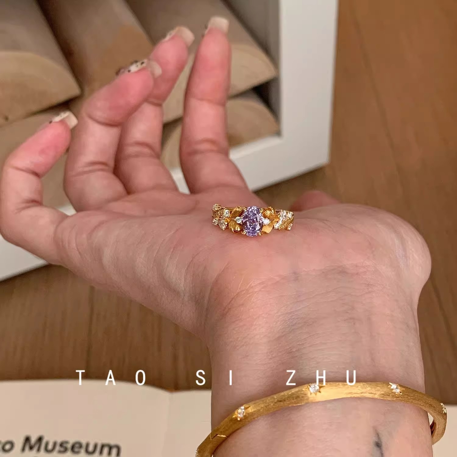 Yellow gold, purple zirconium starry ring