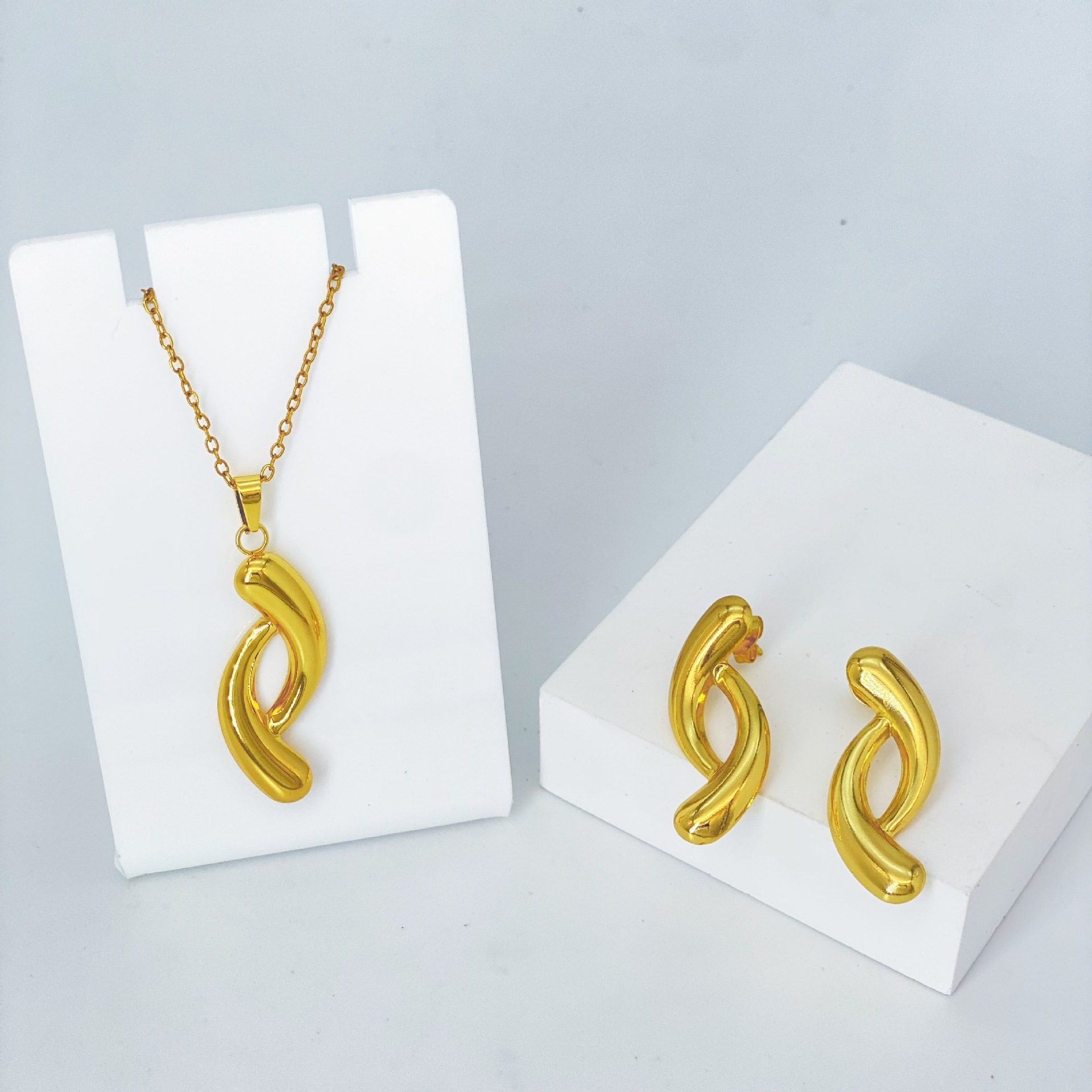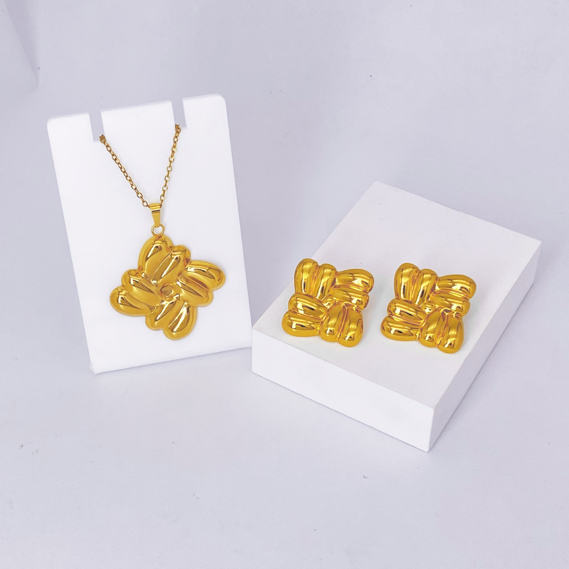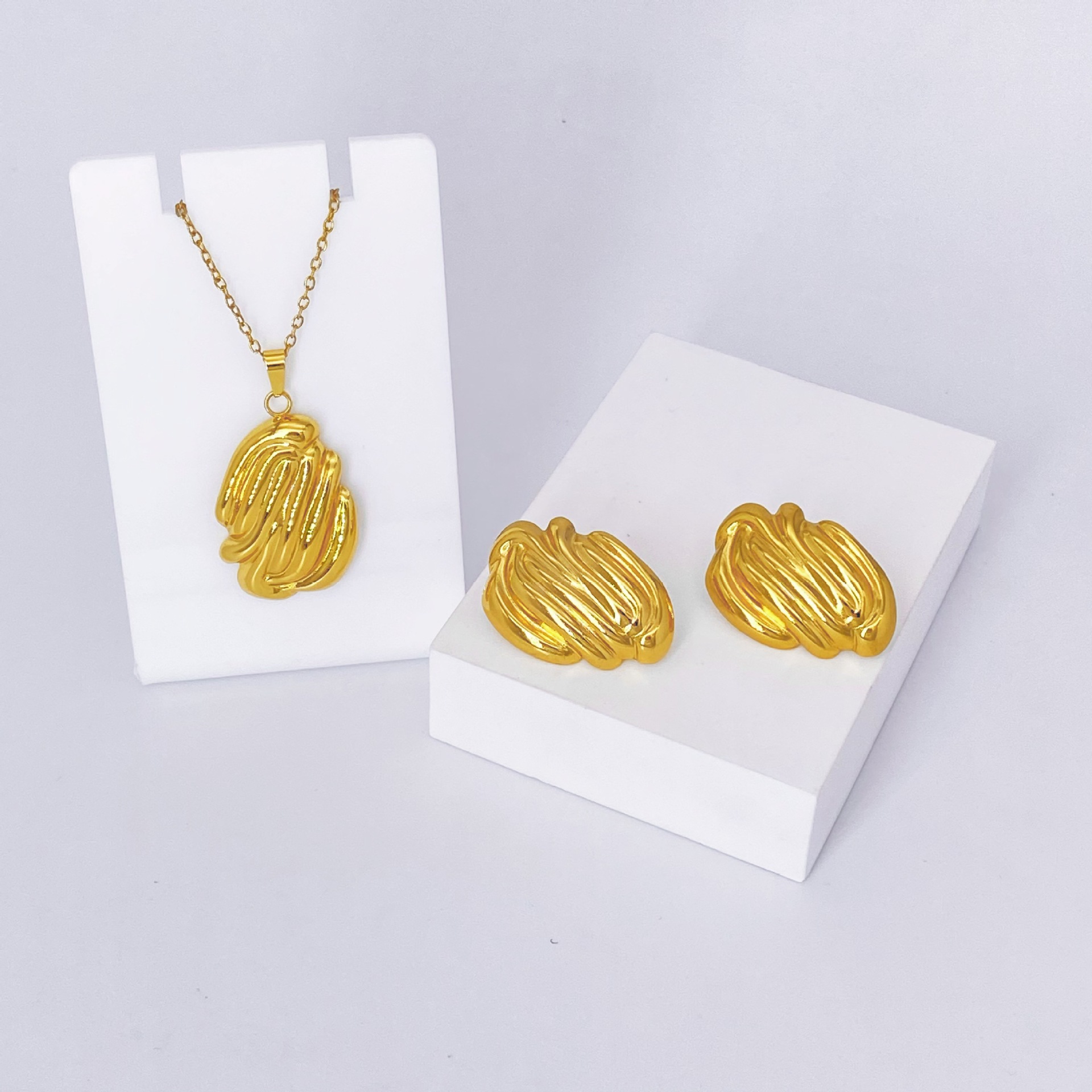 Amazon Hot Earrings Light Luxury High Sense Titanium Steel Earrings French Vintage Stainless Steel Earrings Necklace suit Women