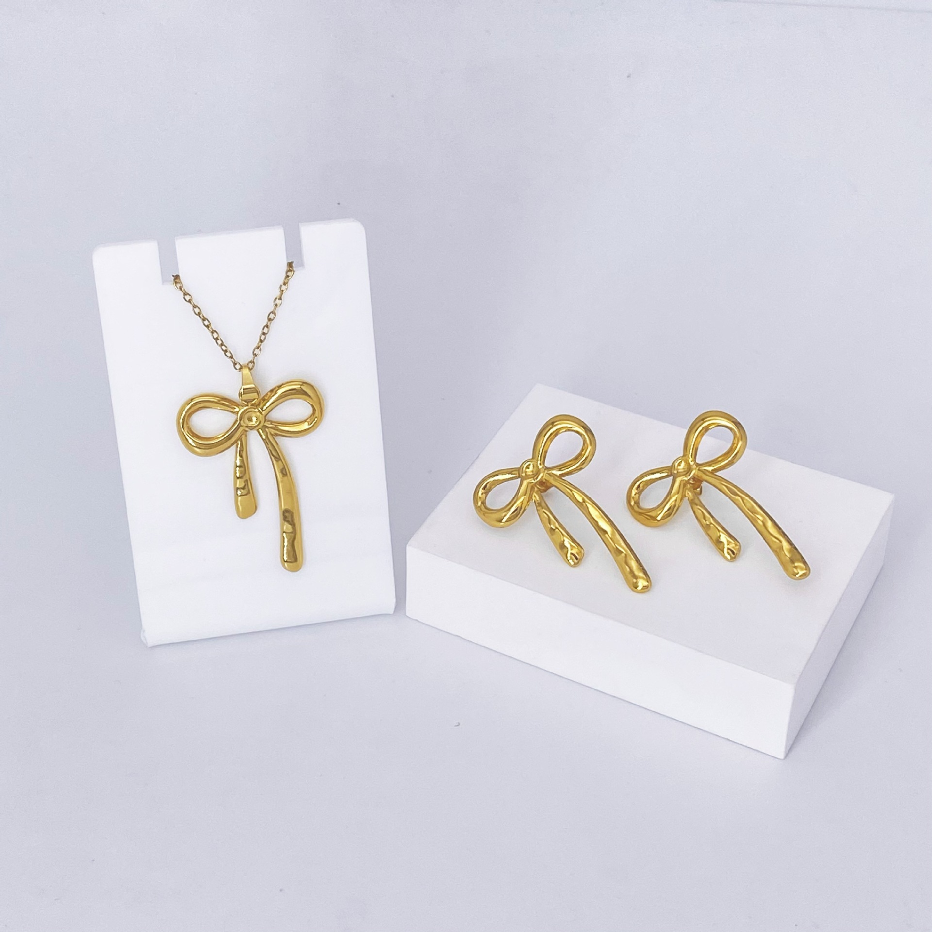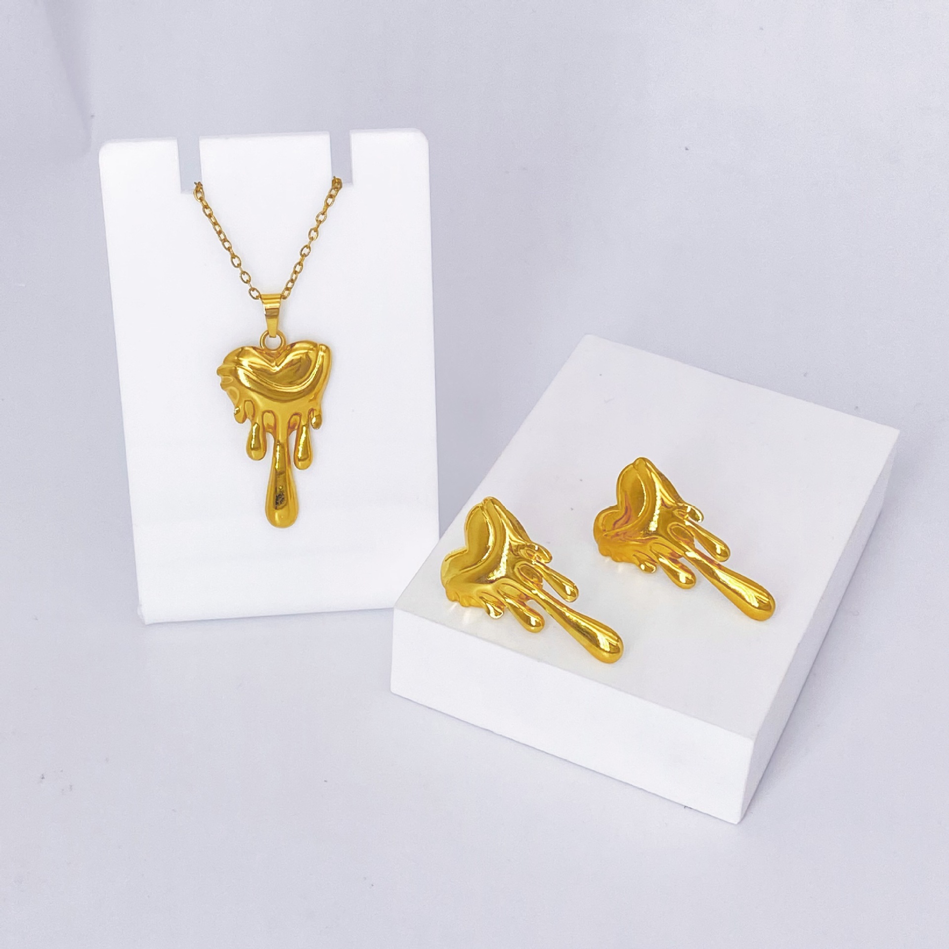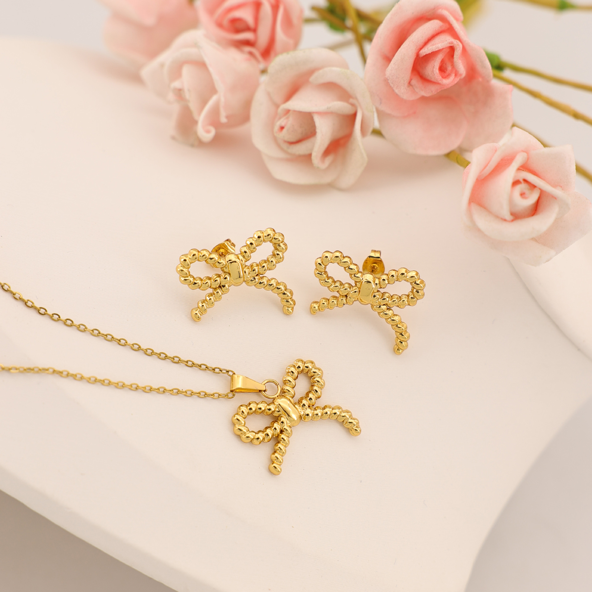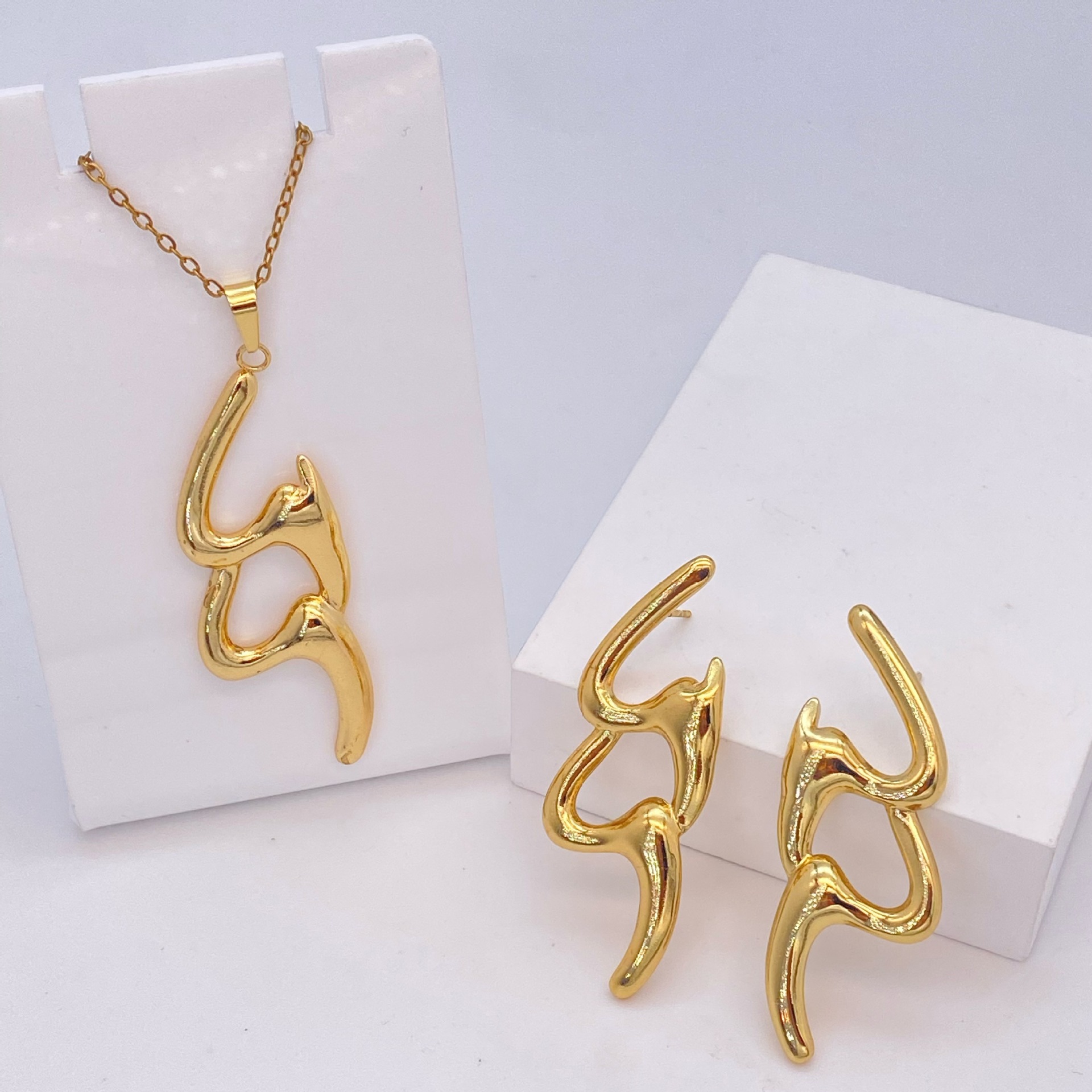 Amazon Hot Earrings Light Luxury High Sense Titanium Steel Earrings French Vintage Stainless Steel Earrings Necklace suit Women