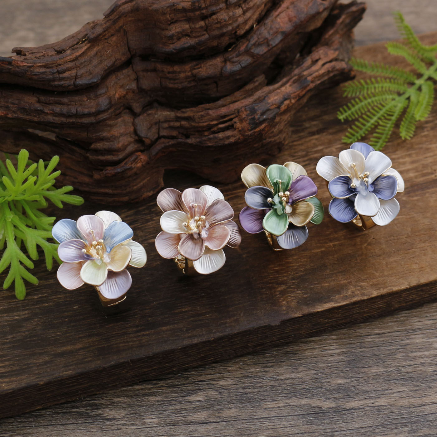 Spring color flower elastic ring-gold