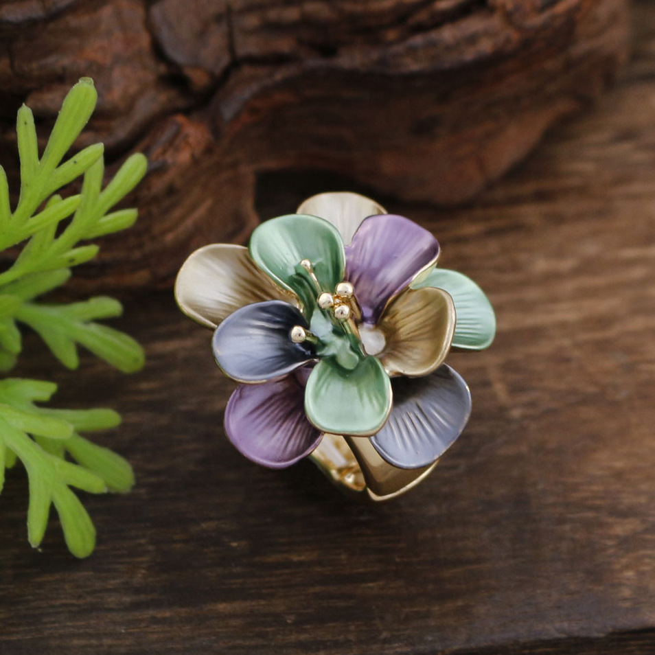 Cross-border New Enamel Geometric Flower Elastic Ring Women's Creative High-end Spring and Summer Petal Ring