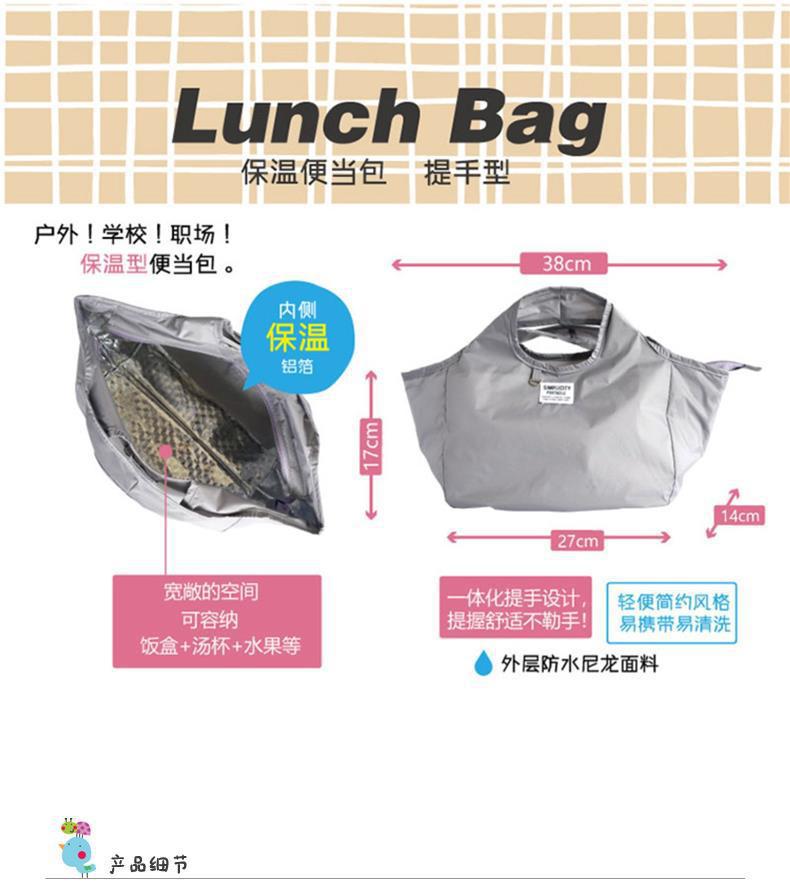 Large Capacity Insulated Lunch Box Bag Portable Lunch Bag Waterproof Aluminum Foil Hand Lunch Bag Convenient Commuter