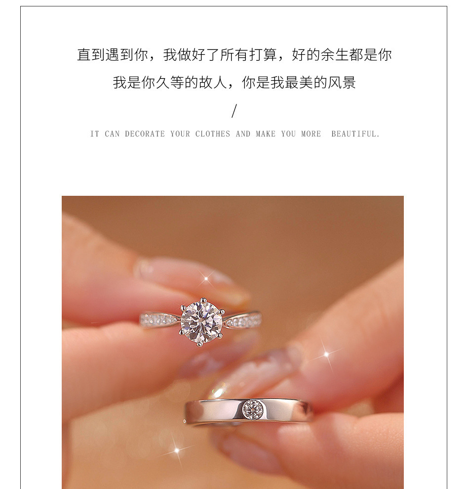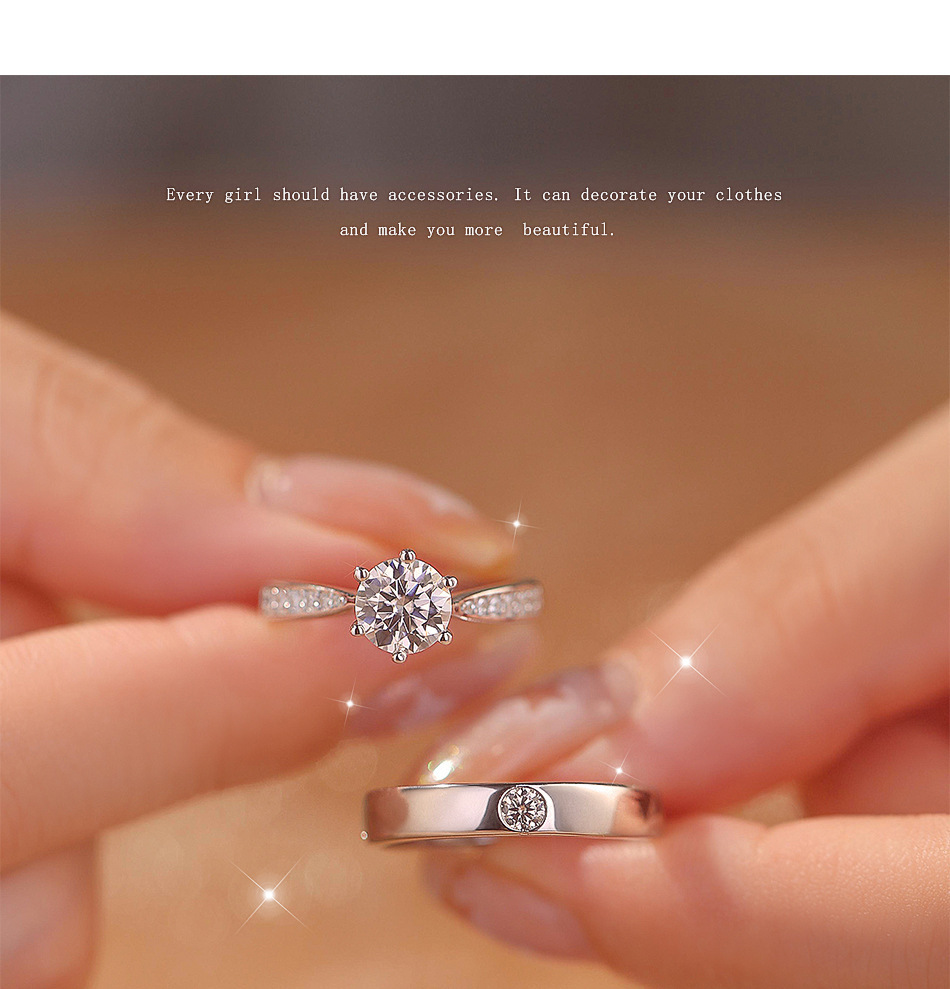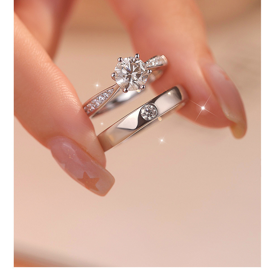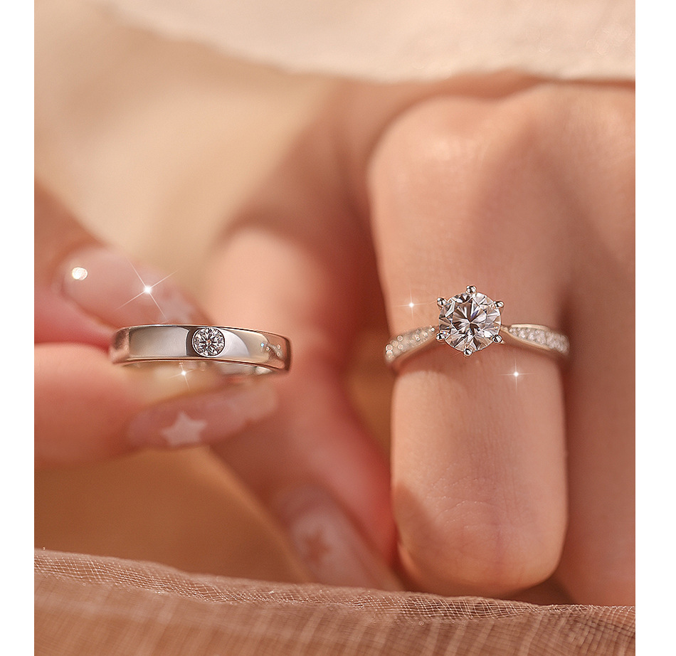 Simulated Moissanite Live Ring Couple Ring for Men and Women 1 Carat Diamond Ring Wedding Engagement Proposal Gift