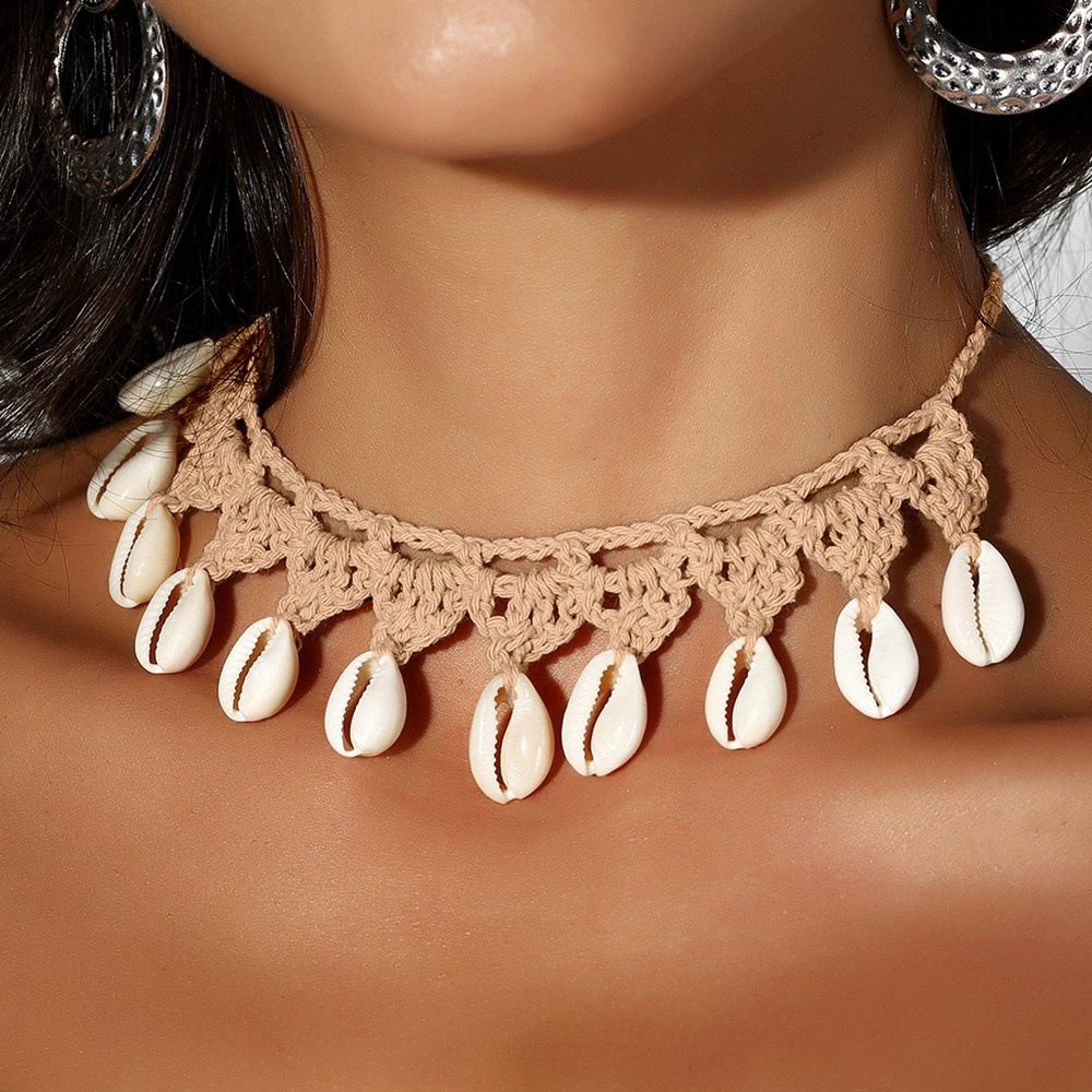 2025 Amazon Jewelry Bohemian Fashion Versatile Style Necklace Handmade Woven Shell Necklace Women