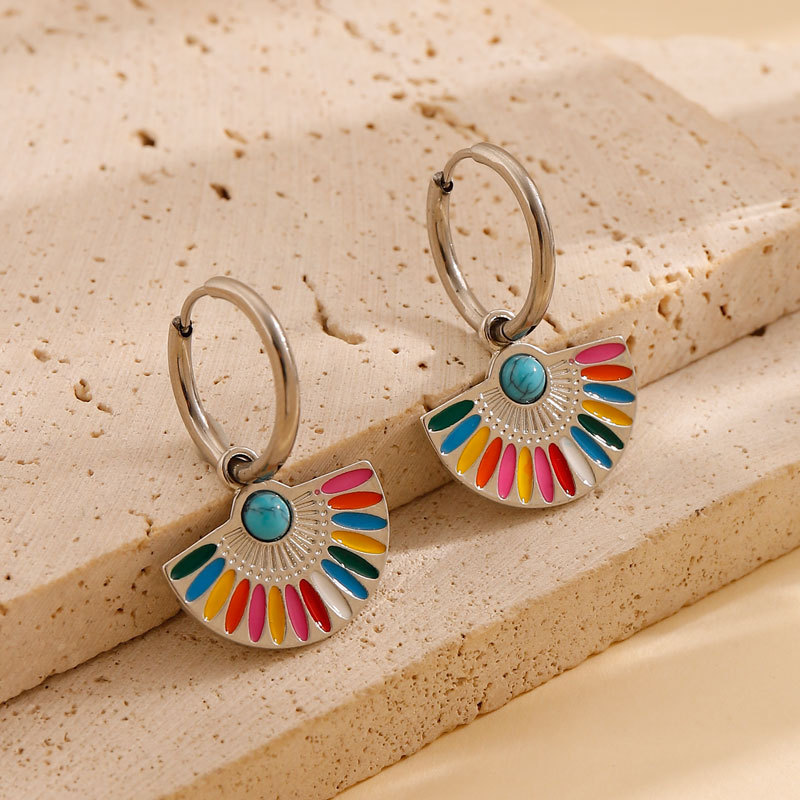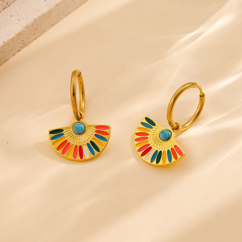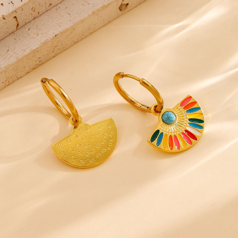 Cross-border explosions stainless steel earrings drop oil color fan circle stitching women's fashion personality retro two earrings