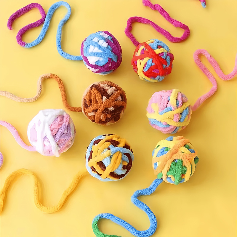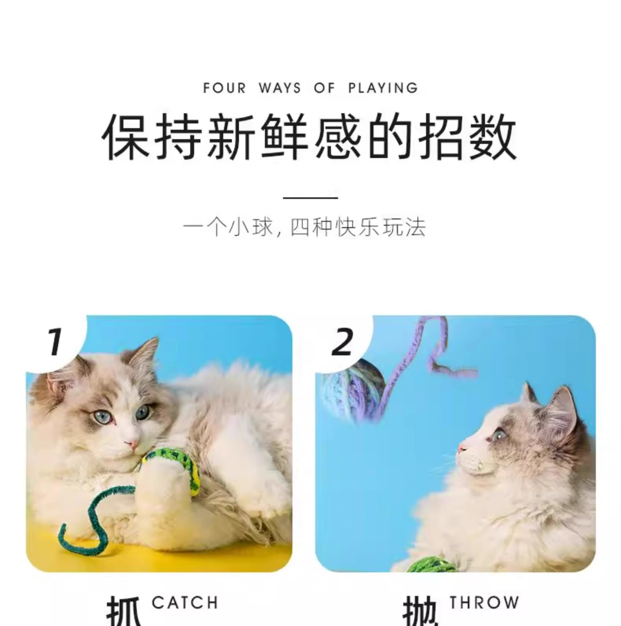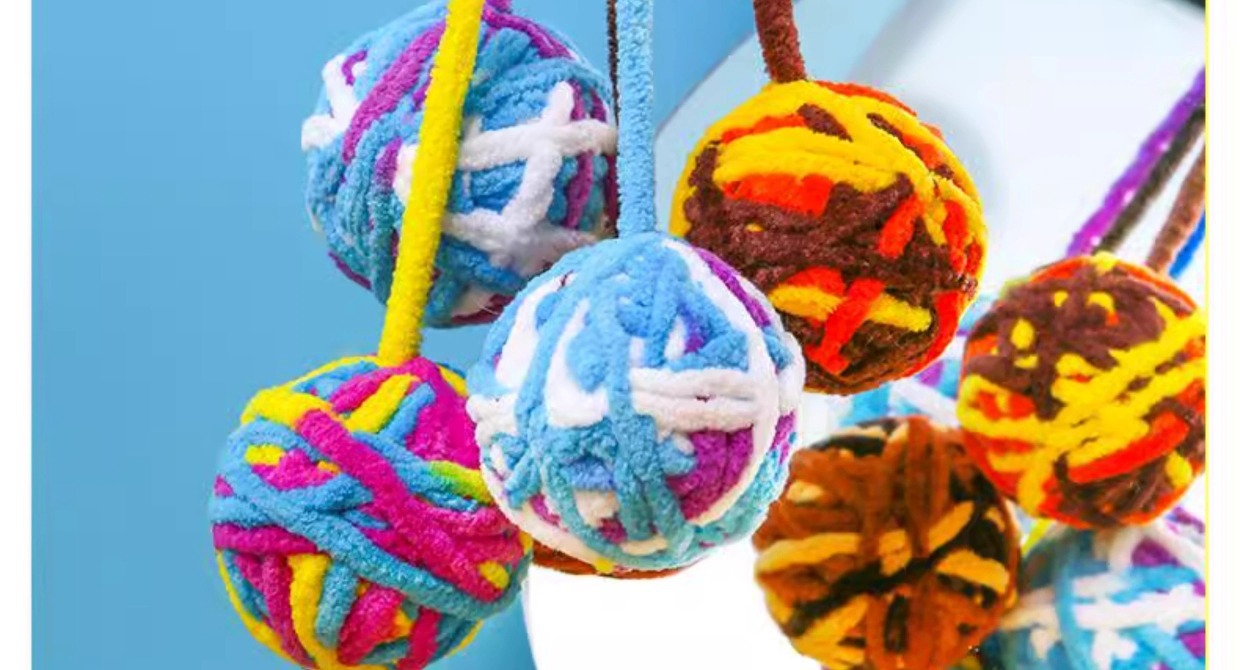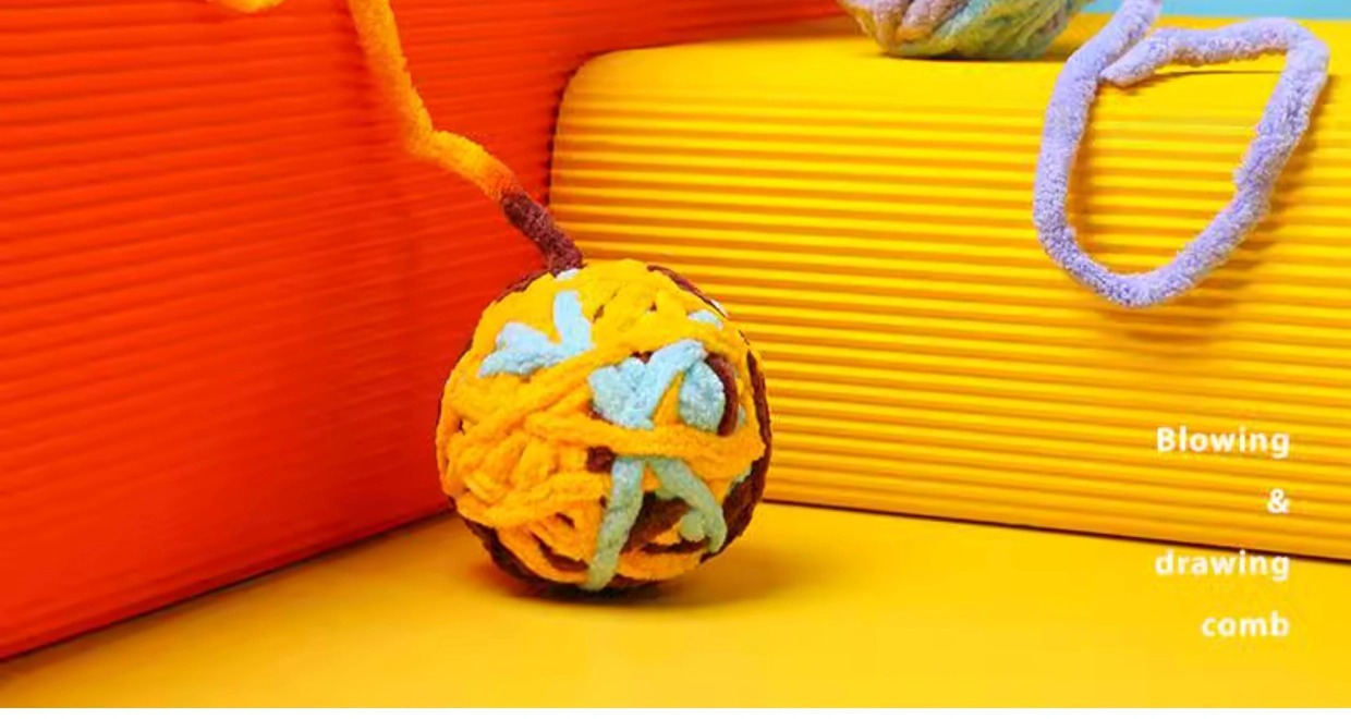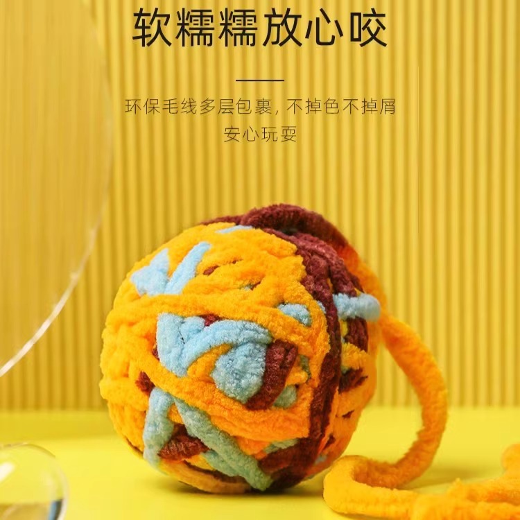 Cat Toy Wool Rainbow Ball with Tail to Amuse Cats Pet Toy Wool Ball Containing Rattling Beads and Bell