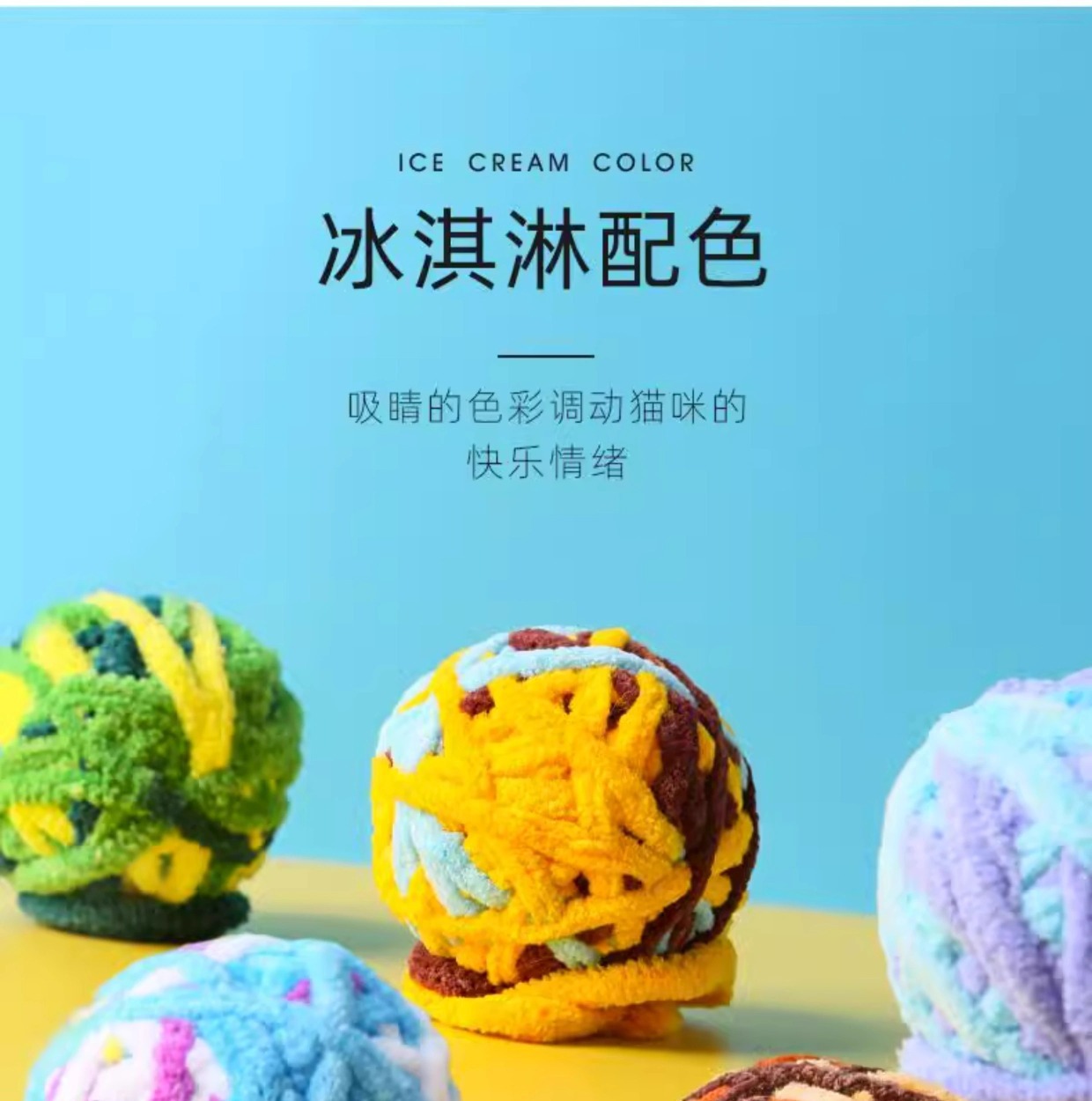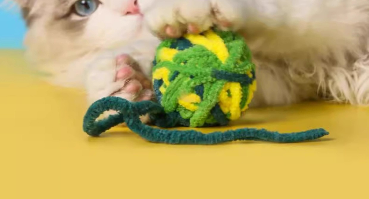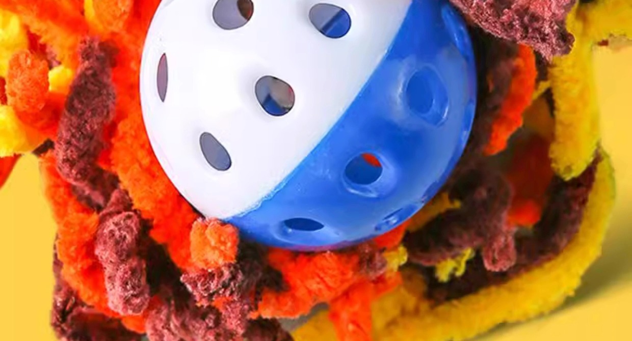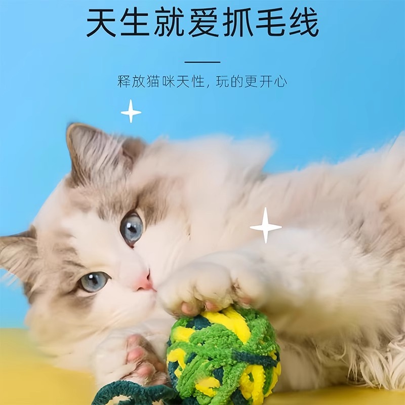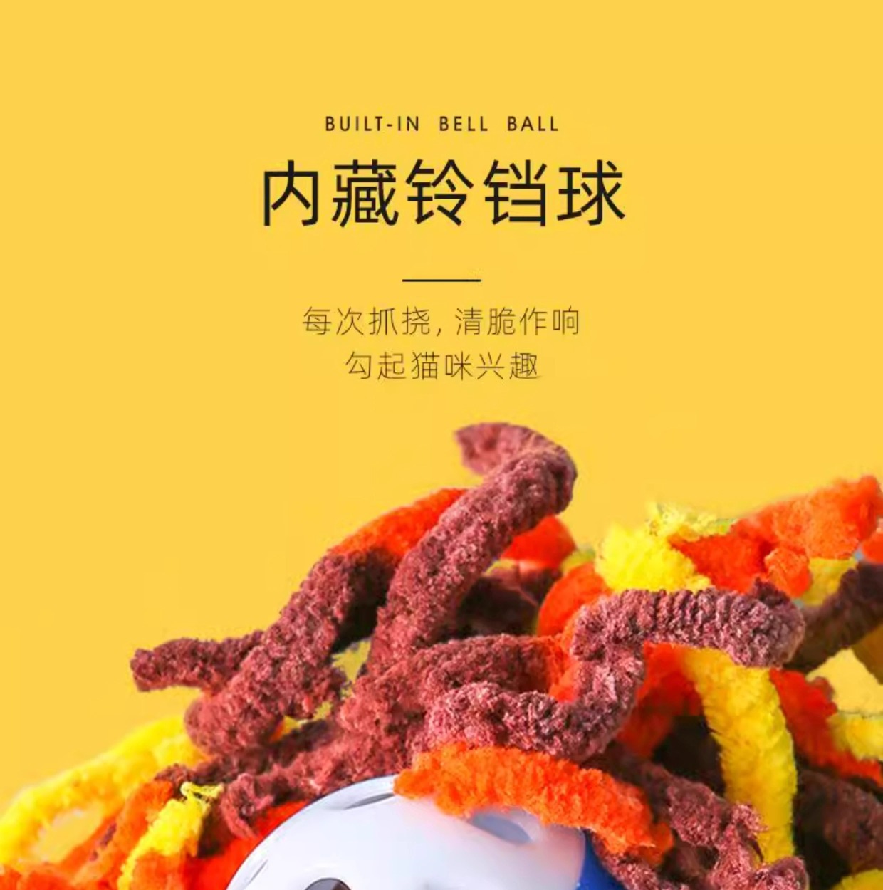 Cat Toy Wool Rainbow Ball with Tail to Amuse Cats Pet Toy Wool Ball Containing Rattling Beads and Bell