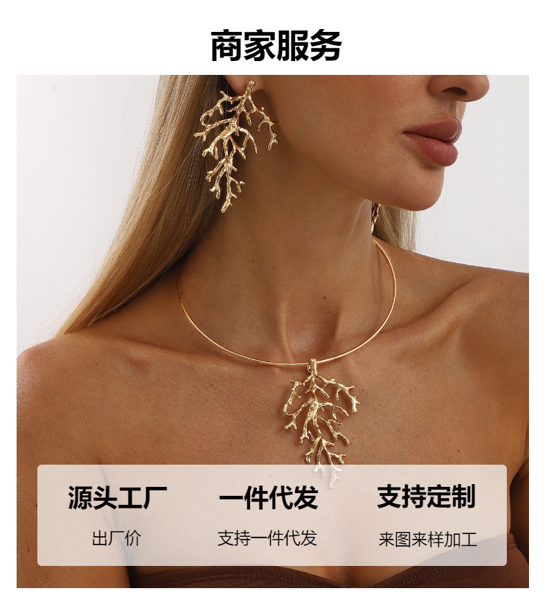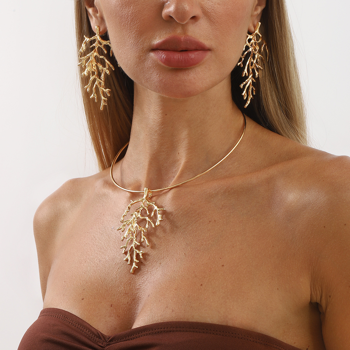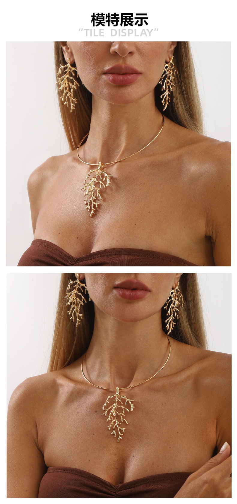 N12585 European and American Personalized Ocean Style Coral Shape Collar Za Fashion Exaggerated Alloy Pendant Earrings Necklace