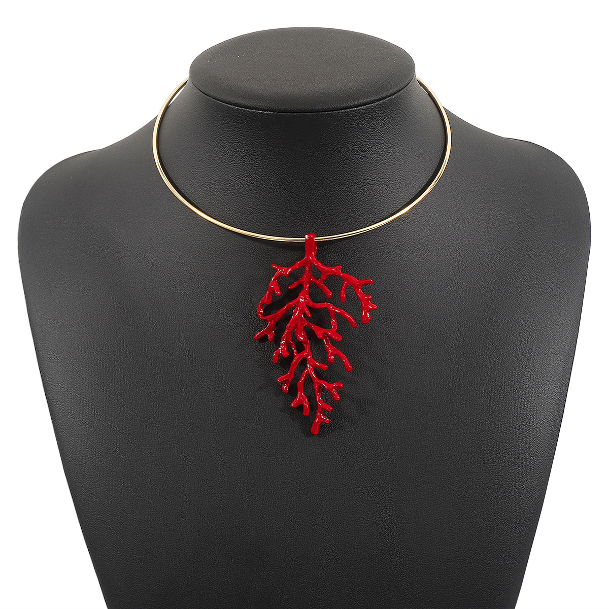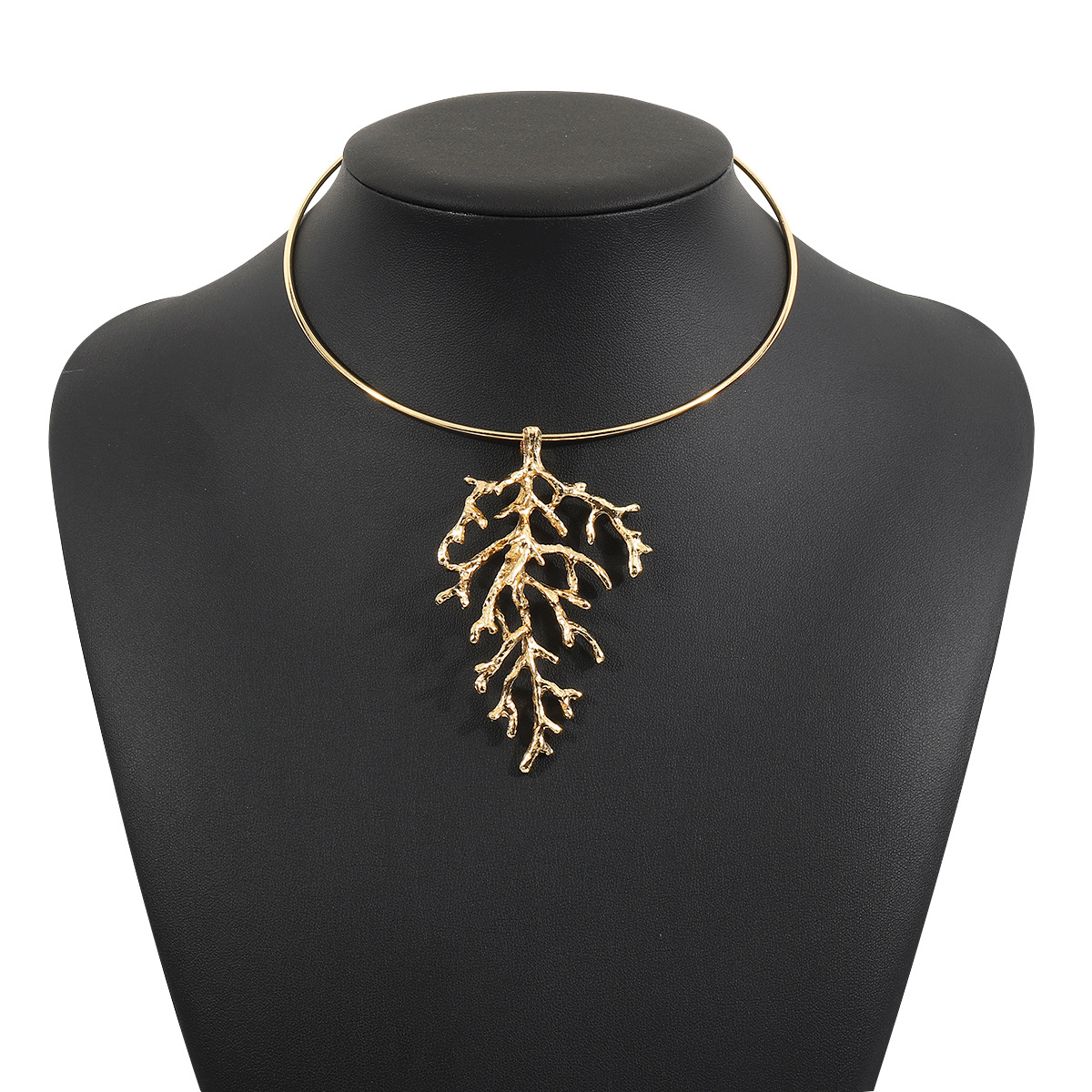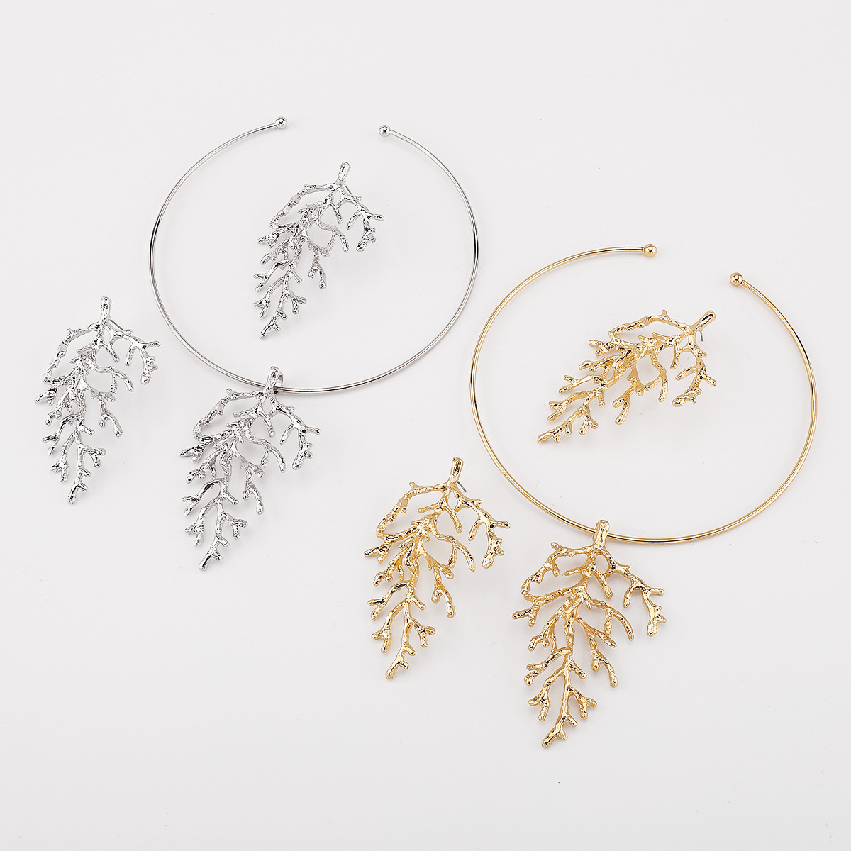 N12585 European and American Personalized Ocean Style Coral Shape Collar Za Fashion Exaggerated Alloy Pendant Earrings Necklace