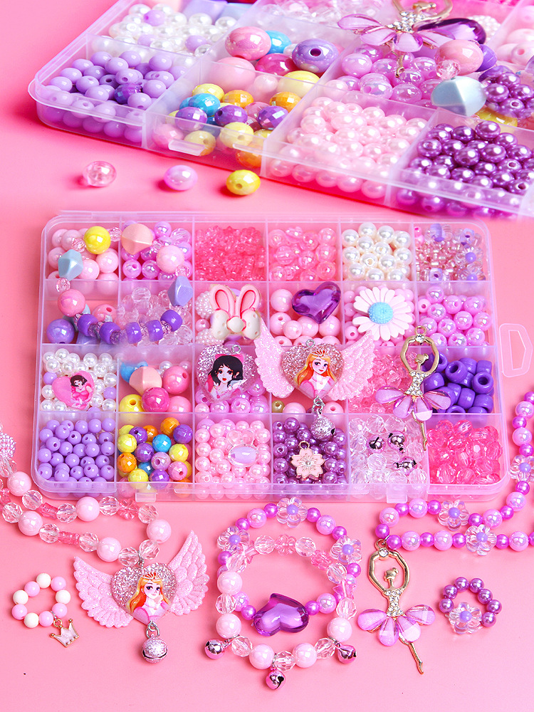 Children's Handmade Beaded Educational Toys Girls Hand-Wearing Bead Necklace Bracelet Family DIY Jewelry Birthday Gift
