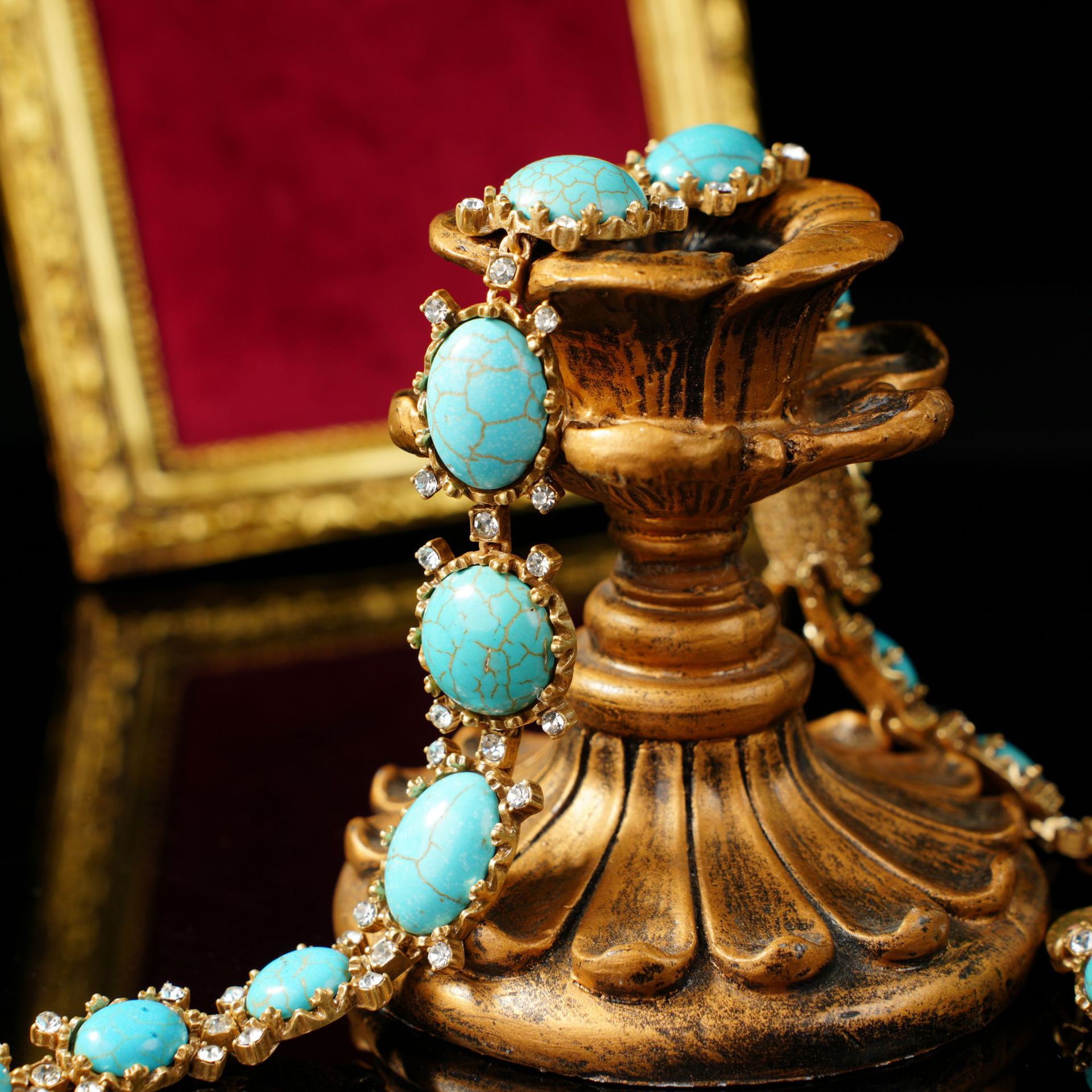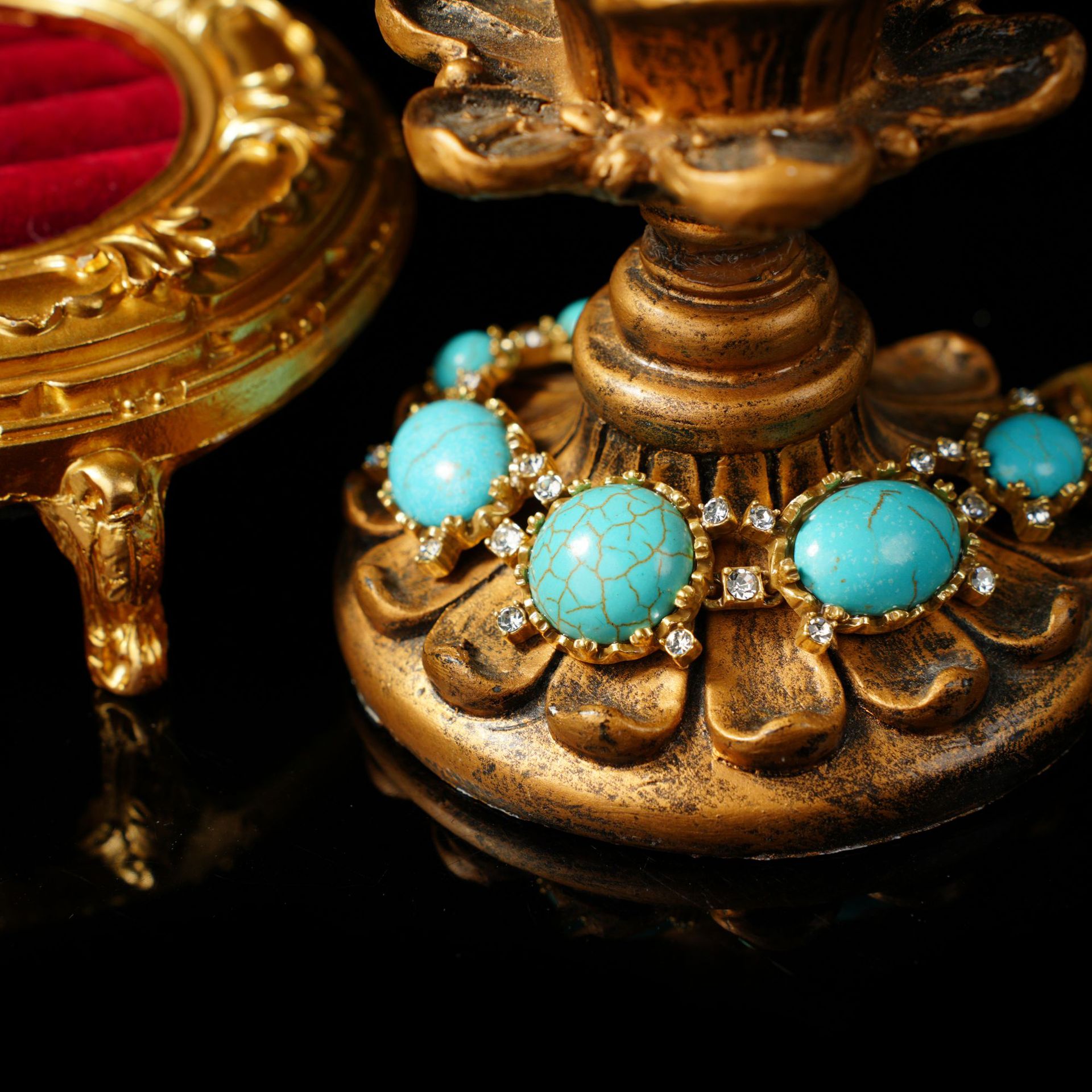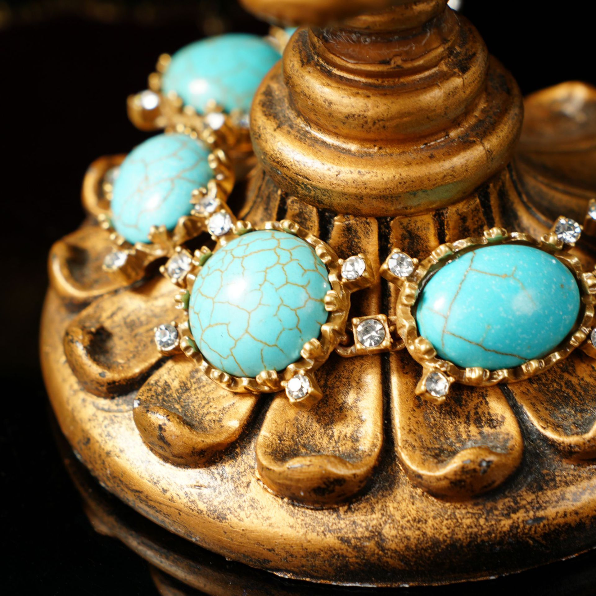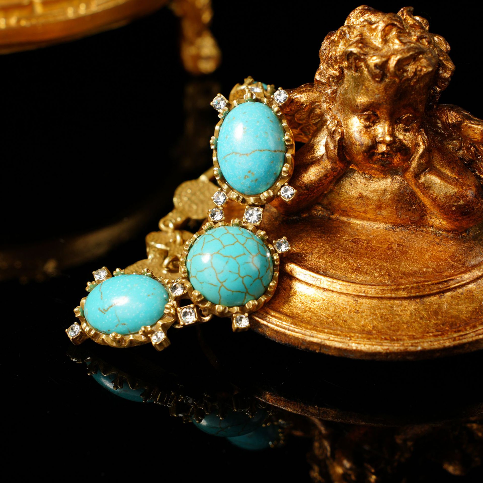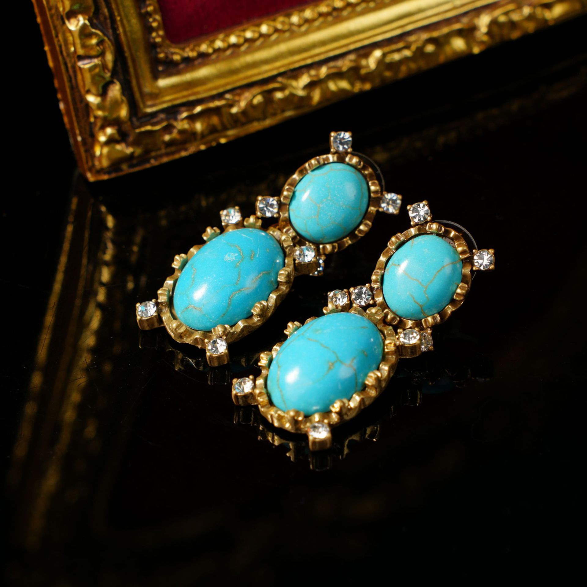 Vintage Retro Fashion Light Luxury Elegant Style Personalized Design Wholesale Qingdao Factory Inlaid Diamond Green Turquoise Stud Earrings
