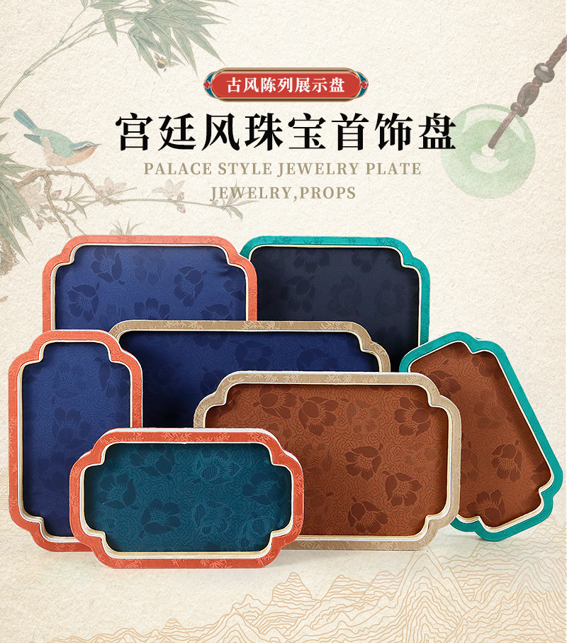 Color: Small new chinese style tray (red outside and navy blue inside)