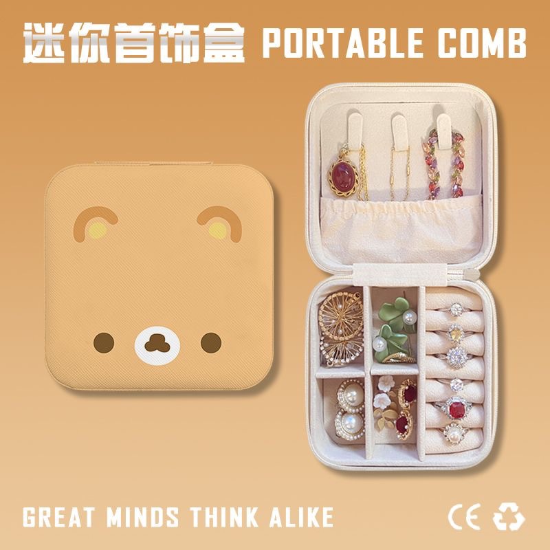 Cute Bear Portable Earrings, Earrings, Jewelry Box, Necklace, Ring, Bracelet, Compact Mini Hand Jewelry Storage Box