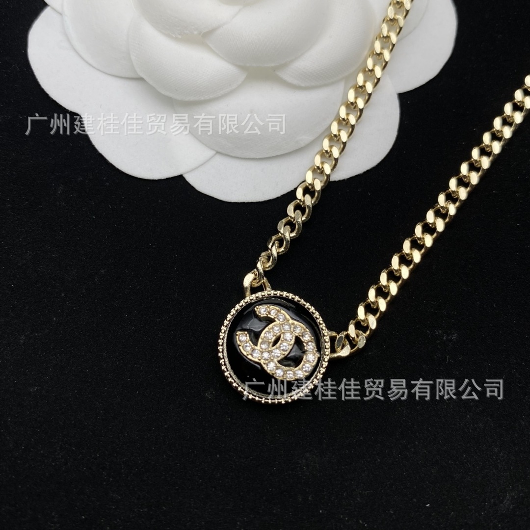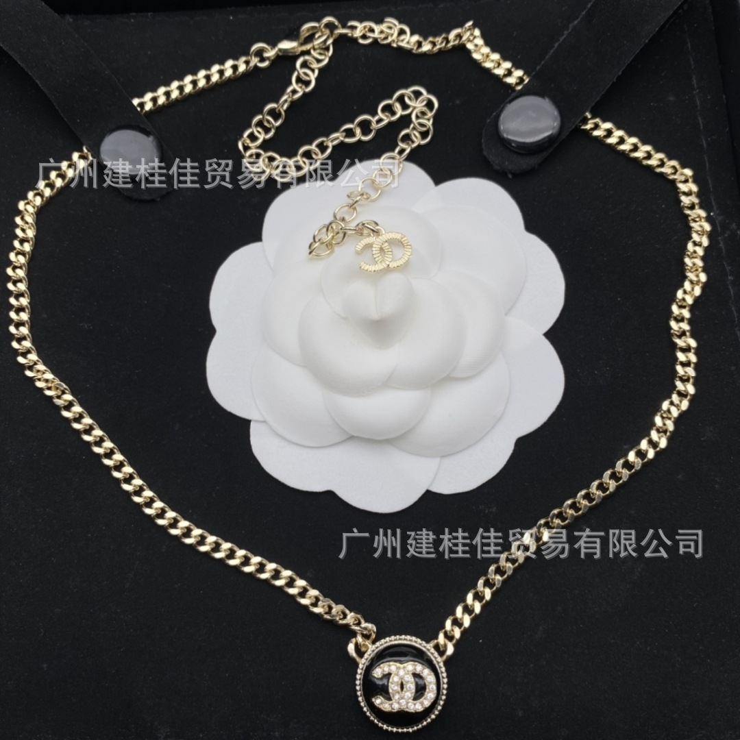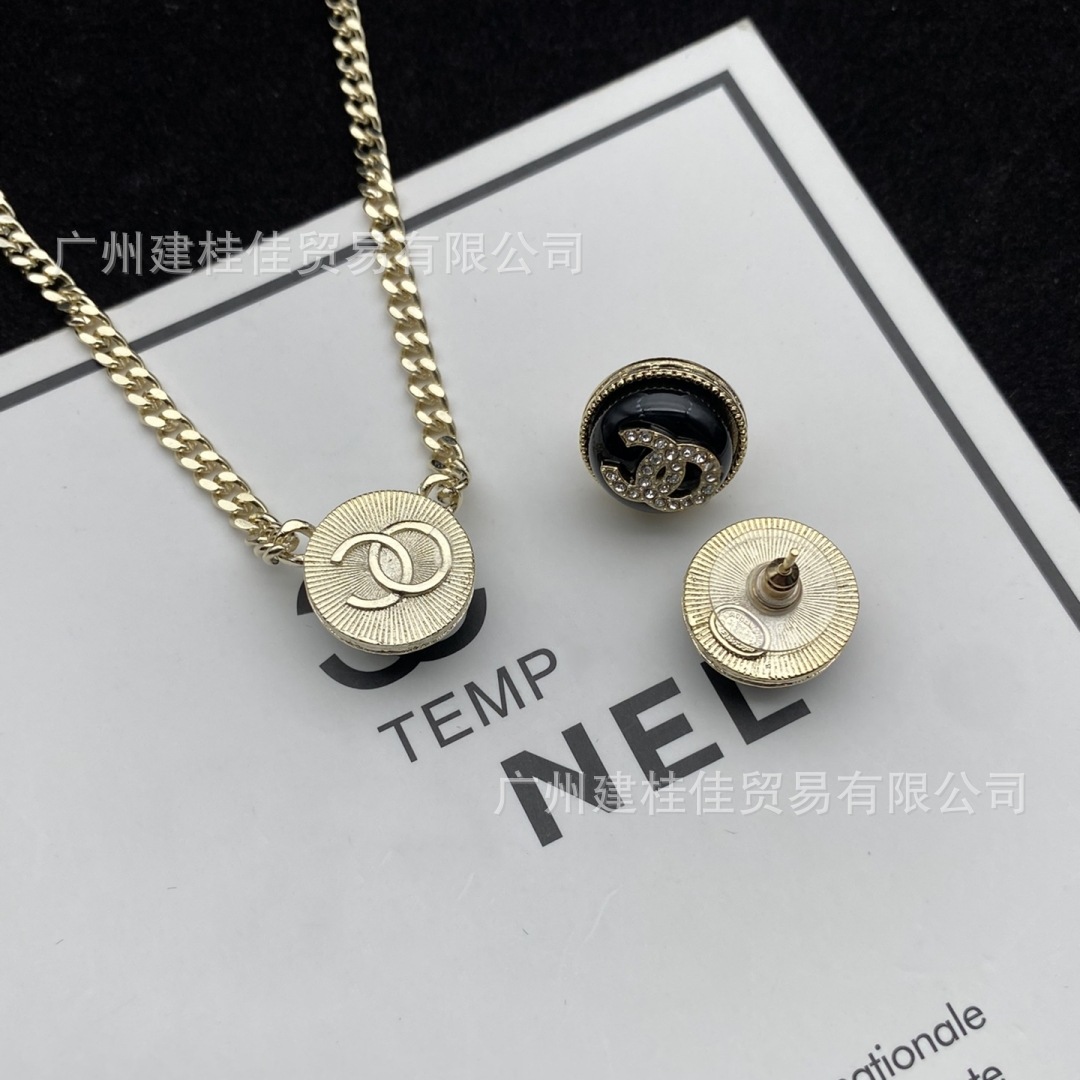 Shipai Xiangjia high quality Double C Round Black Button suit Necklace Women's Small Fragrant Style Earrings Women's Factory Outlet