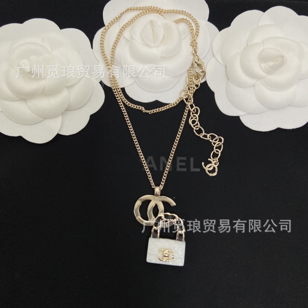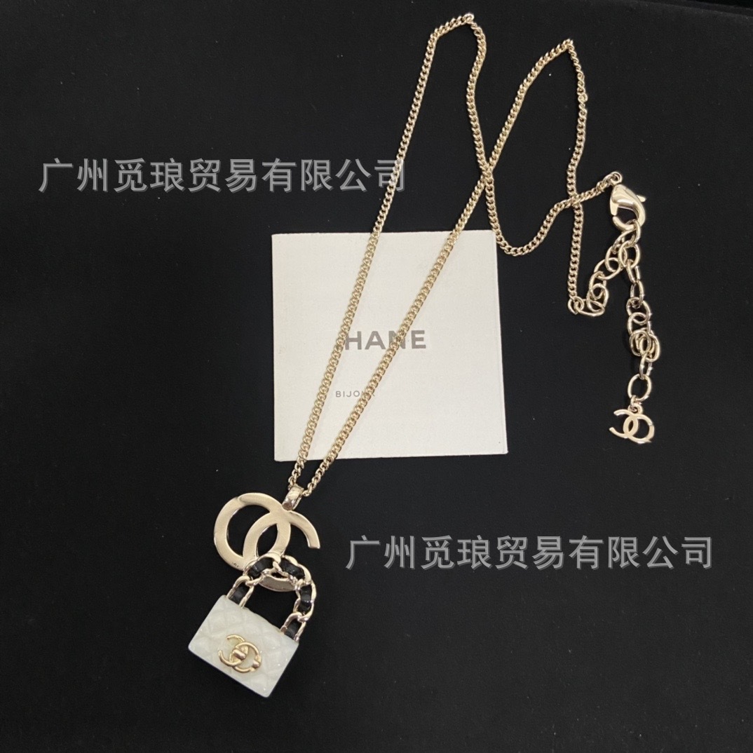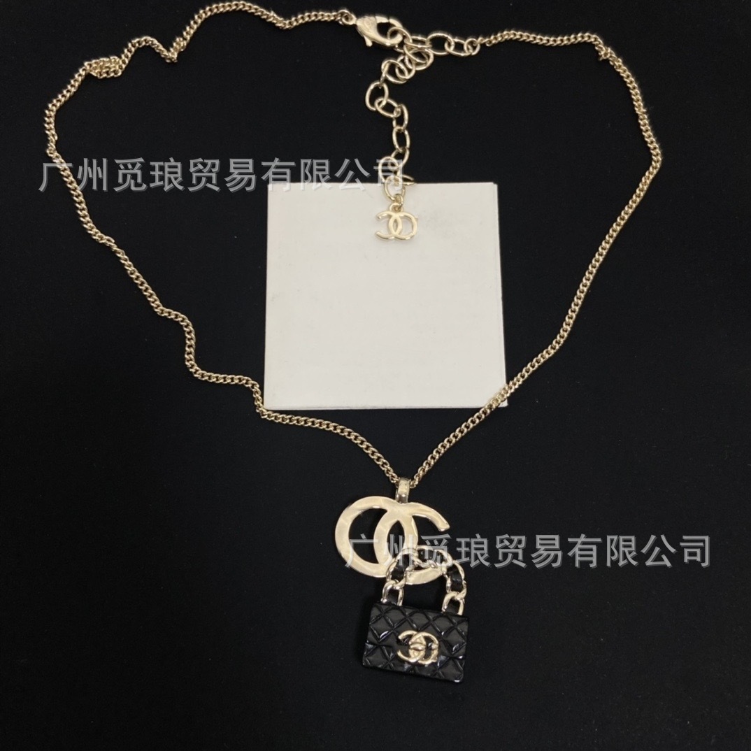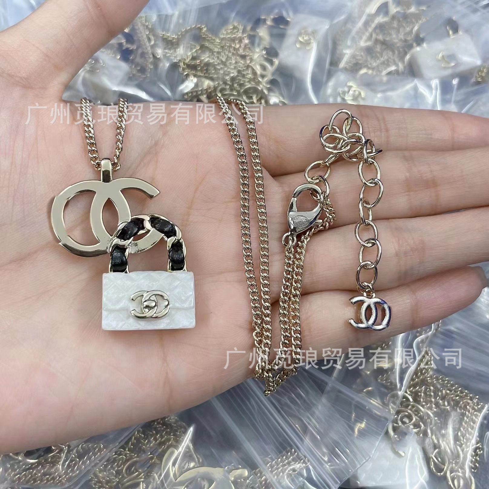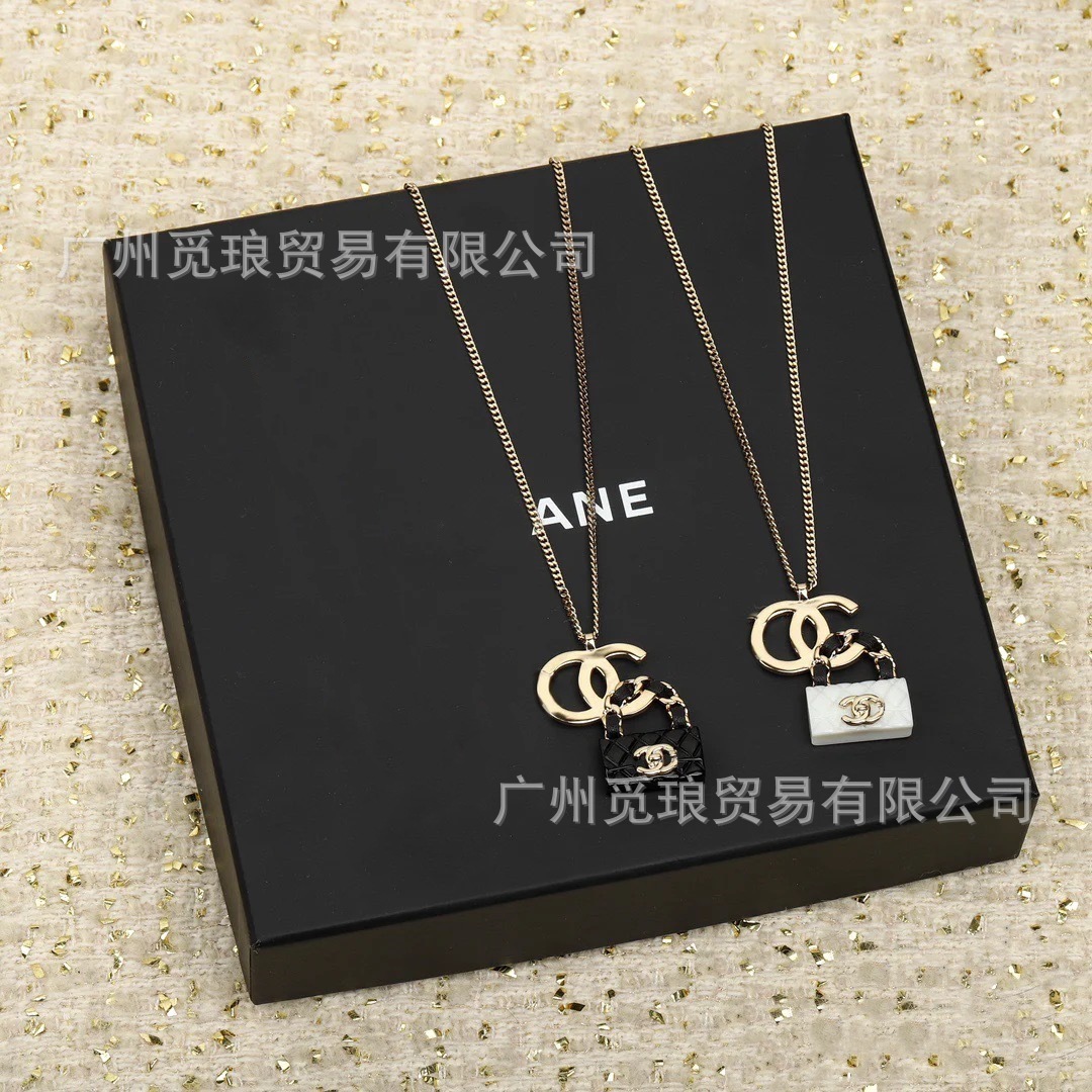 Authentic Real-Shot Chanel-Inspired Double-Layer Bag Necklace for Women, Black and White Quilted Collarbone Chain Wholesale