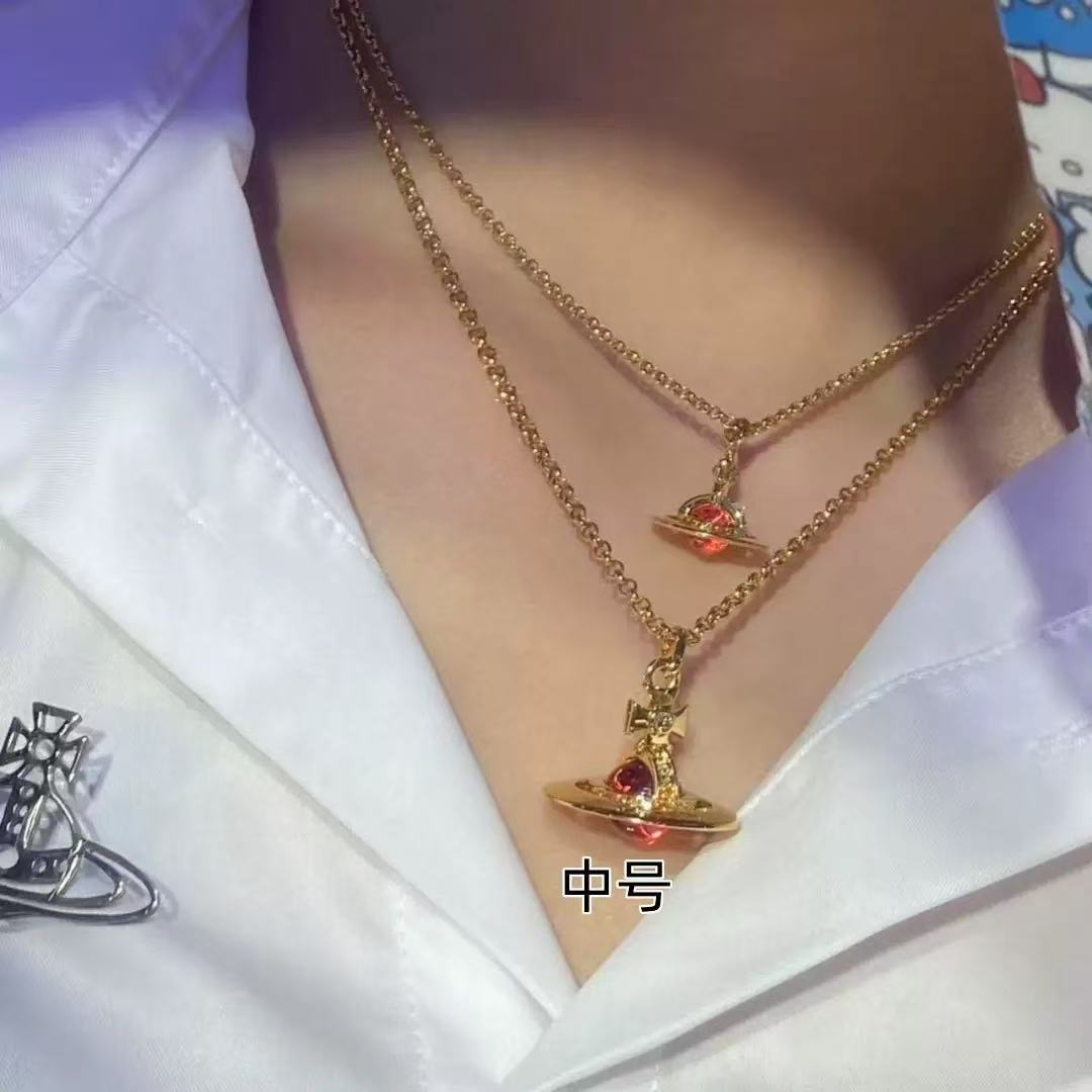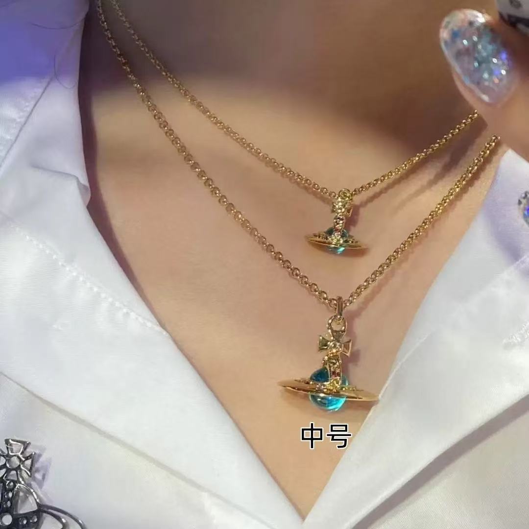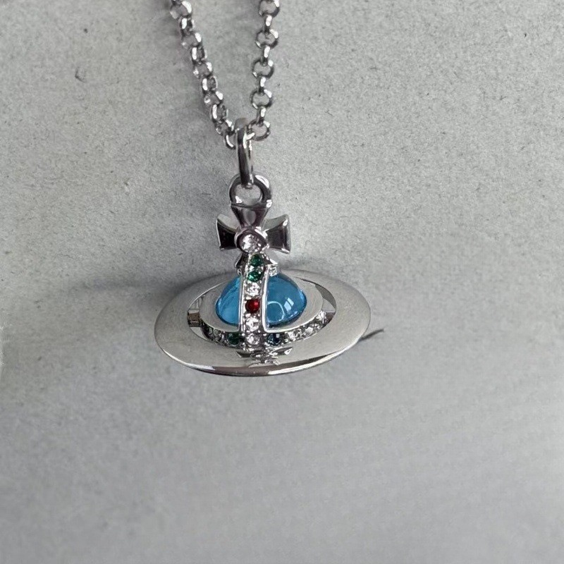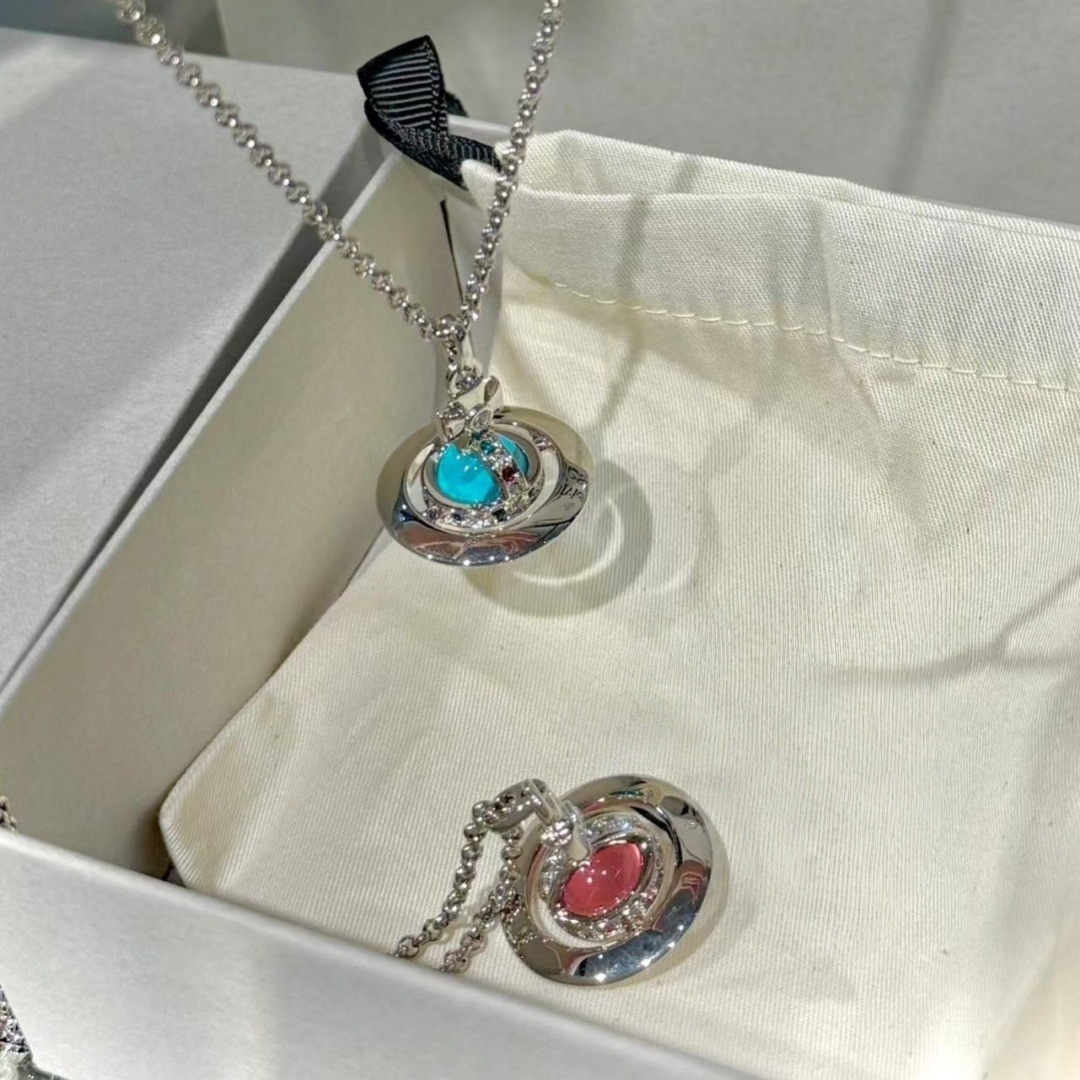[New Style] Empress of the West Crushed Ice Blue Watermelon Red Orb Necklace Women's Small Medium Planet Pendant Saturn Clavicle Chain