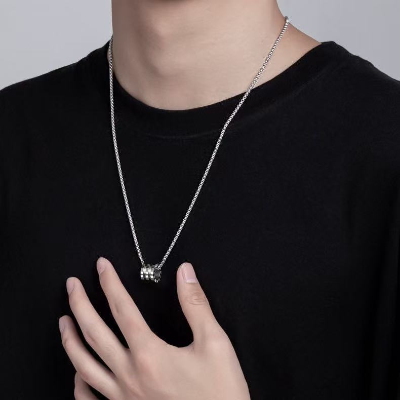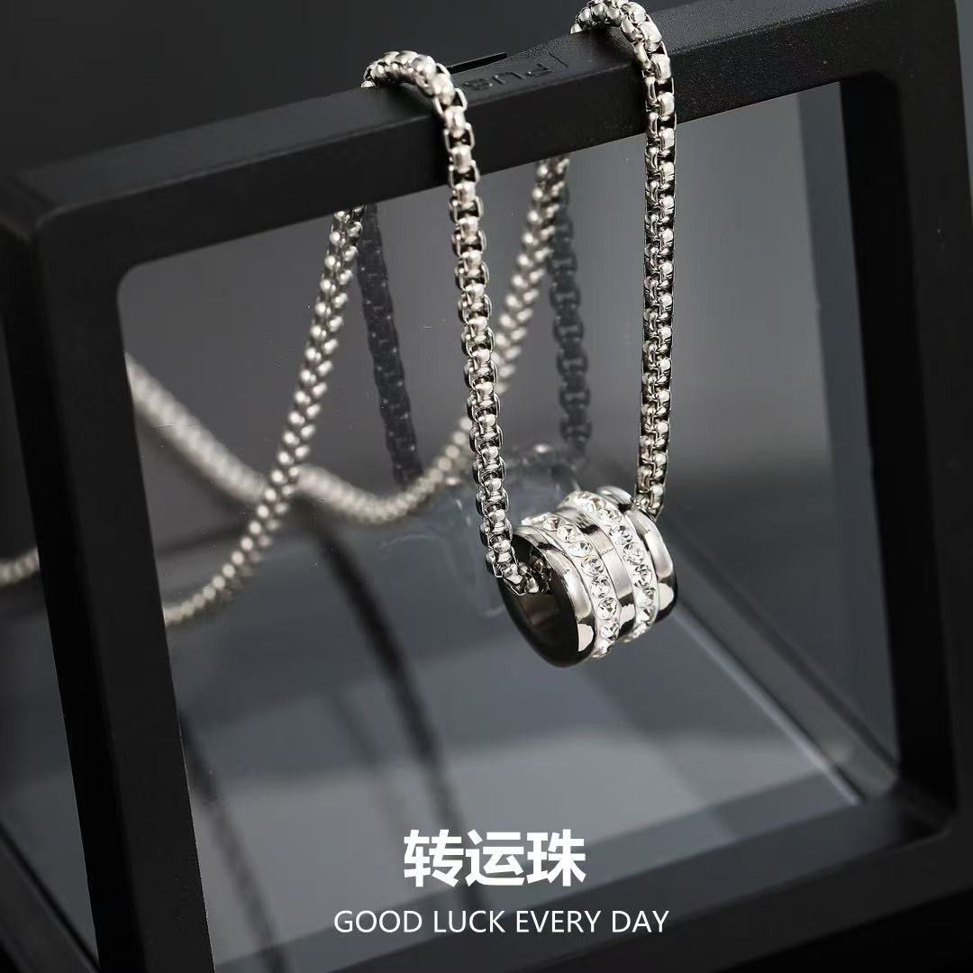Titanium Steel Pendant Small Waist Transfer Bead Necklace Men's Fashion All-match Diamond Elegant Light Luxury Niche Design Trendy Decoration