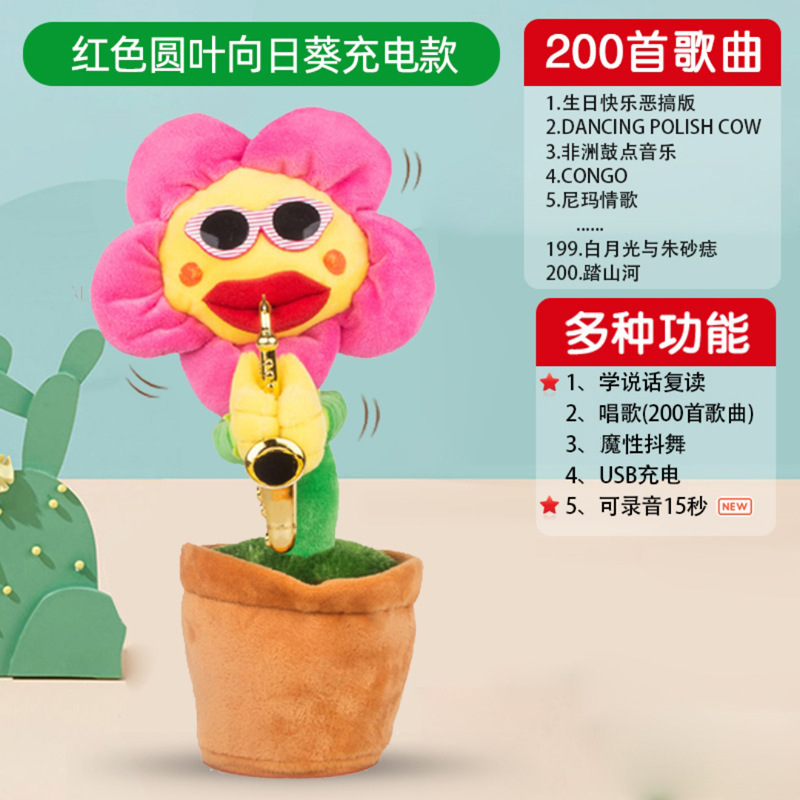 Color: Straw hat little yellow duck with sunglasses necklace recording learning to speak glowing dancing
