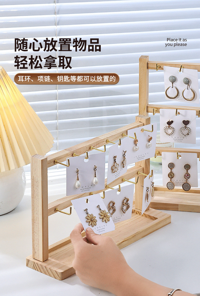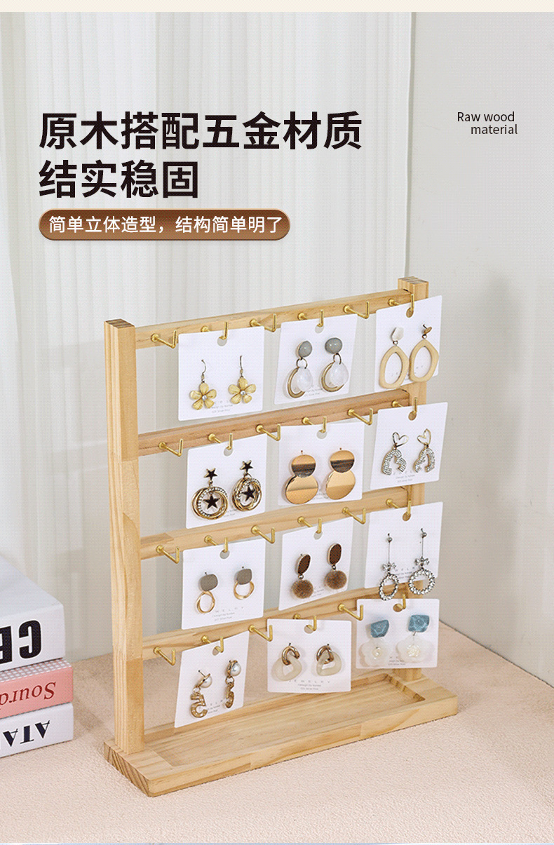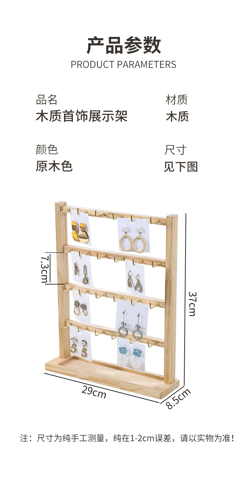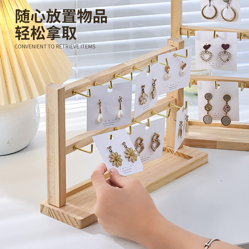 原木带钩耳环展示架2024新款简约手链戒指项链饰品收纳展示架