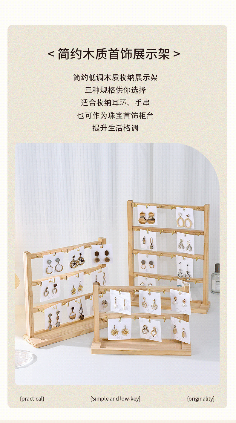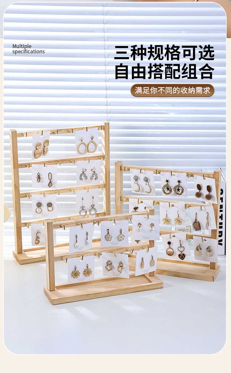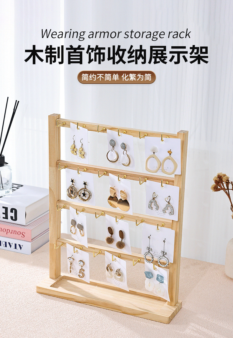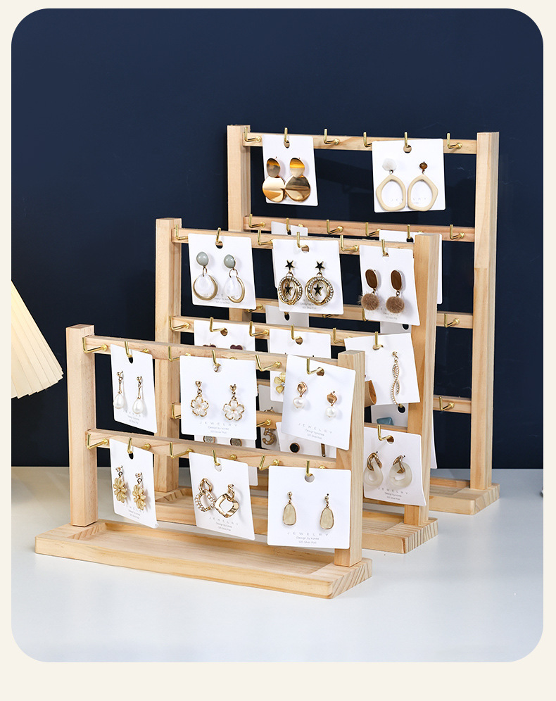 原木带钩耳环展示架2024新款简约手链戒指项链饰品收纳展示架