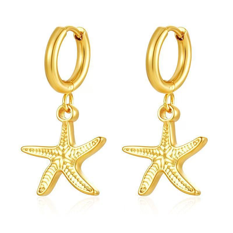 Stainless Steel Hammer Earrings with Pendant Earrings All-match Plated 18K Color-free Women's Simple Earrings Wholesale Free Shipping