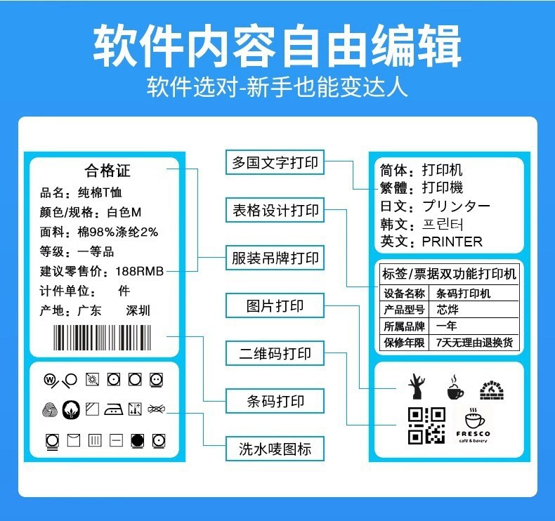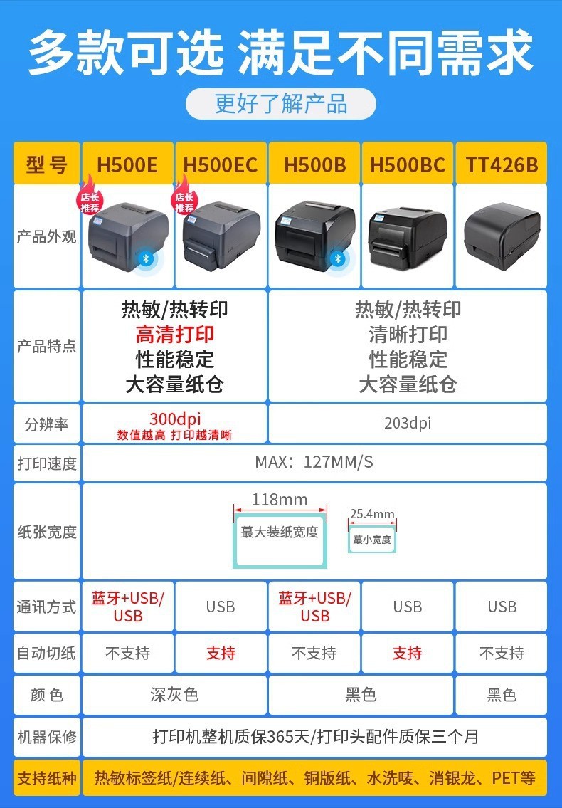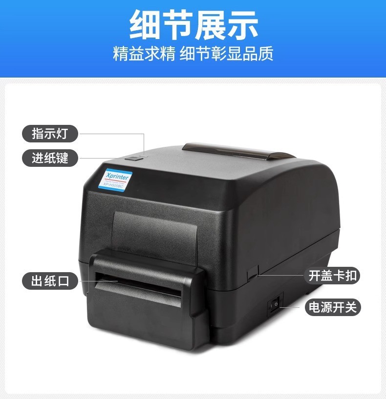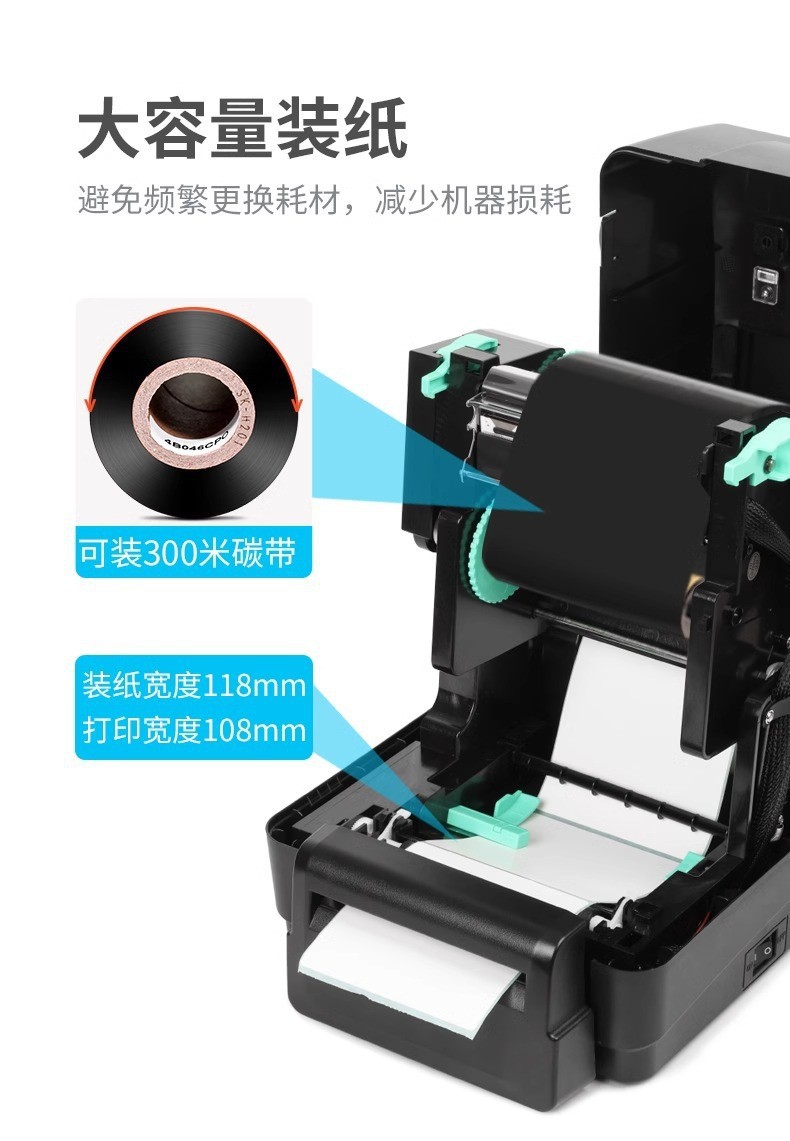 H500B Label Receipt Thermal Printer for Jewelry, Clothing, Milk Tea, Catering, Warehouse Thermal Transfer Printing Commercial Use